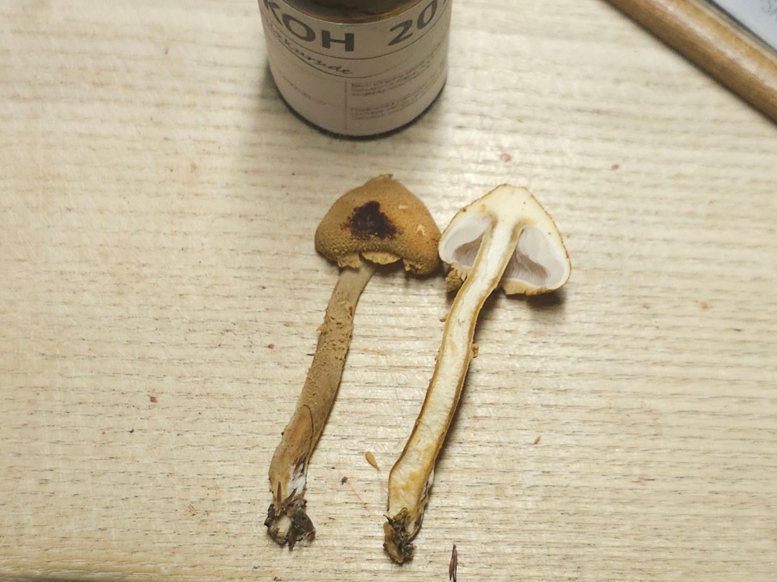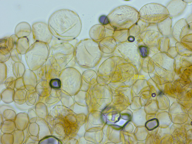 Bei Cystoderma ist die KOH-Reaktion wichtig, hier fast schwarz.