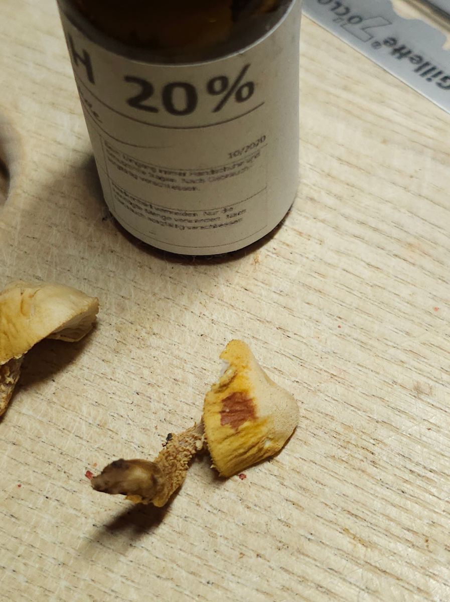Die Reaktion ist rot, völlig anders als beim ersten Cystoderma.