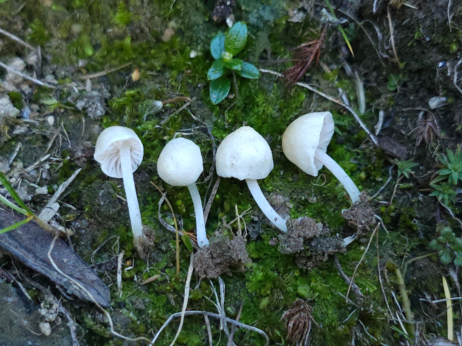 Dieses weisse Pilzchen hielt ich zuerst für eine Hemimycena. Aber es ist ein Rötling, nämlich Entoloma rugosum.