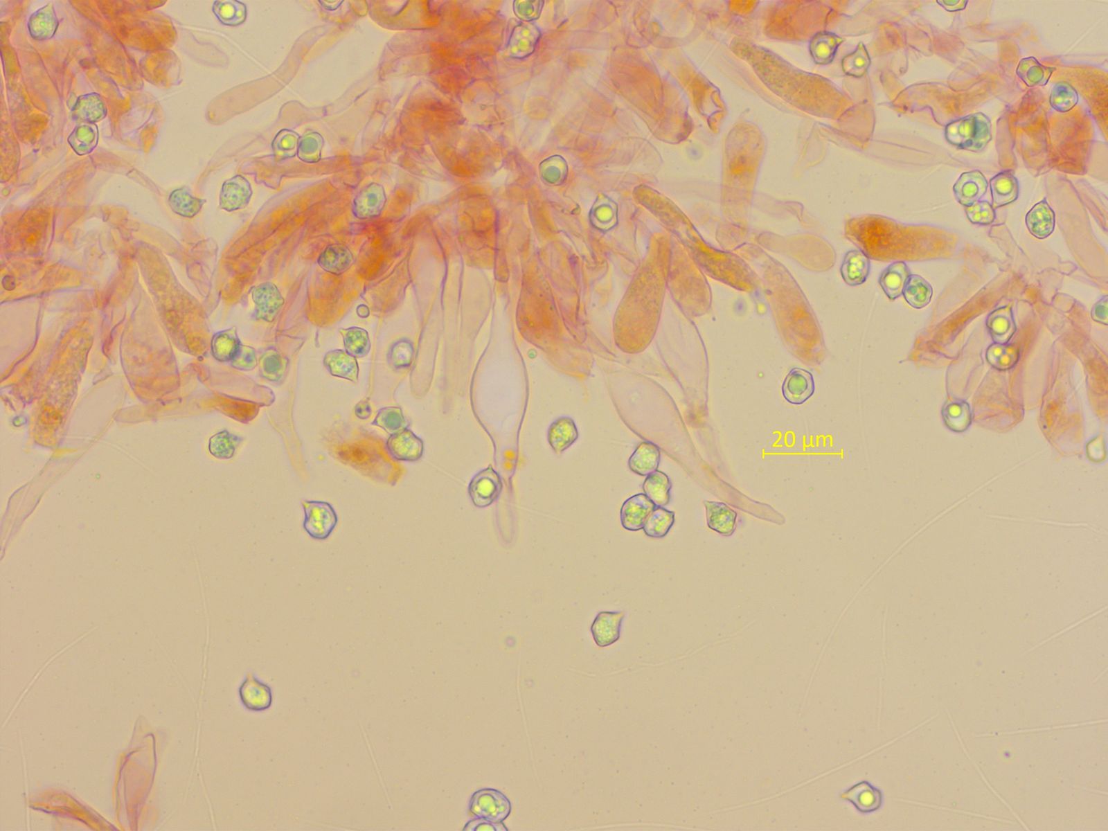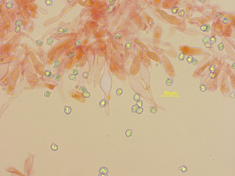 Zystiden typisch für die Gattung, mit relativ kurzem Hals.
