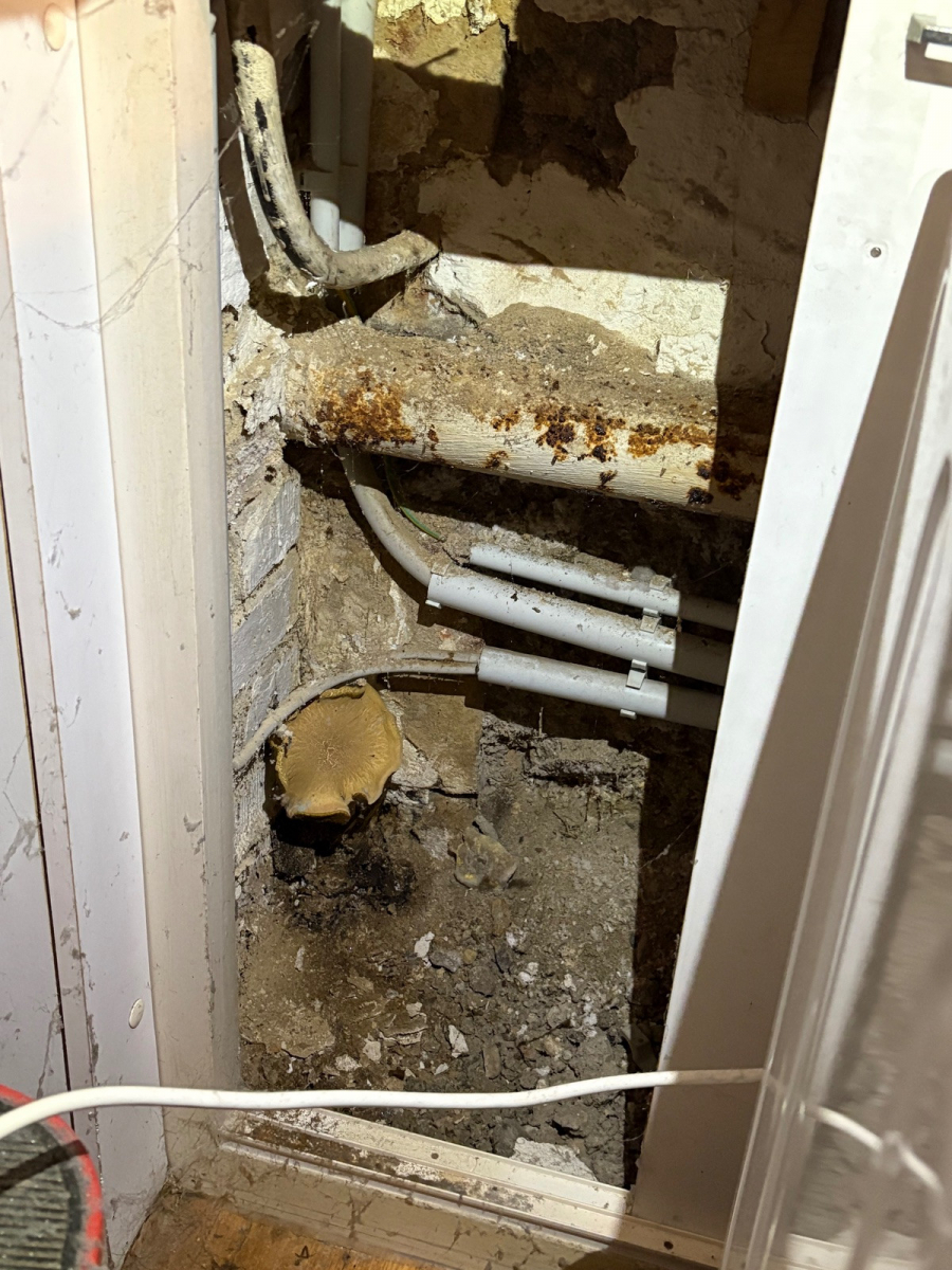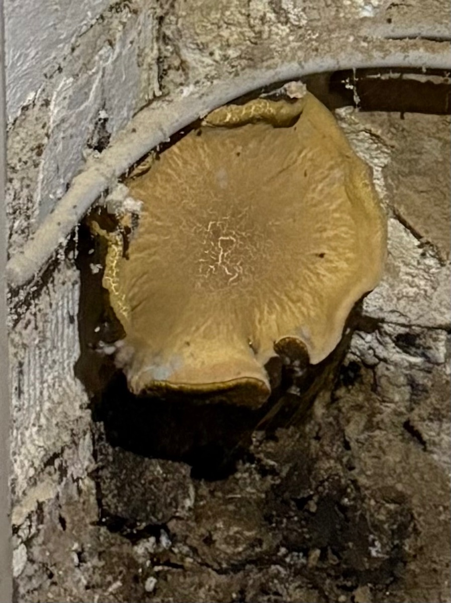 wir haben uns ein Haus angeschaut, das wir gerne kaufen möchten. Nun haben wir im Keller Richtung Außenwand versteckt einen echten, großen Pilz gefunden. Jetzt haben wir natürlich Sorge, dass es ein holzzersetzender Pilz ist. Der Keller ist feucht, vor allem um ein altes Abflussrohr herum, das ist uns bewusst. Wir haben nur Sorge, dass das Haus von unten bis oben von dem Pilz zersetzt ist (Hausschwamm). Die Pilzbestimmungsapp liefert uns leider wenig Ergebnisse. Leider habe ich auch nur ein Foto aufgenommen. Aber vielleicht ist ja jemand super versiert und kann ihn dennoch bestimmen. Neben dem großen Pilz lagen noch kleinere (abgestorbene?) Pilzleichen, die schwarz überzogen sind (sieht man auf dem Foto rechts daneben liegen, auf der anderen Seite waren noch mehr).