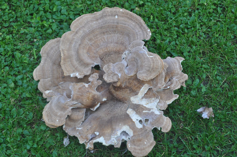 Habe da zwei Arten im Sinn, zum einen den Klapperschwamm - Grifola frondosa bzw. den Eichhasen - Polyporus umbellatus, aber welcher genau, ich bin mir nicht schlüssig, hab beide noch nie vor Augen gehabt, kenne die nur von Bildern. Habe die großen schönen Büschel auch nicht ausbuddeln wollen, hab sie stehen gelassen.