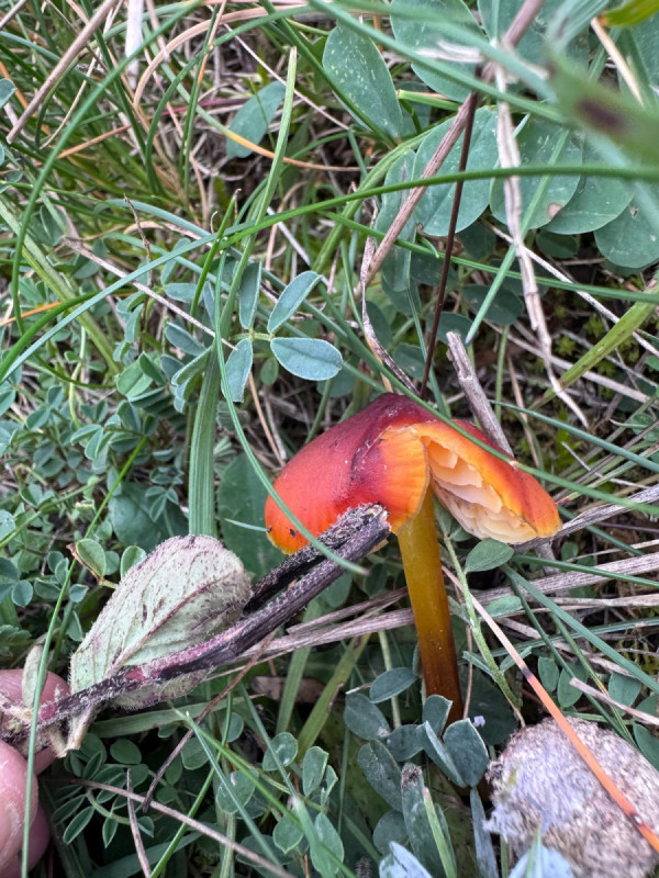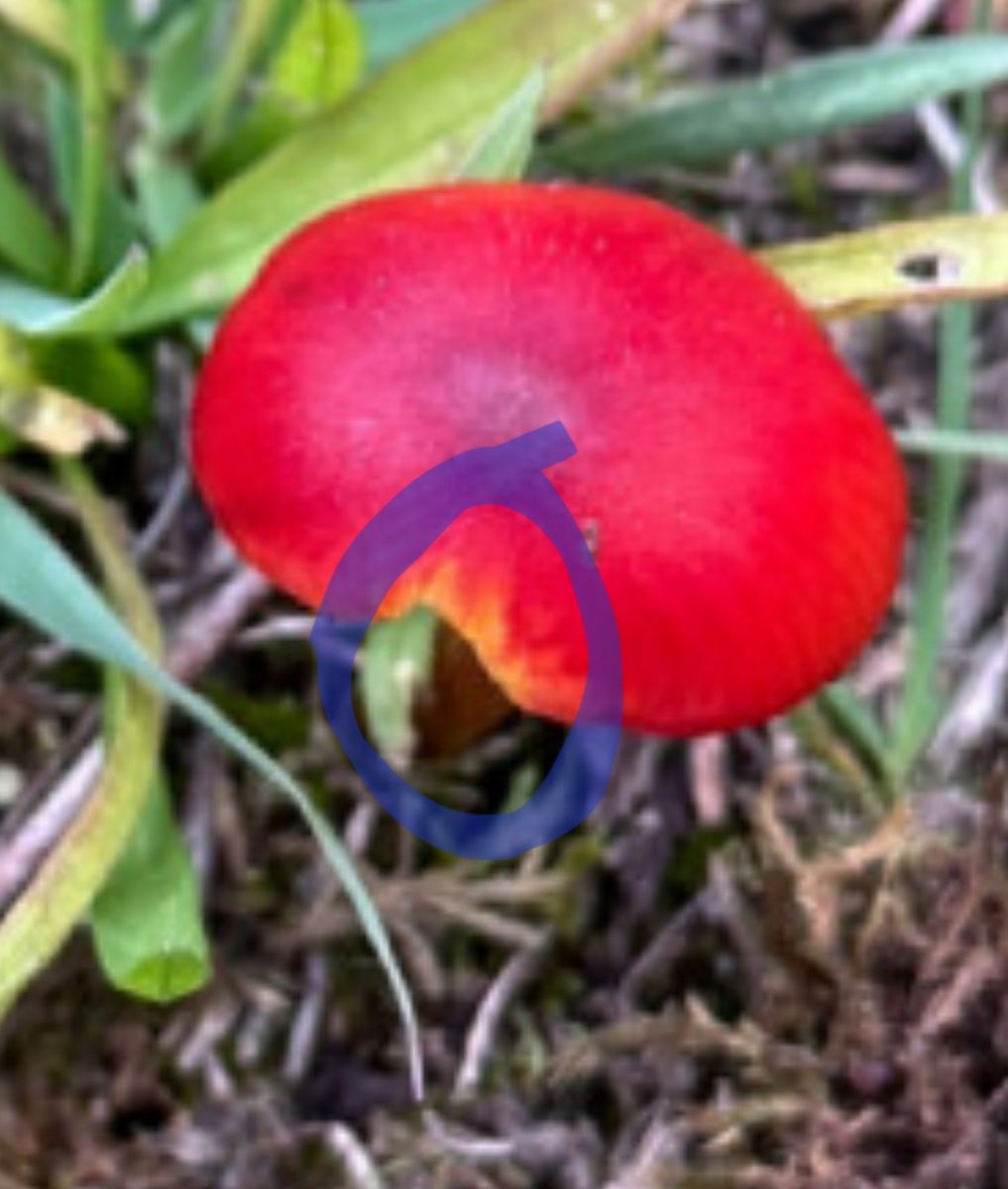 Ja, an den hatte ich auch gedacht. Allerdings ist da auch ein bißchen Gelb am Hut (s. Markierung), und man sieht leider den Stiel nur andeutungsweise. Der wäre bei H. conica ja nicht rot.