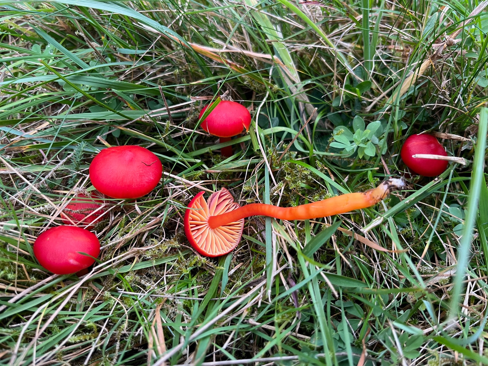 7. Wirklich massenhaft gab es diese roten Wiesenknöpfe. Hygrocybe coccinea - Kirschrote Saftlinge.