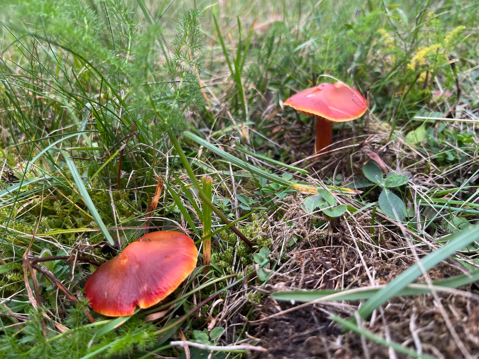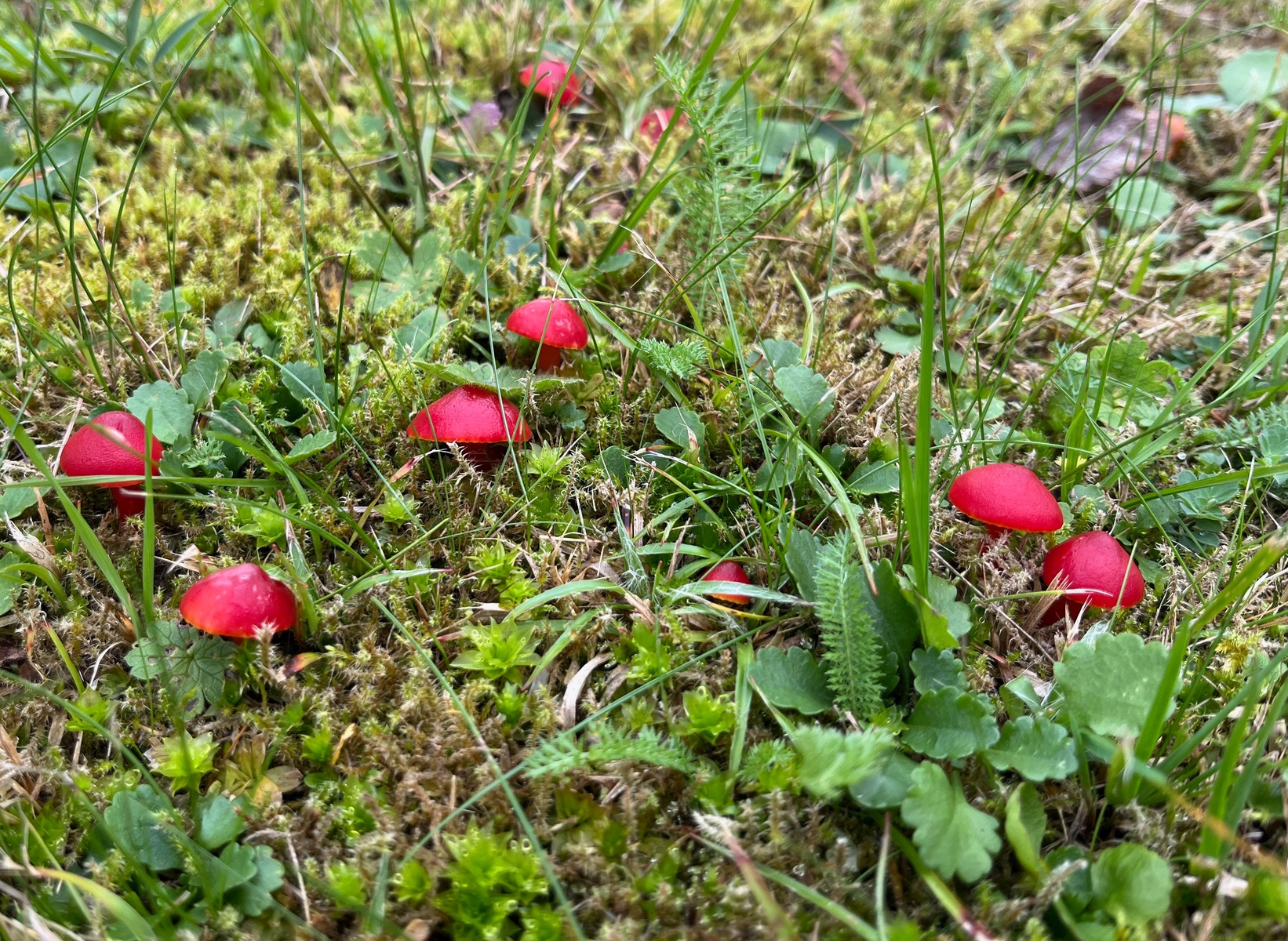 7. Wirklich massenhaft gab es diese roten Wiesenknöpfe. Hygrocybe coccinea - Kirschrote Saftlinge.