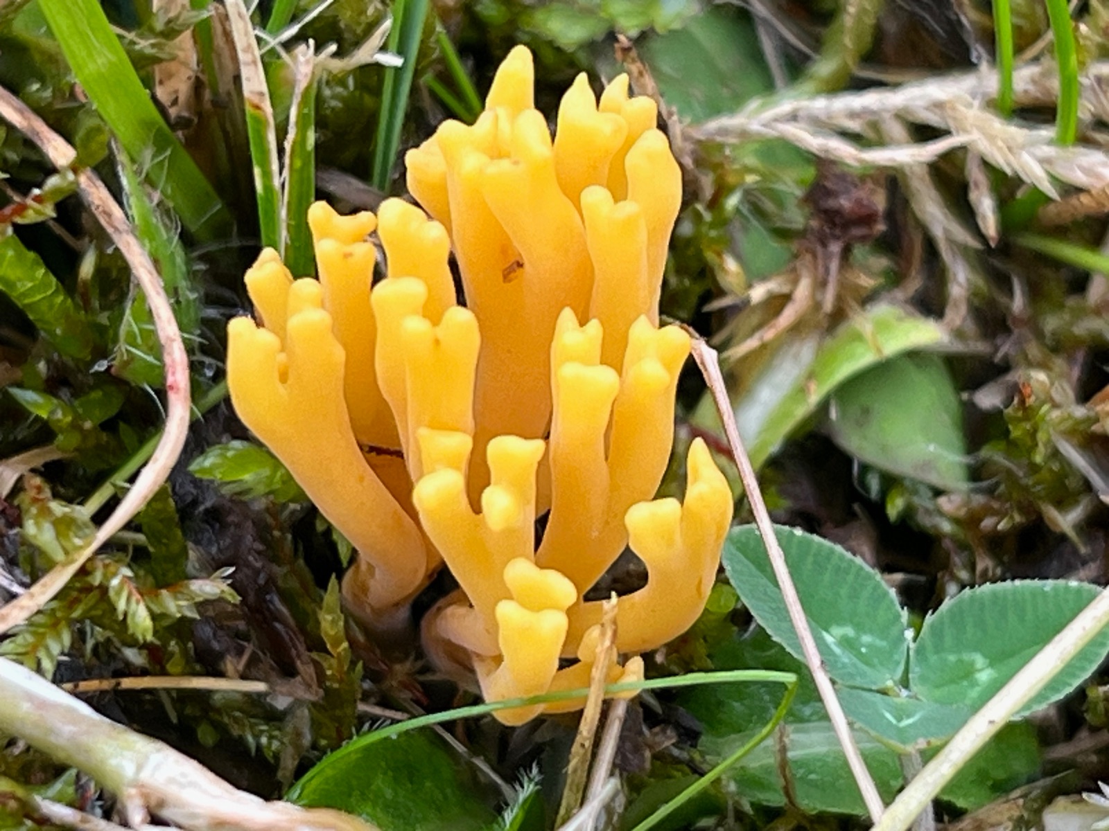 22. Abschließend ein Winzlingsexemplar von Clavulinoppsis corniculata, der Geweihförmigen Wiesenkoralle, nur 3 cm groß.