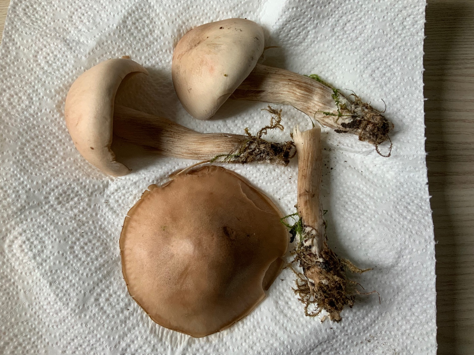 Hut trocken (3-5 cm), leicht schuppig = Feinschuppiger Ritterling? Kann der so hell-beige am Anfang sein?