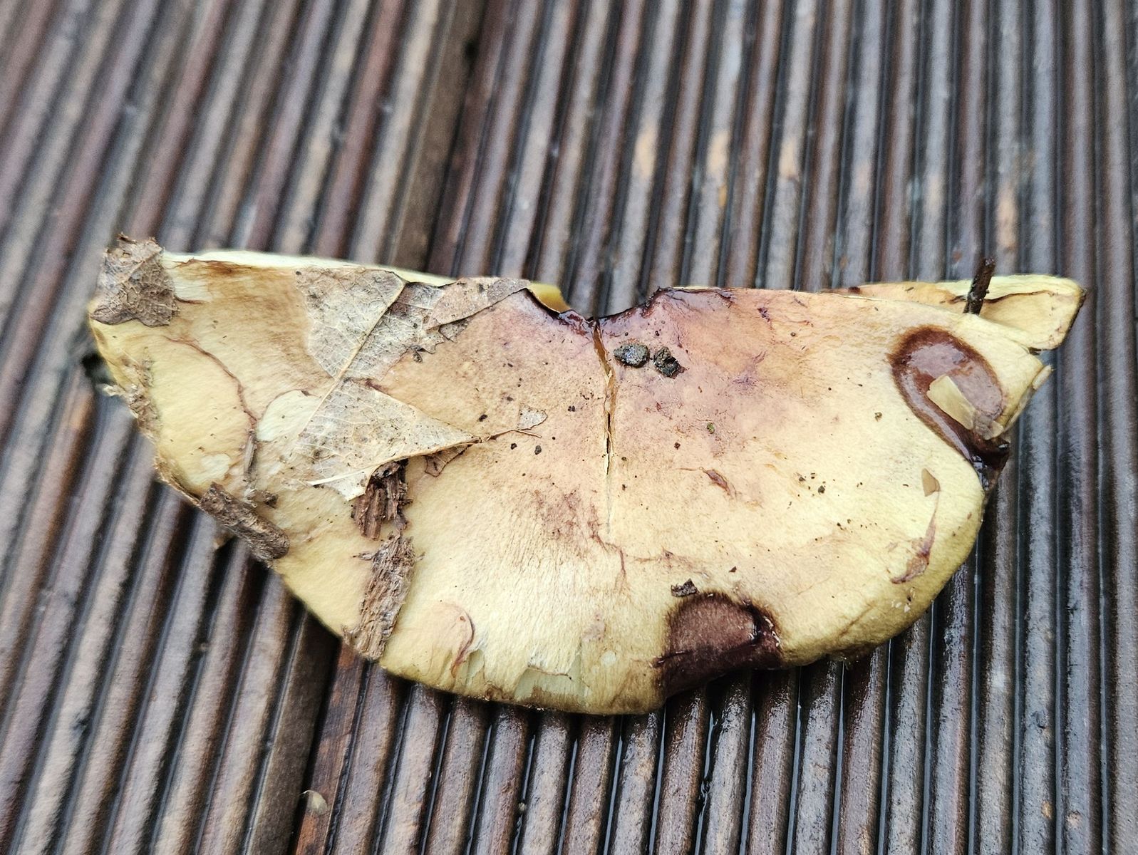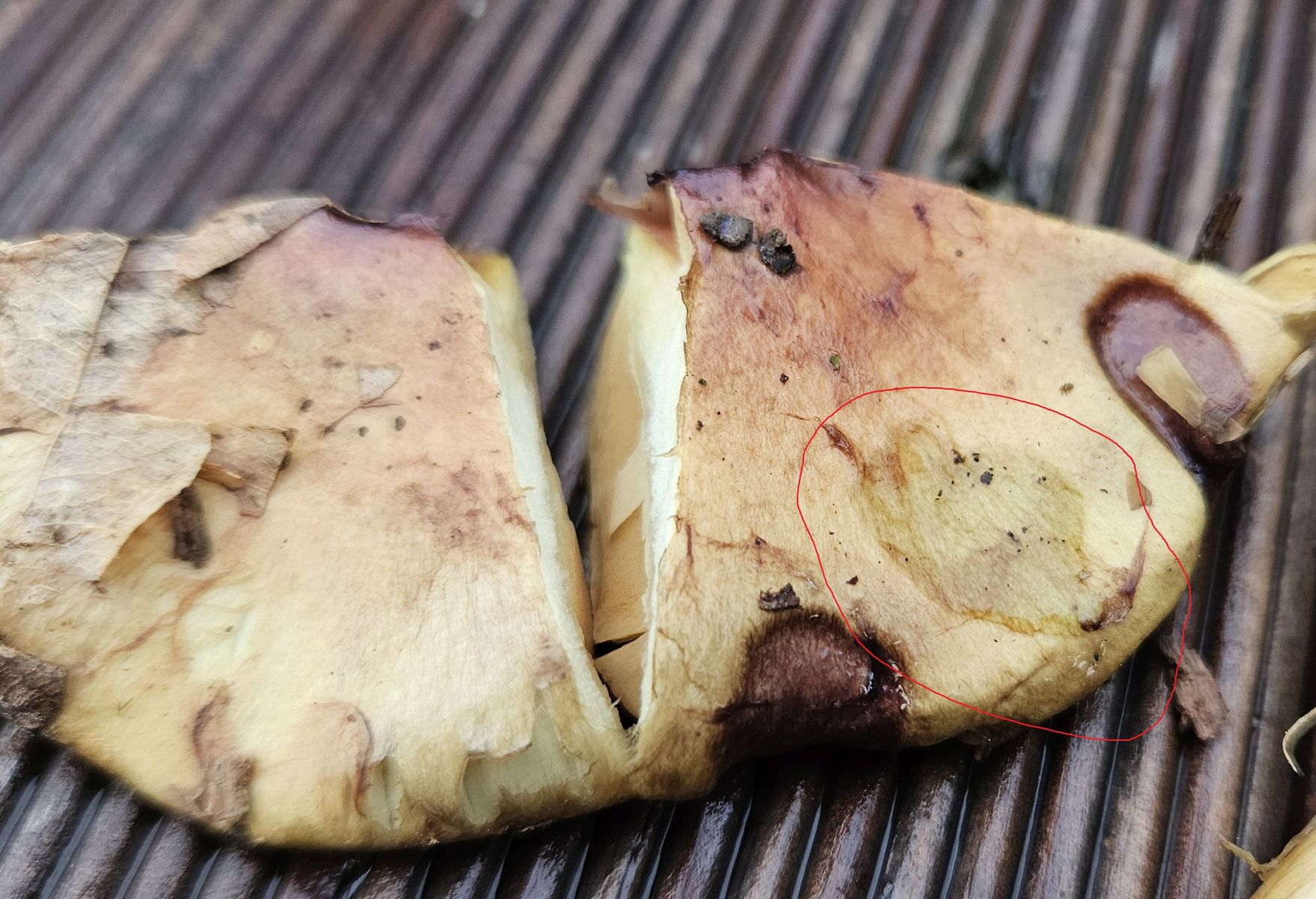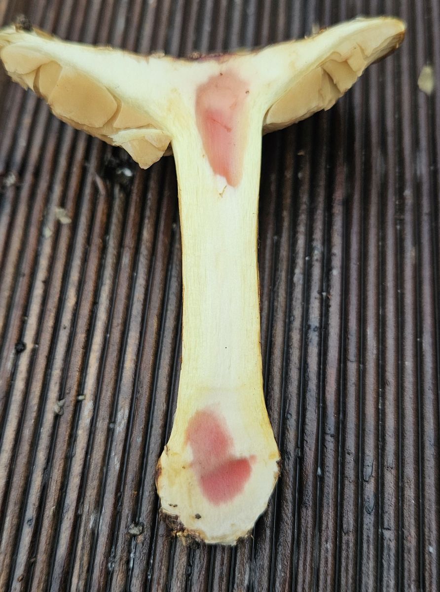 Auffällig die KOH-Reaktion: Auf Hut schwach grünlich, auf Basismycel ebenso. Im Fleisch sofort rosa und nach wenigen Minuten intensiv weinrot.