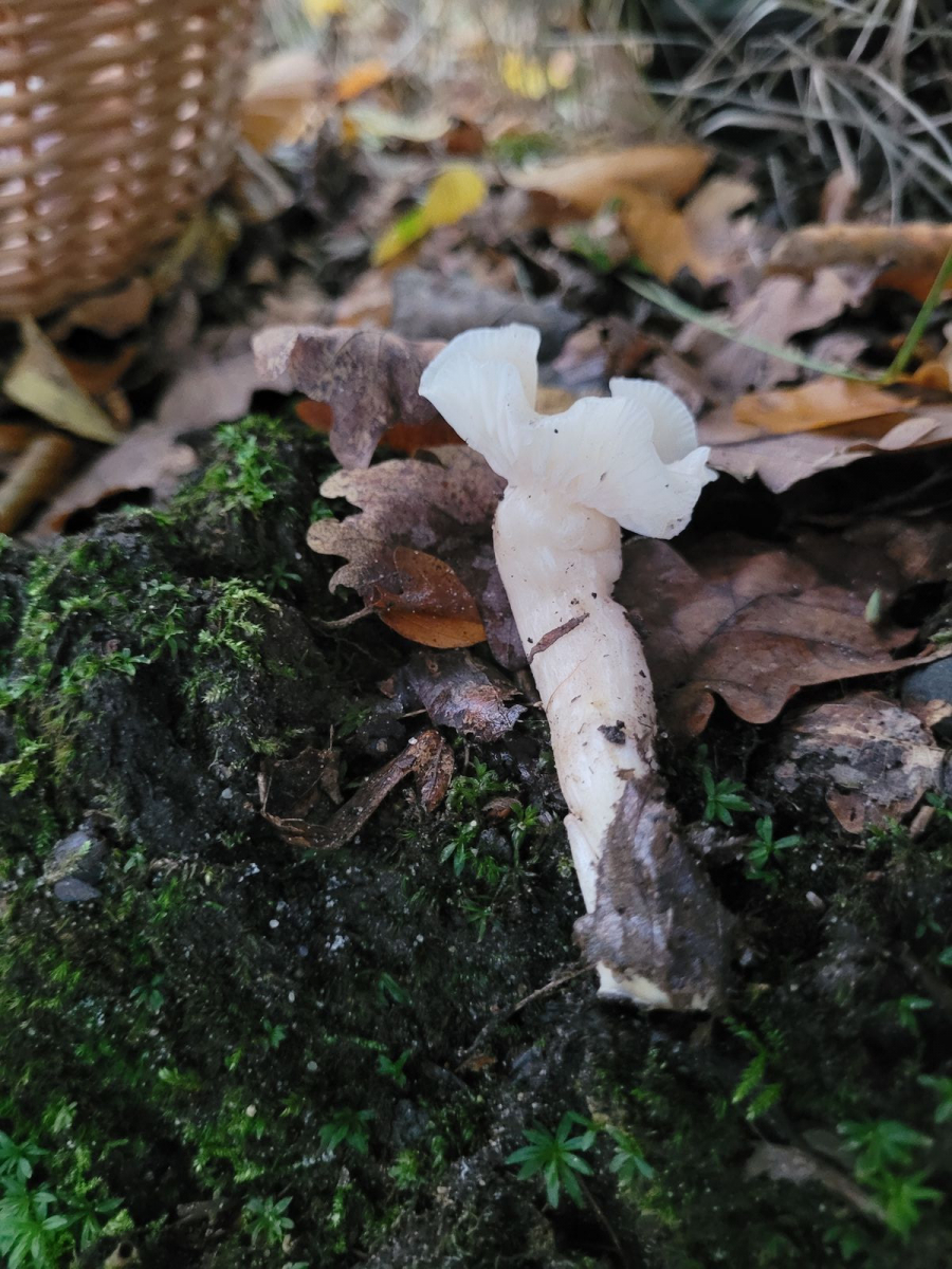 ich war heute (erfolgreich) auf der Suche nach Rötelritterlingen und habe dabei auch diesen weißen Pilz gefunden. Bisher konnte ich ihn nicht eindeutig zuordnen, weshalb ich euch da um Hilfe fragen möchte.