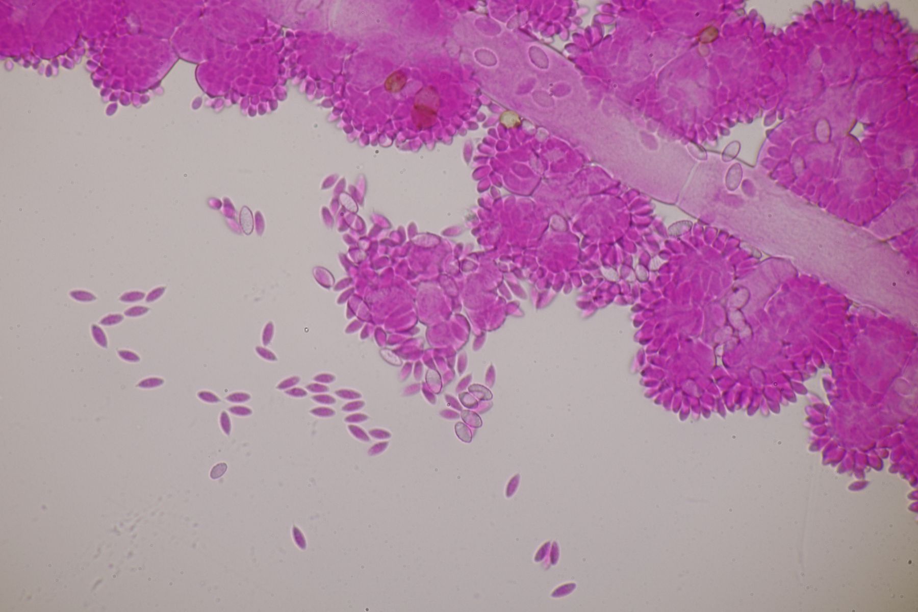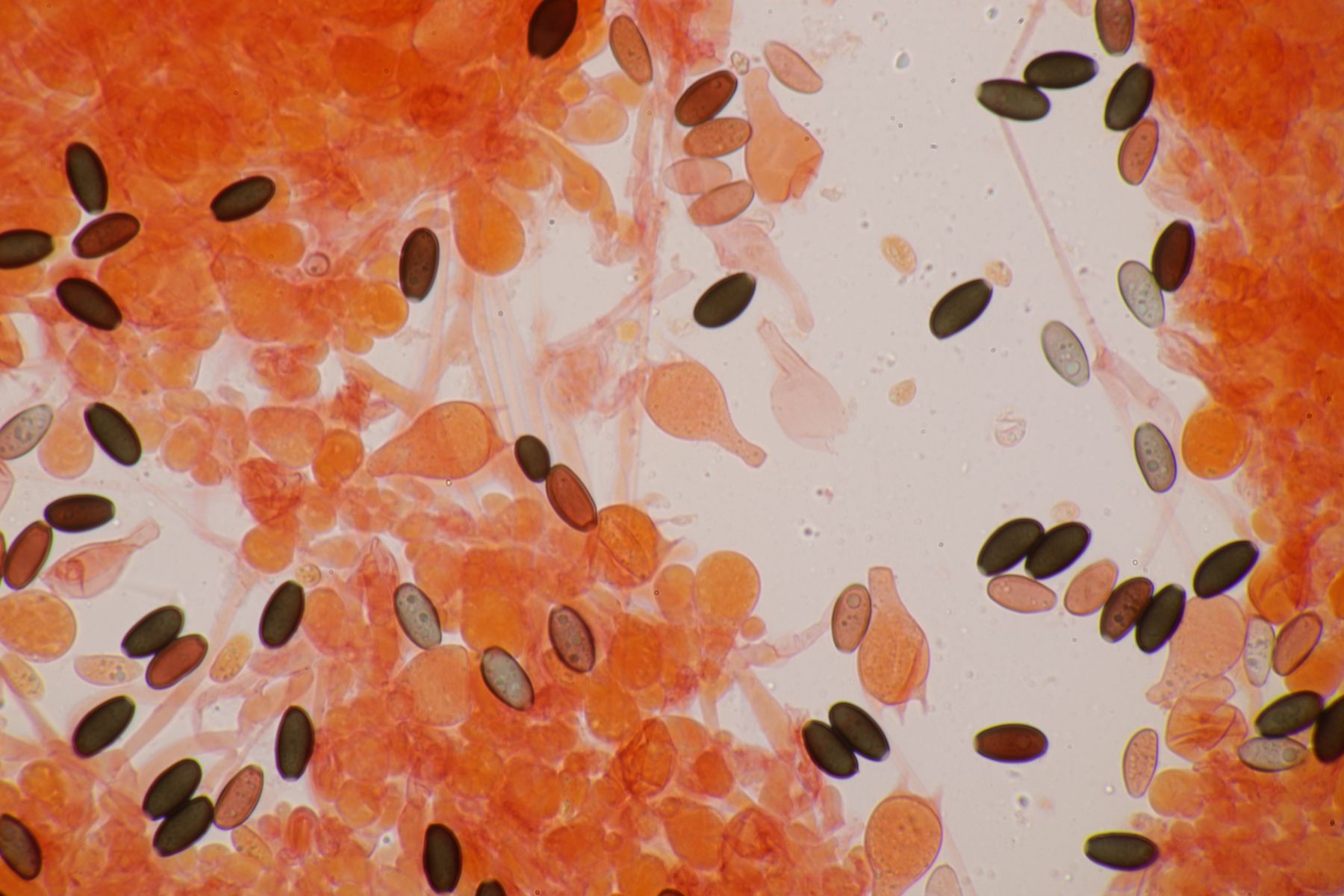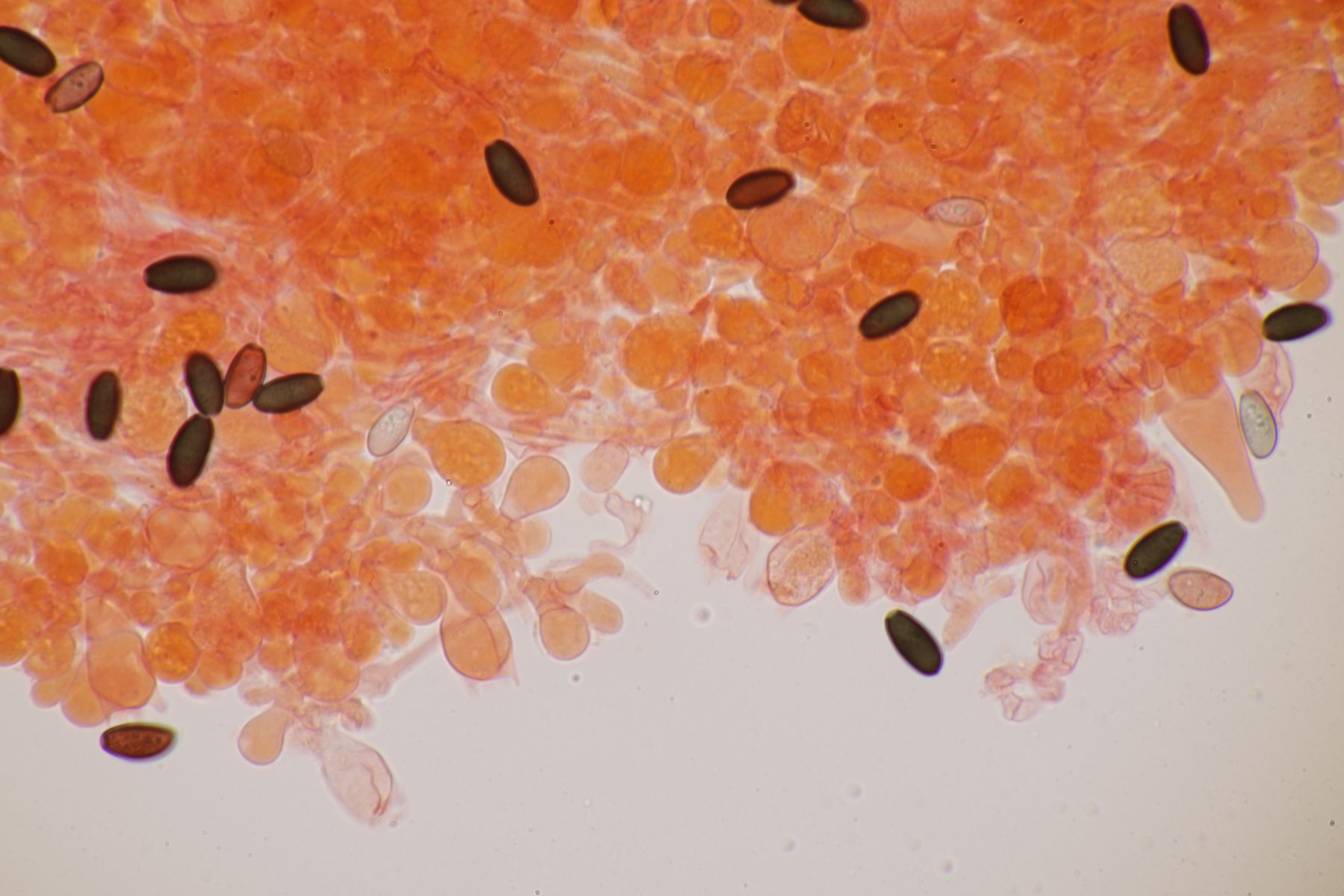Sporen 10±0,6 µm × 7,4±0,4 µm, Q=1,4±0,1; 8,7-10,8 µm × 6,6-7,9 µm, Q=1,2-1,5