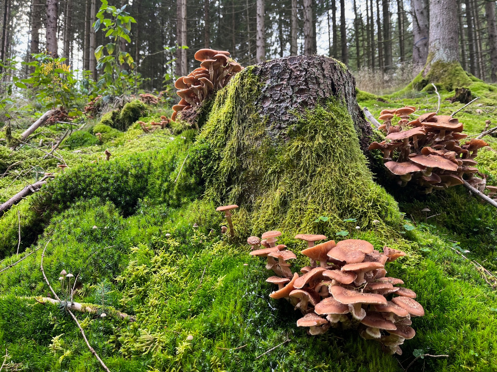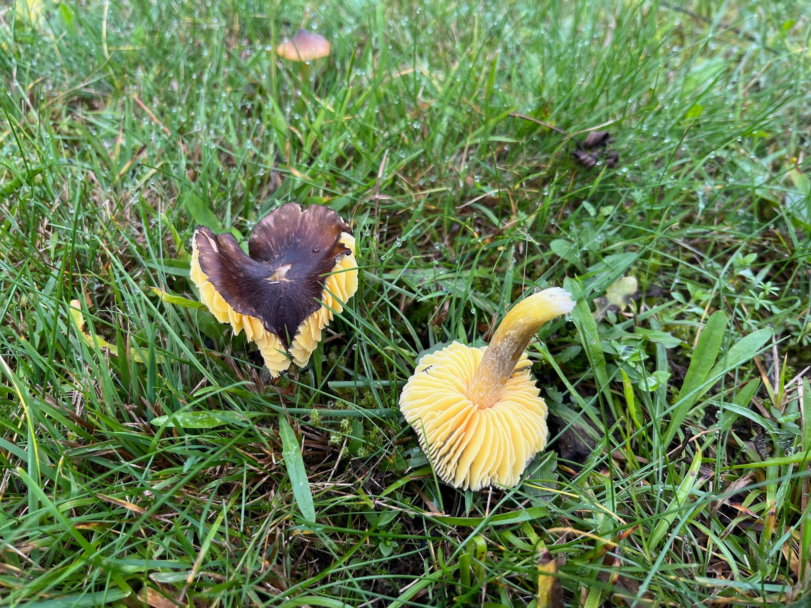 Im vergangenen Jahr hatte ich dort Schwärzende Saftlinge und Jungfernellerlinge gesehen, vor wenigen Wochen Riesenkrempentrichterlinge.