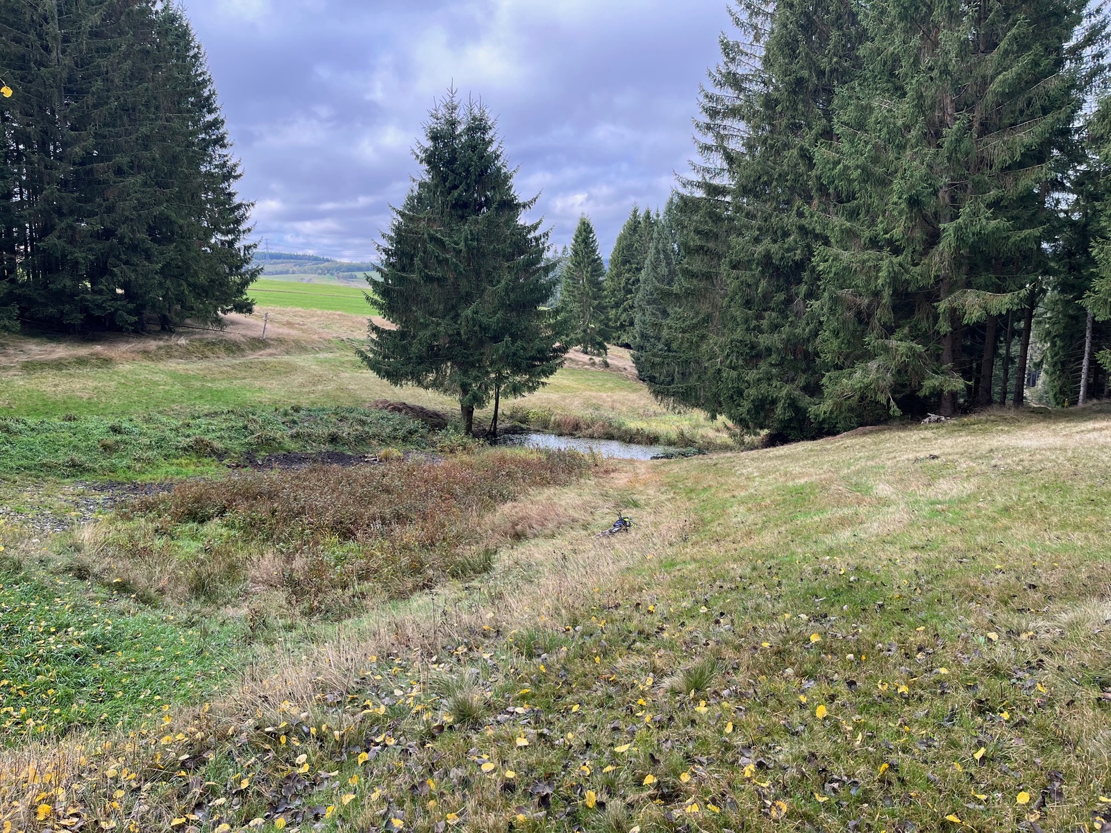 Also rasch den Hund lüften und dann zu den Saftlingsgründen. Das Tier ist alt und kann nur noch kurze Strecken ohne große Anstiege bewältigen. Also sind wir an der Schwarza entlanggelaufen, wie so oft. An einem kleinen ehemaligen Spielplatz, der zwar nicht bespielt, aber regelmäßig gemäht wird, gab es eine kleine Überraschung.