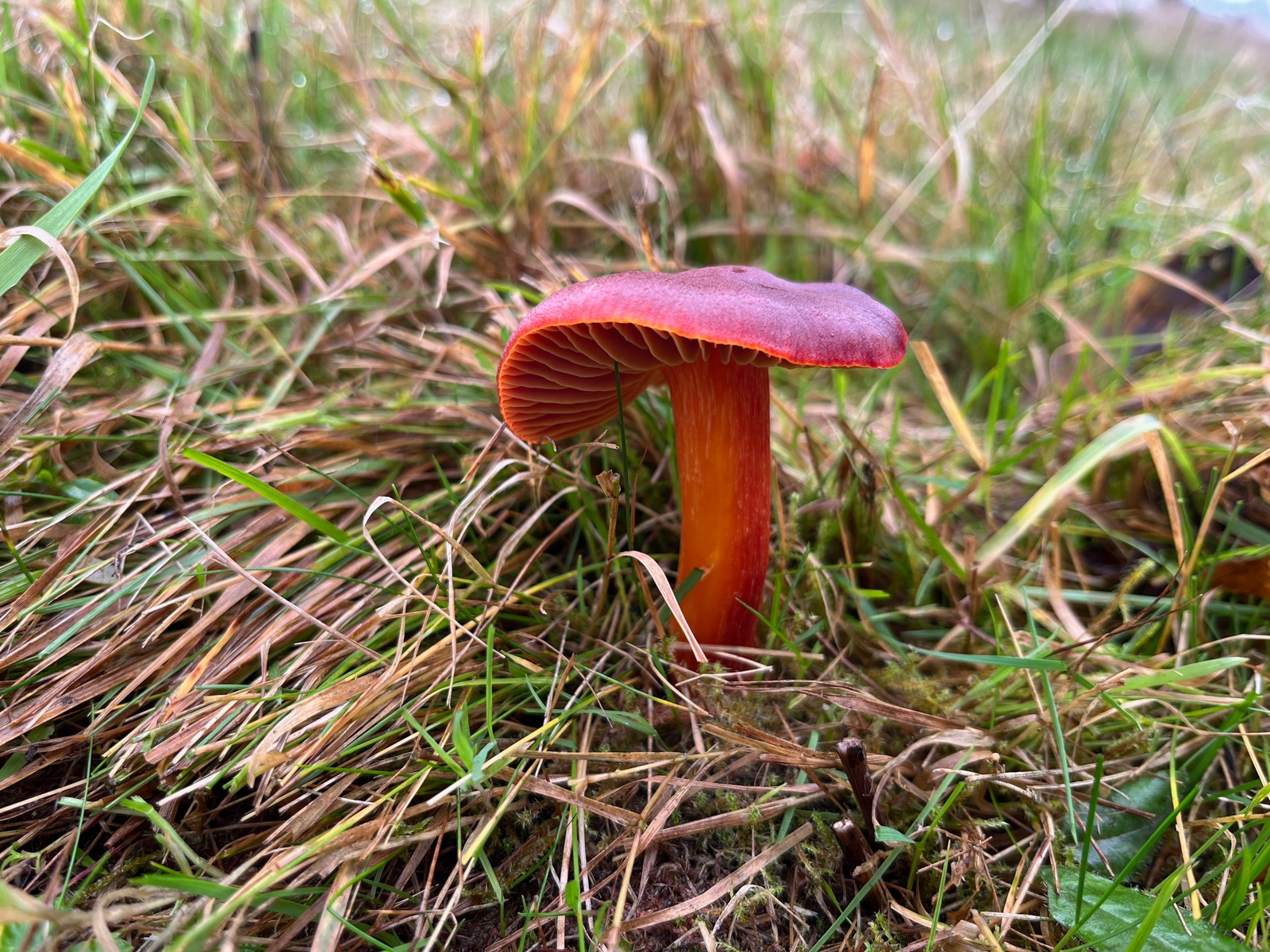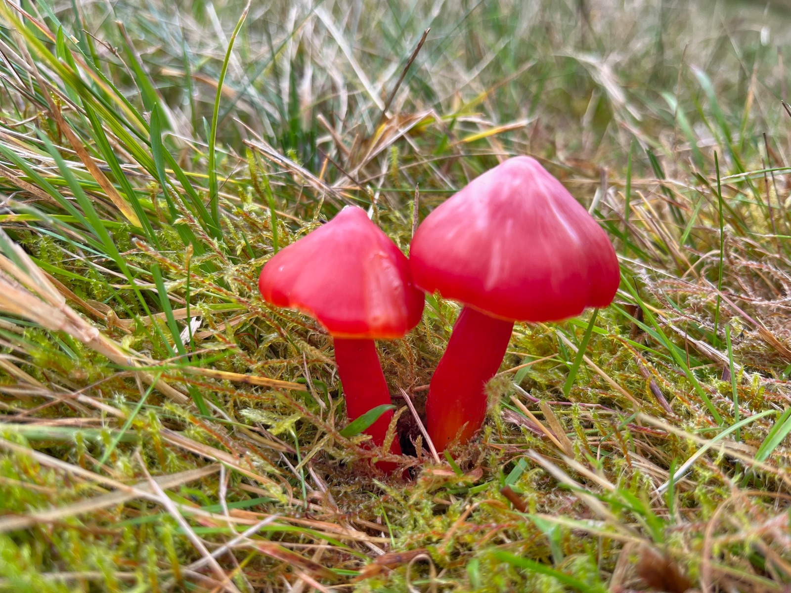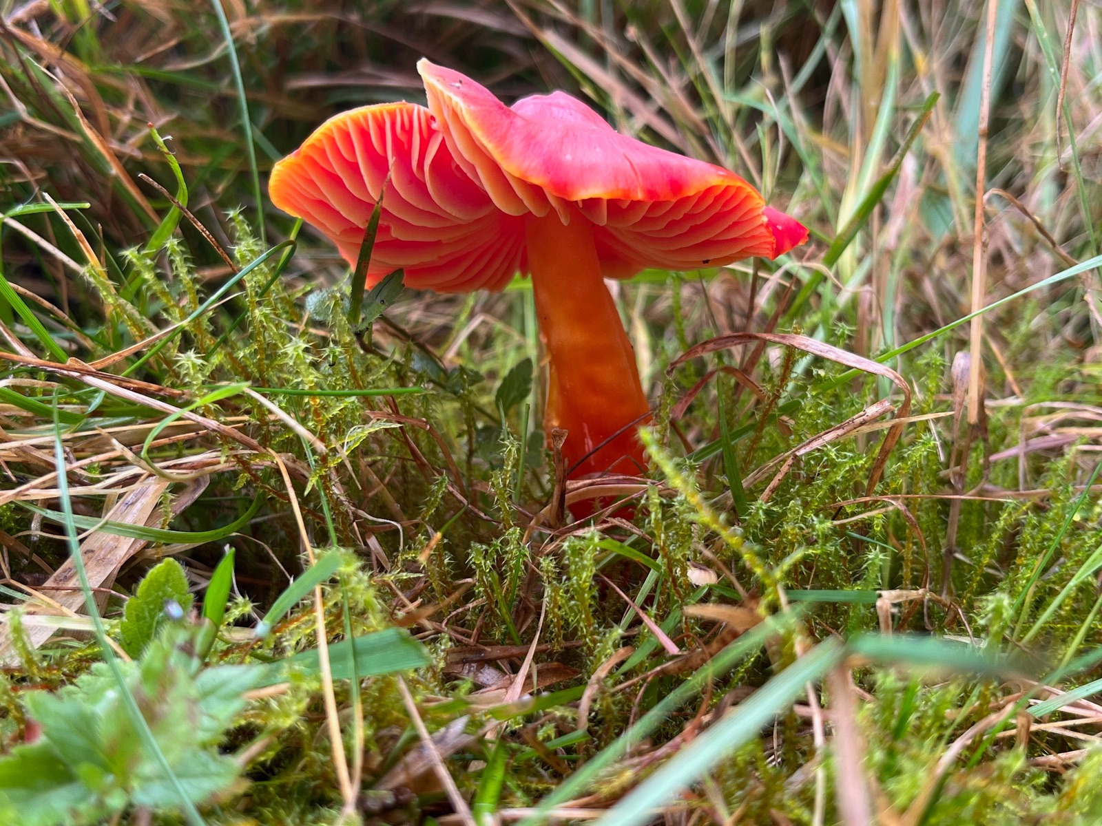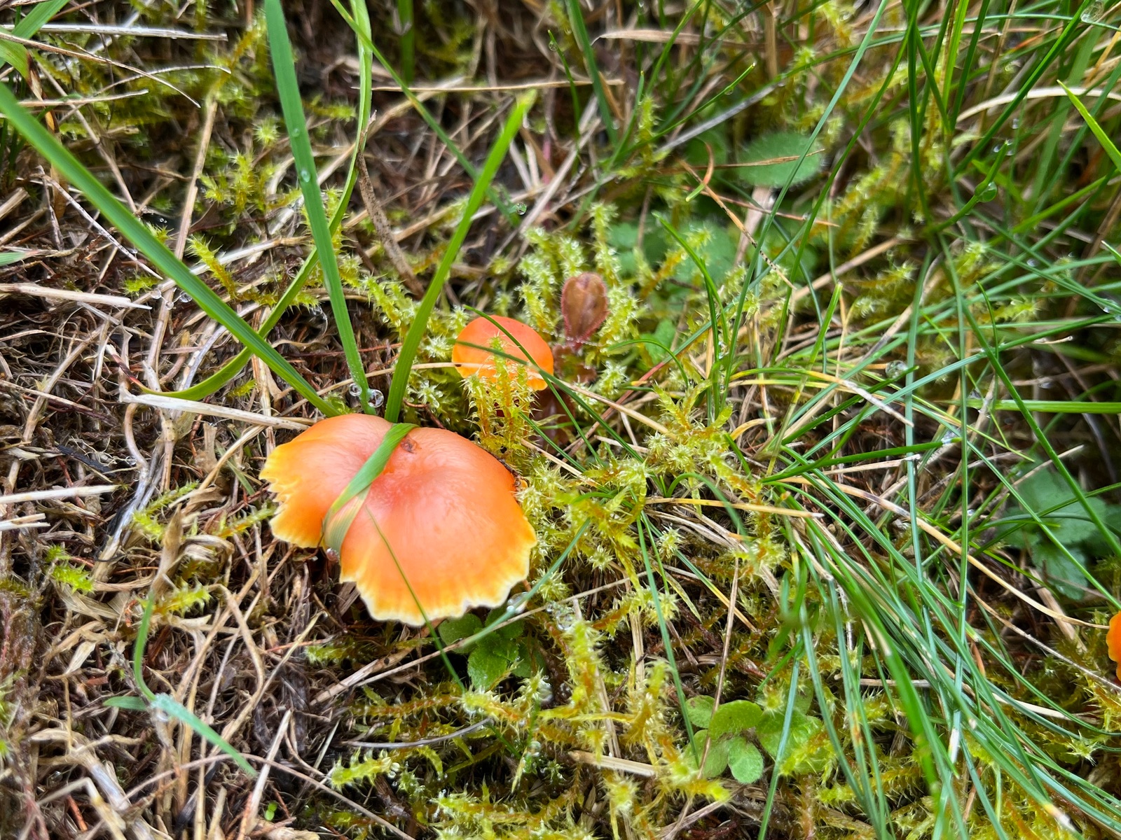 Vom trockenen Honigsaftling - Hygrocybe reidii gab es erfreulich große Bestände.
