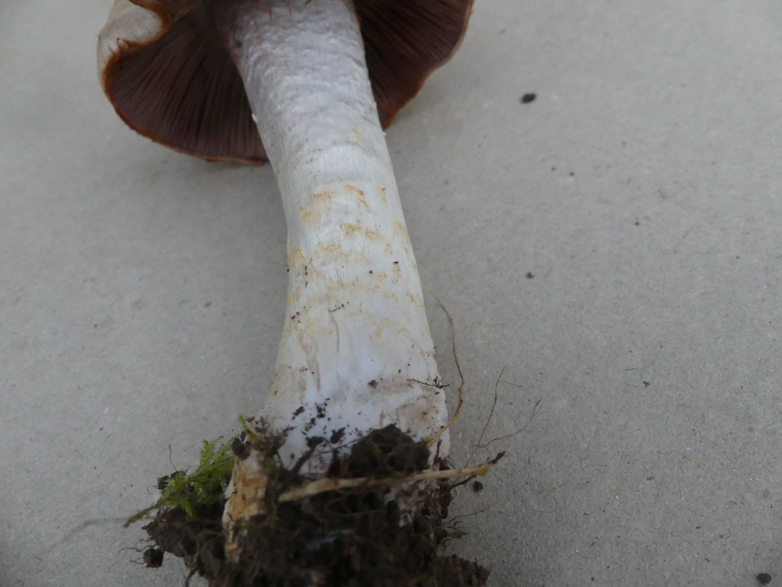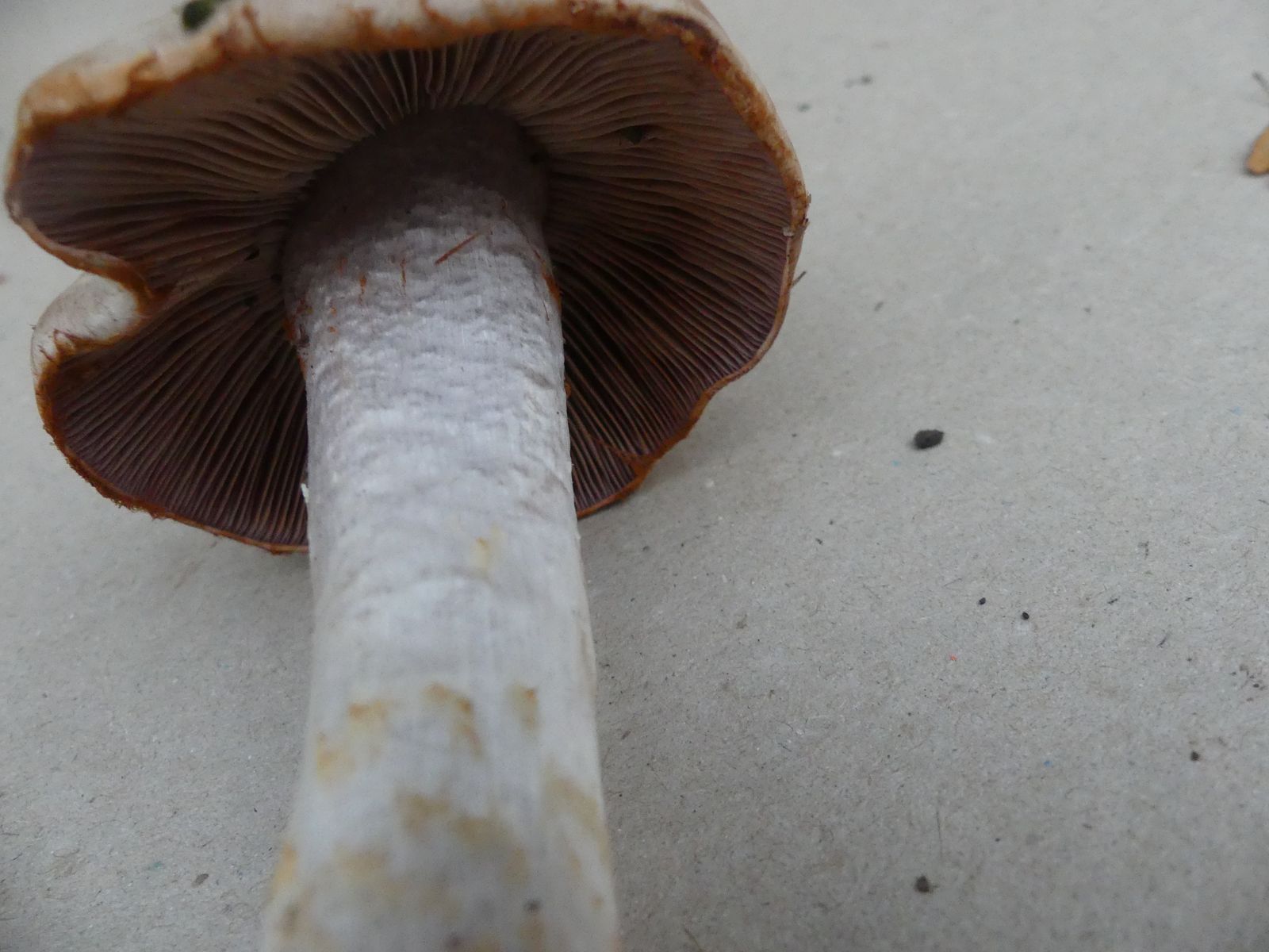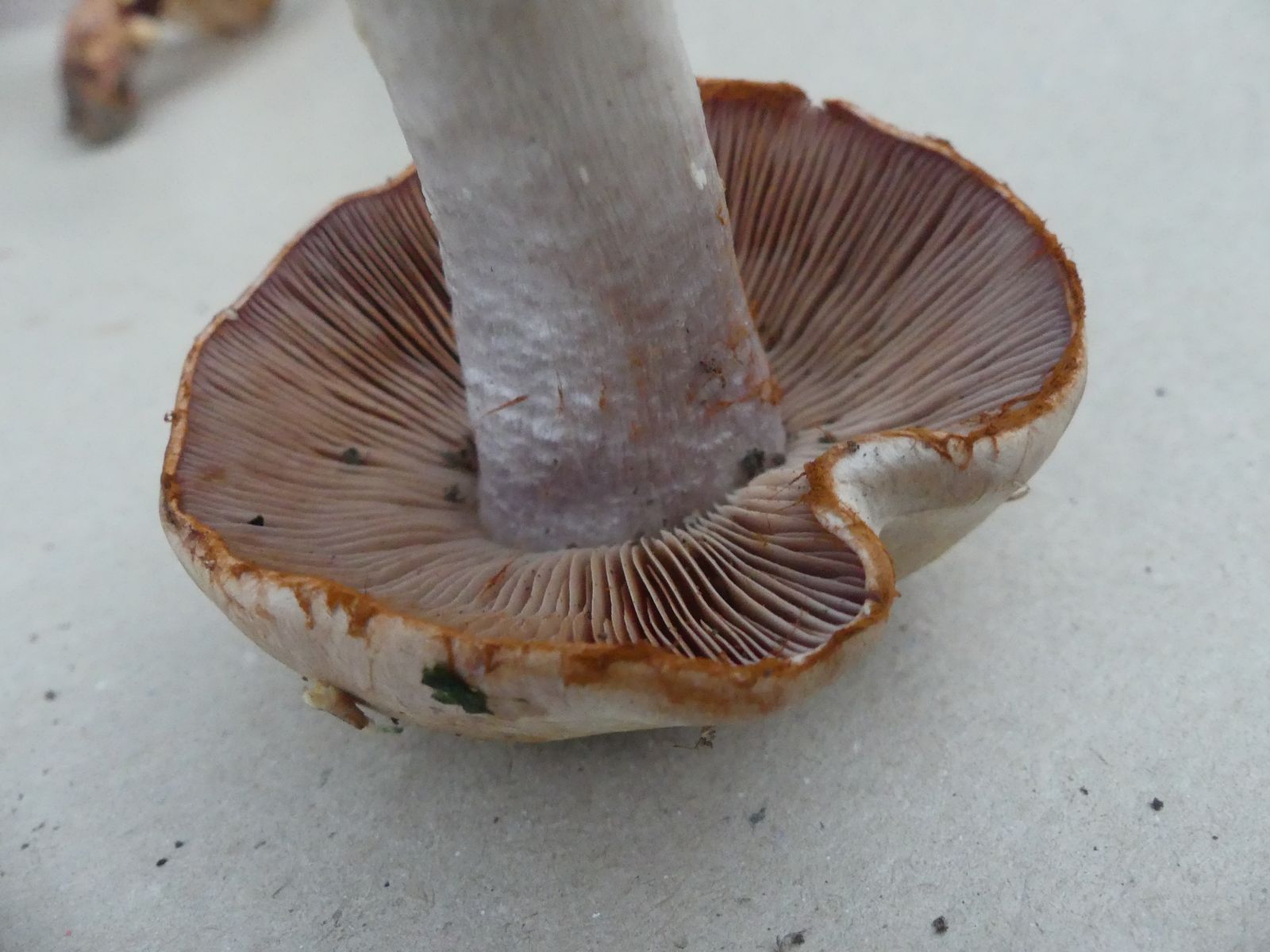 So ein schöner rostroter Cortinarest an der Hutkante. Die Stielspitze ist auch recht markant durch den blauvioletten Hauch und eine gewisse "Unebenheit", die man aber fotografisch kaum festmachen kann. Je nach Lichtverhältnissen wirkt das richtig strukturiert.