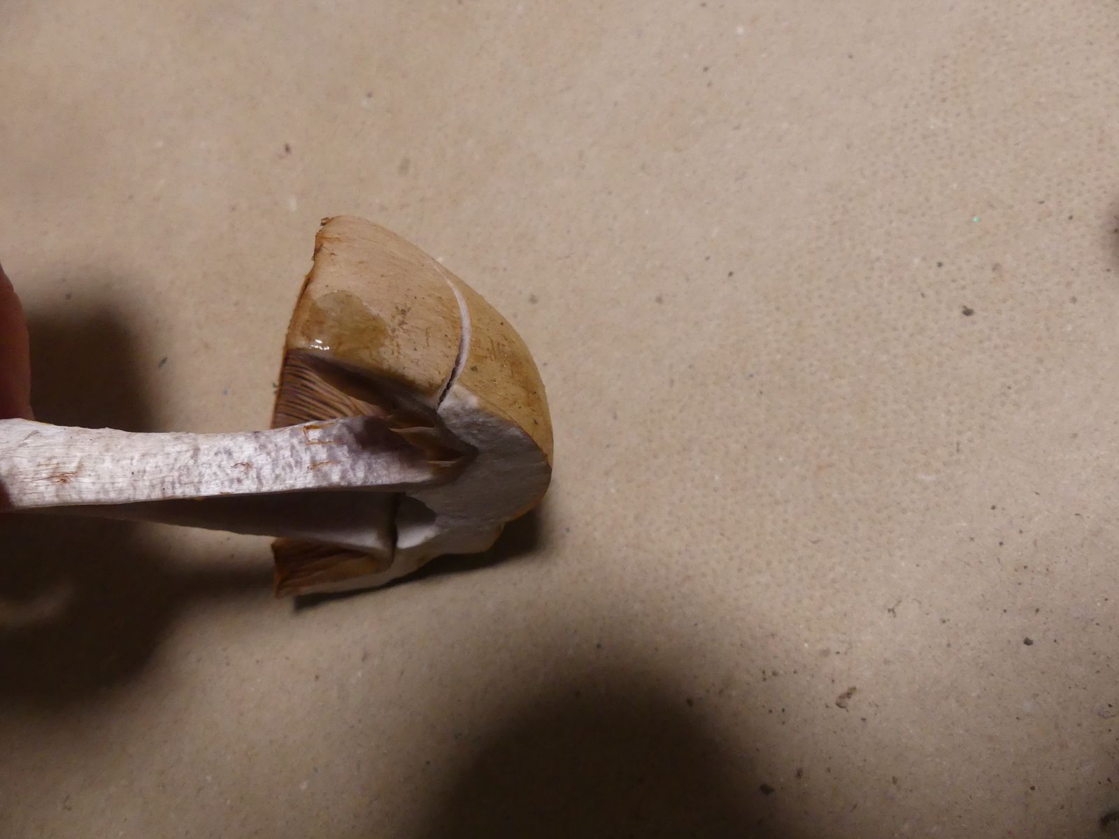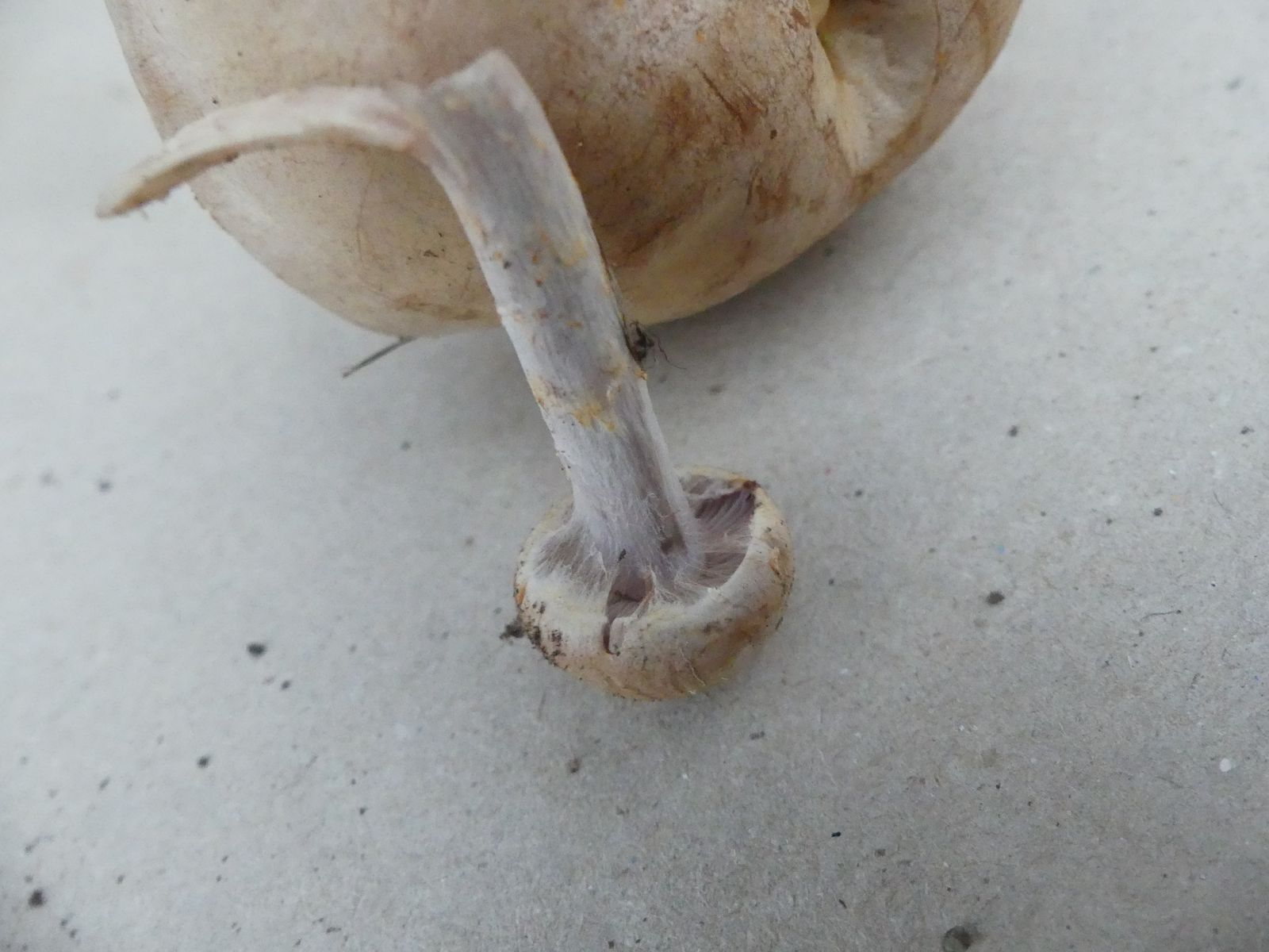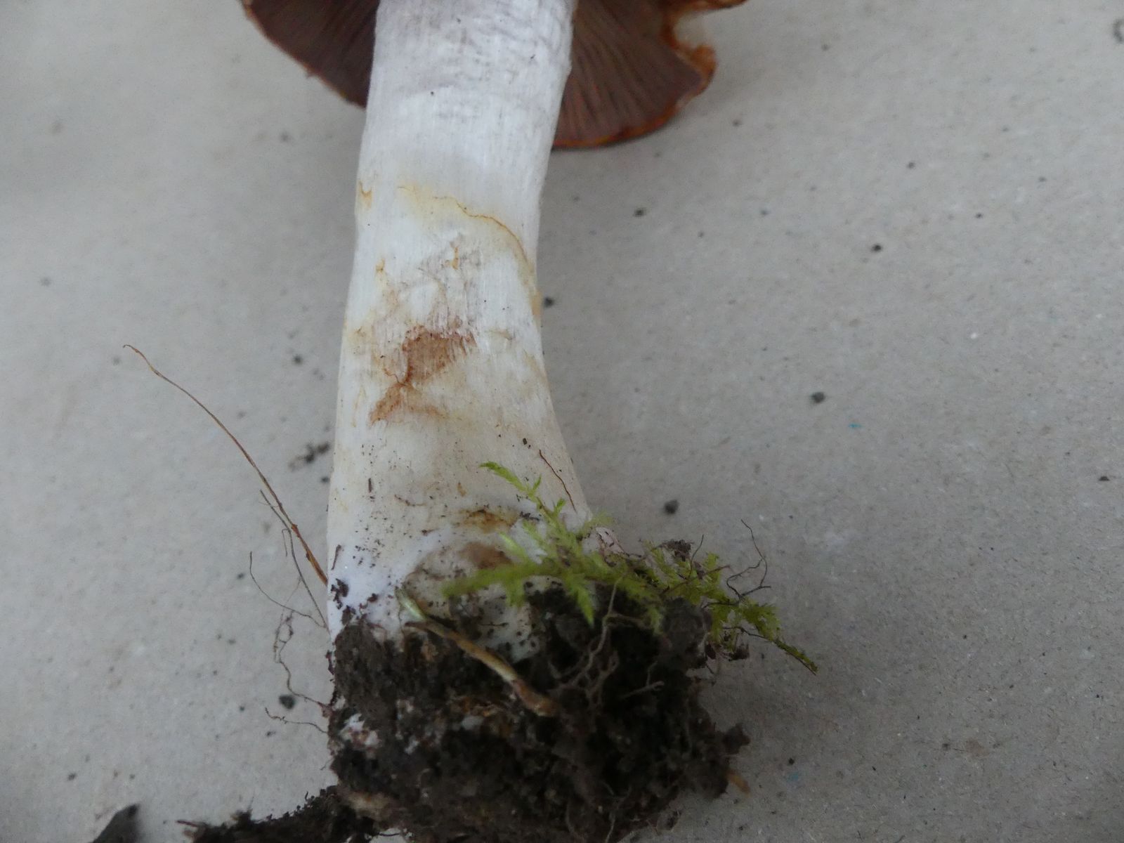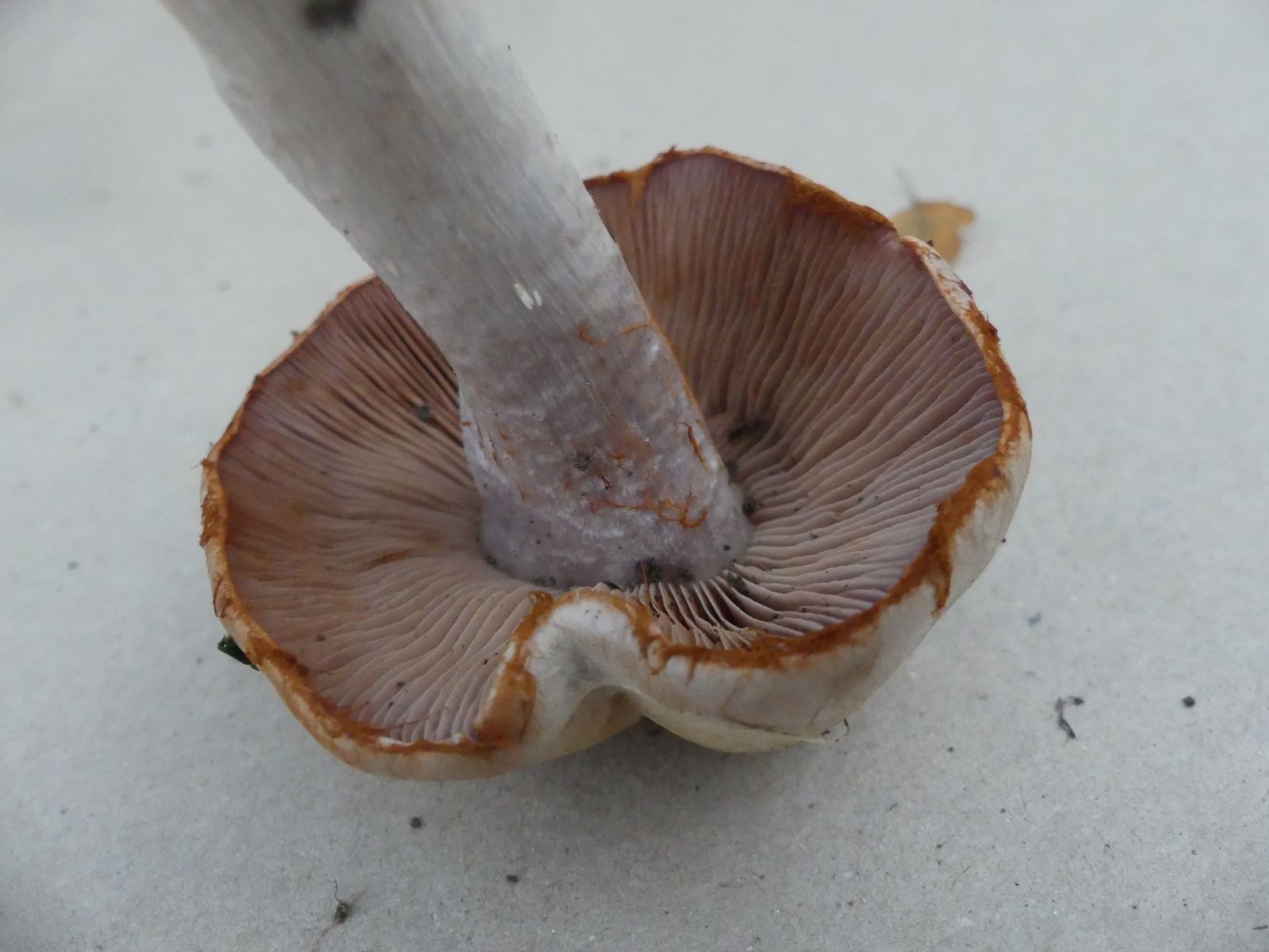 So ein schöner rostroter Cortinarest an der Hutkante. Die Stielspitze ist auch recht markant durch den blauvioletten Hauch und eine gewisse "Unebenheit", die man aber fotografisch kaum festmachen kann. Je nach Lichtverhältnissen wirkt das richtig strukturiert.