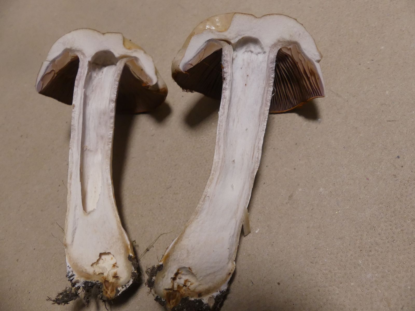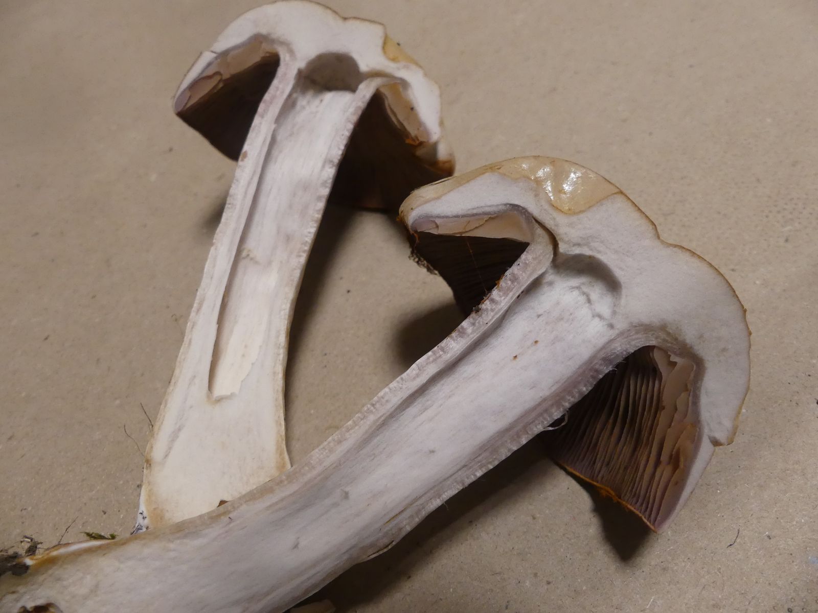 Heute habe ich im reinen Eichenwald auf Kalkboden diese markante Cortinarie gefunden. Wegen der gelben Velumbänder würde ich die als Telamonie ansprechen, auch wenn der Fruchtkörper relativ groß ist.