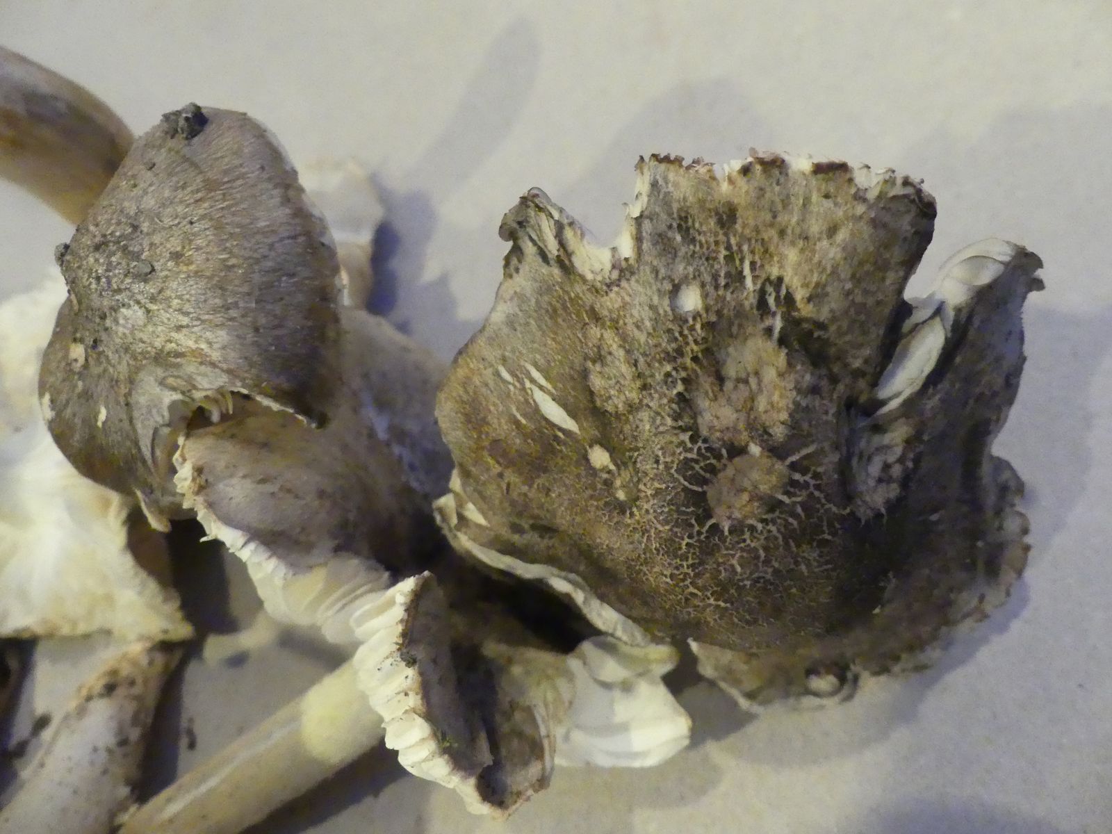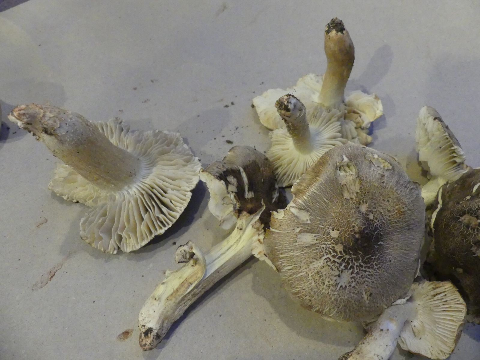 So dunkle Erd-Ritterlinge hatte ich noch nie. Gewachsen in reinen Eichenwald auf Kalkboden, sehr thermophiles Habitat, Weinbauklima Wiesbaden. Da muss man ja noch ein paar zusätzliche Kandidaten in Betracht ziehen, richtig? Kann man makroskopisch eine nähere Eingrenzung vornehmen? Geschmack absolut mild, mehlig-nussartig.
