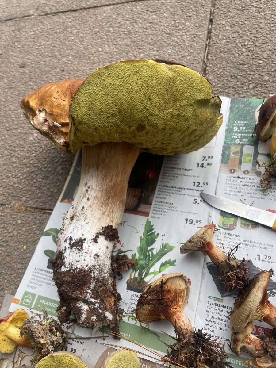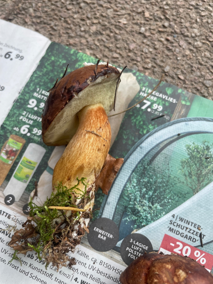 Parallel könntest Du auf Steinpilze ausweiten, wenn Du schon ein so aussagekräftiges, wenn auch altes, Exemplar vorliegen hast und Dir hoffentlich den Platz gemerkt hast wo er wuchs.