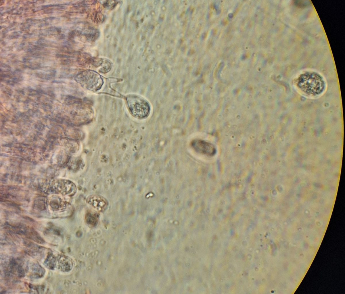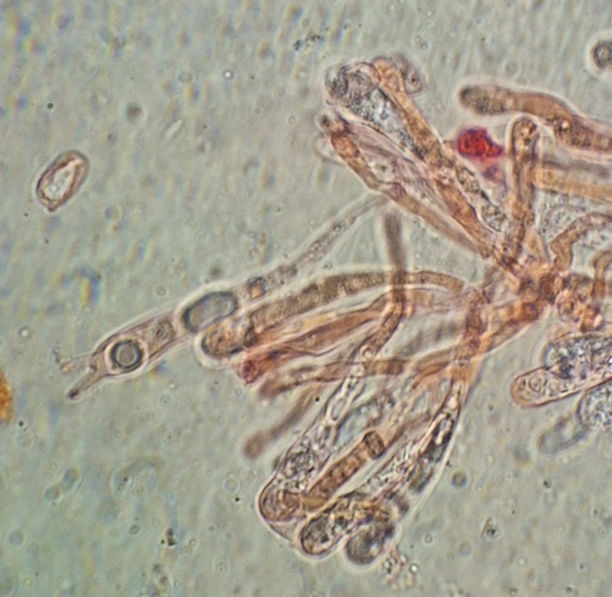 Die 2-Sporigkeit habe ich erst später sicher gesehen, zu welchem Zweck ich eine Lamelle im Durchlicht angeschaut habe