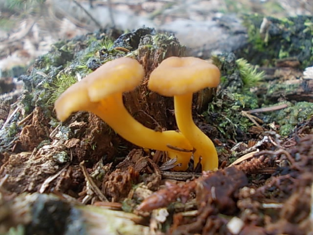 • Die Tage habe ich nochmal genau darauf geachtet und versucht zu erkennen in was die Trompetenpfifferlinge denn genau wachsen. Und das scheint relativ eindeutig wirklich immer nur die Erde zu sein die sich im Holz abgesetzt hat. Interessanterweise sind mir dabei recht viele Gallertkäppchen aufgefallen. Die scheinen sich dieses Jahr sehr zu häufen und standen oft unmittelbar daneben, wenn nicht sogar mittendrin.