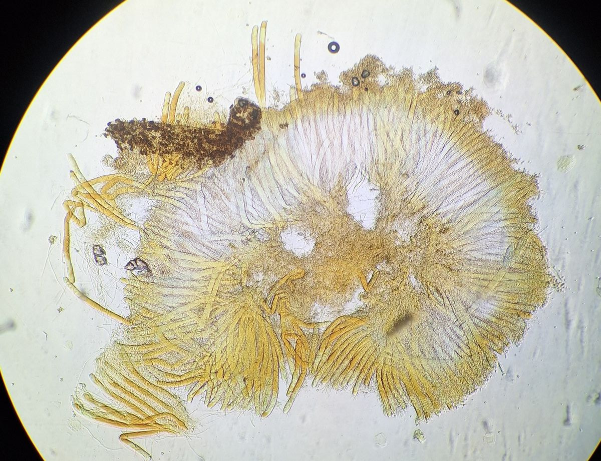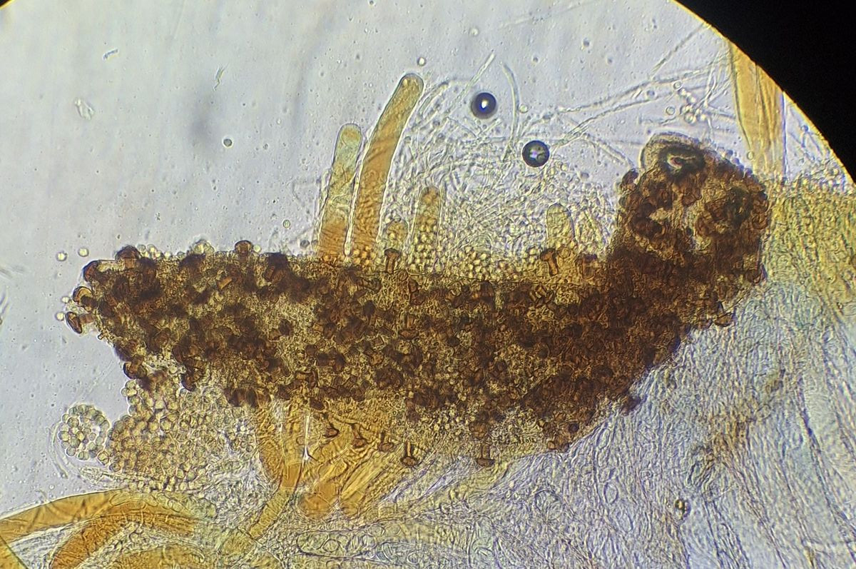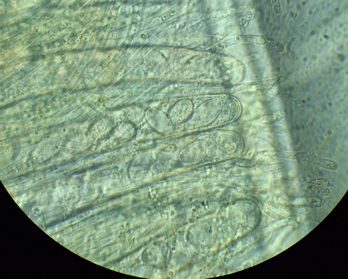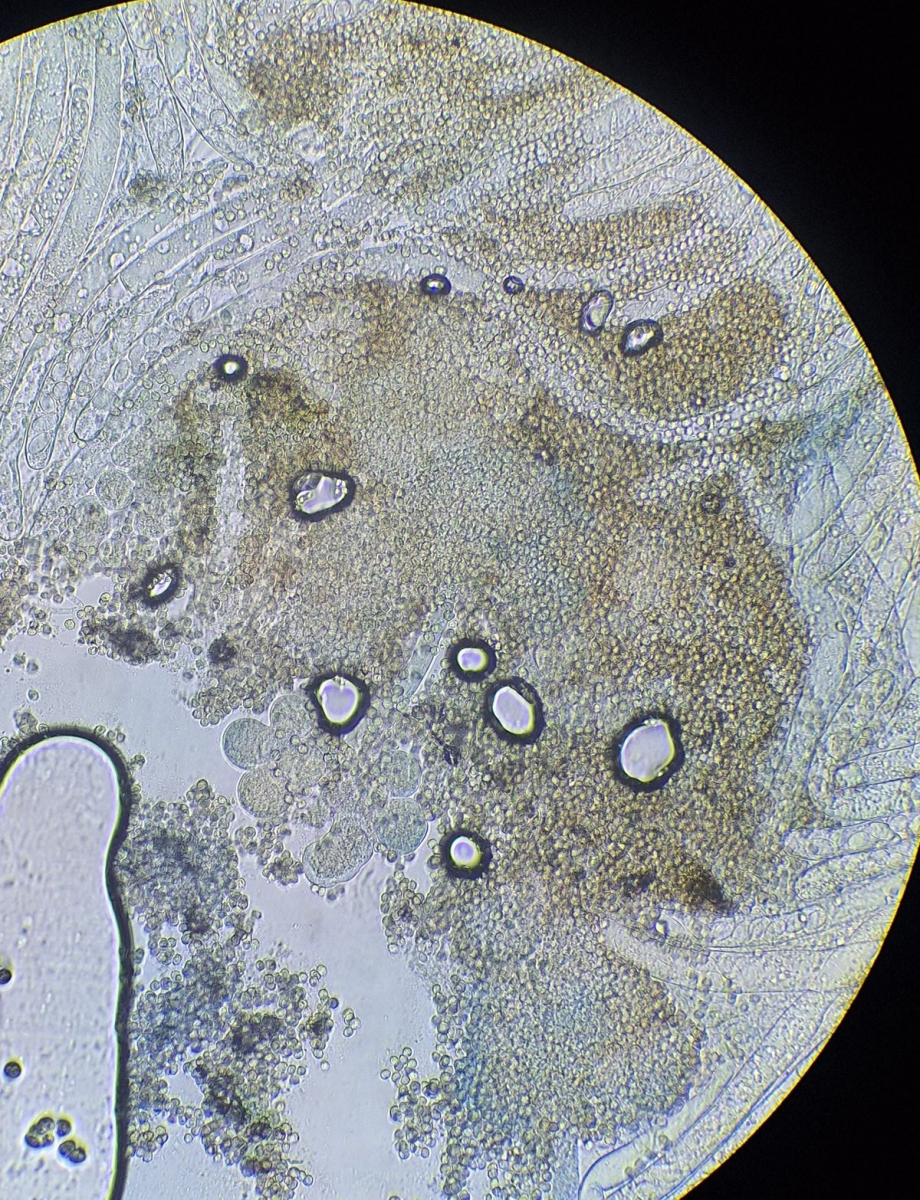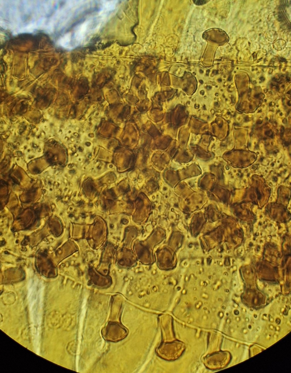 hier sind über dem Hymenium Kullern verschiedener Größe zu sehen