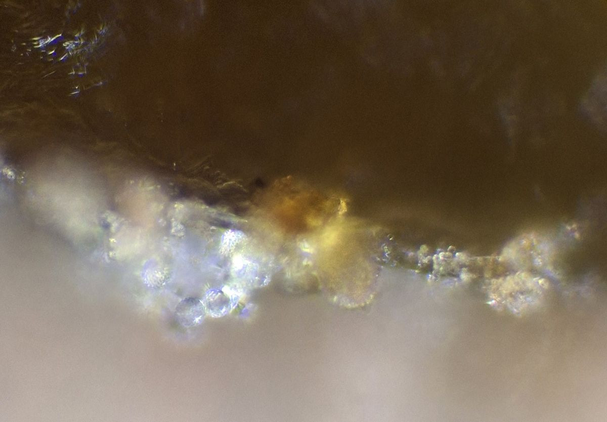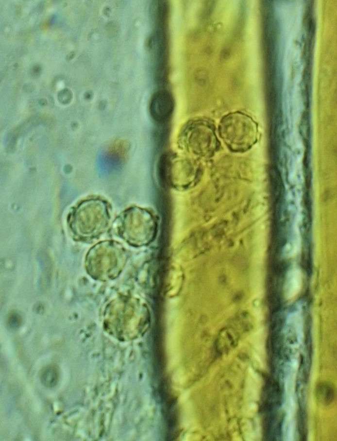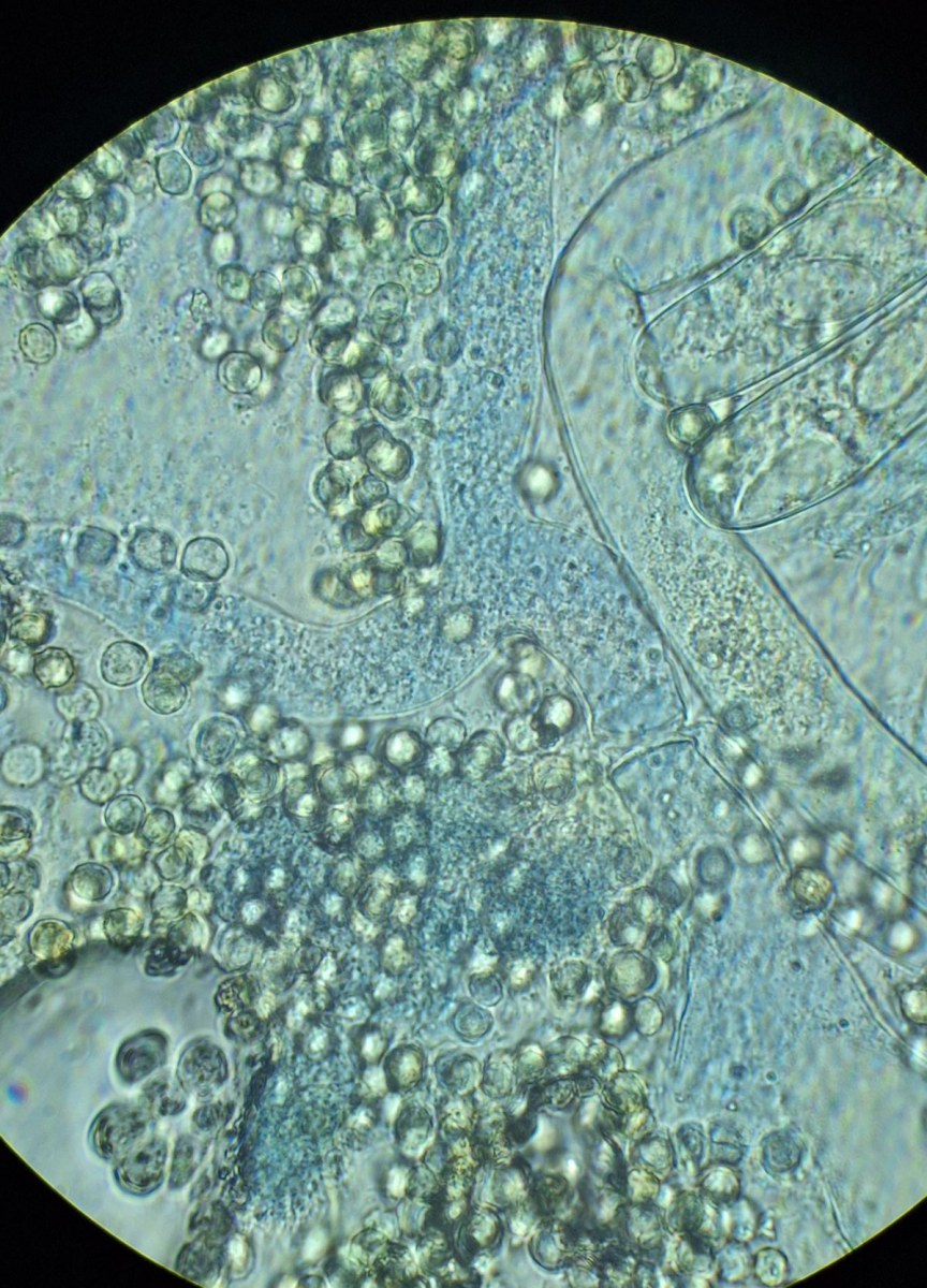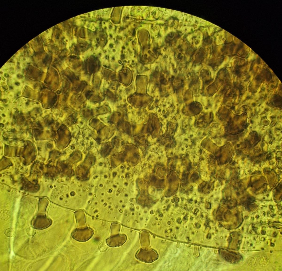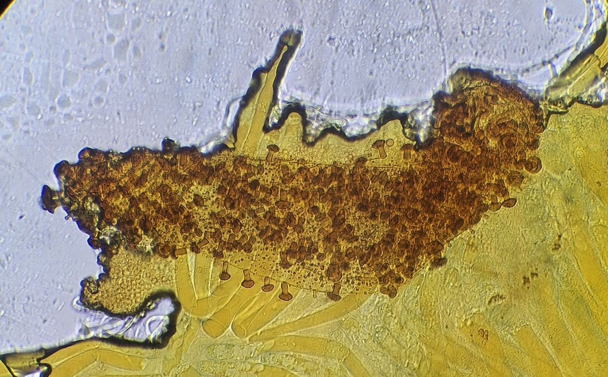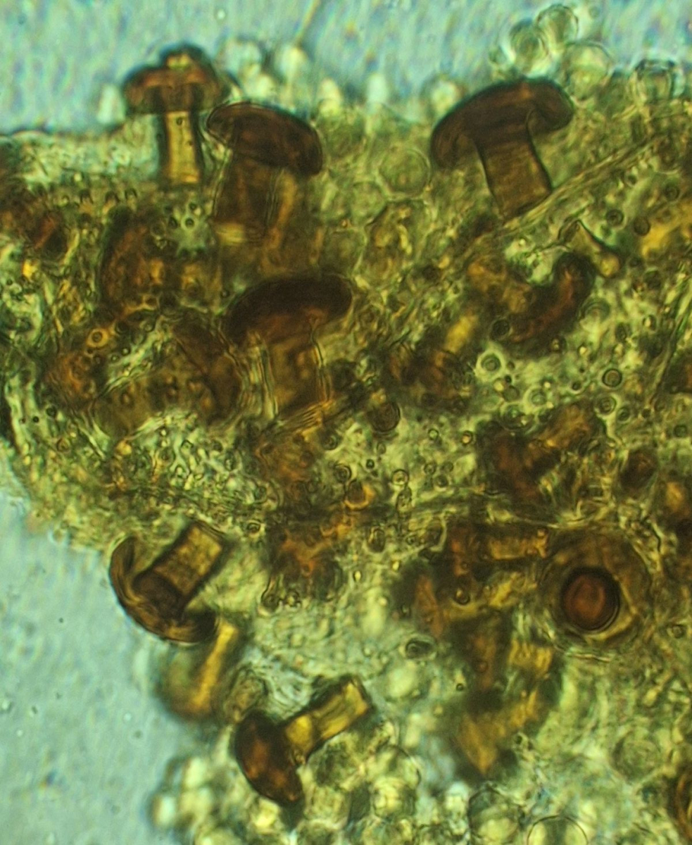 hier sind über dem Hymenium Kullern verschiedener Größe zu sehen