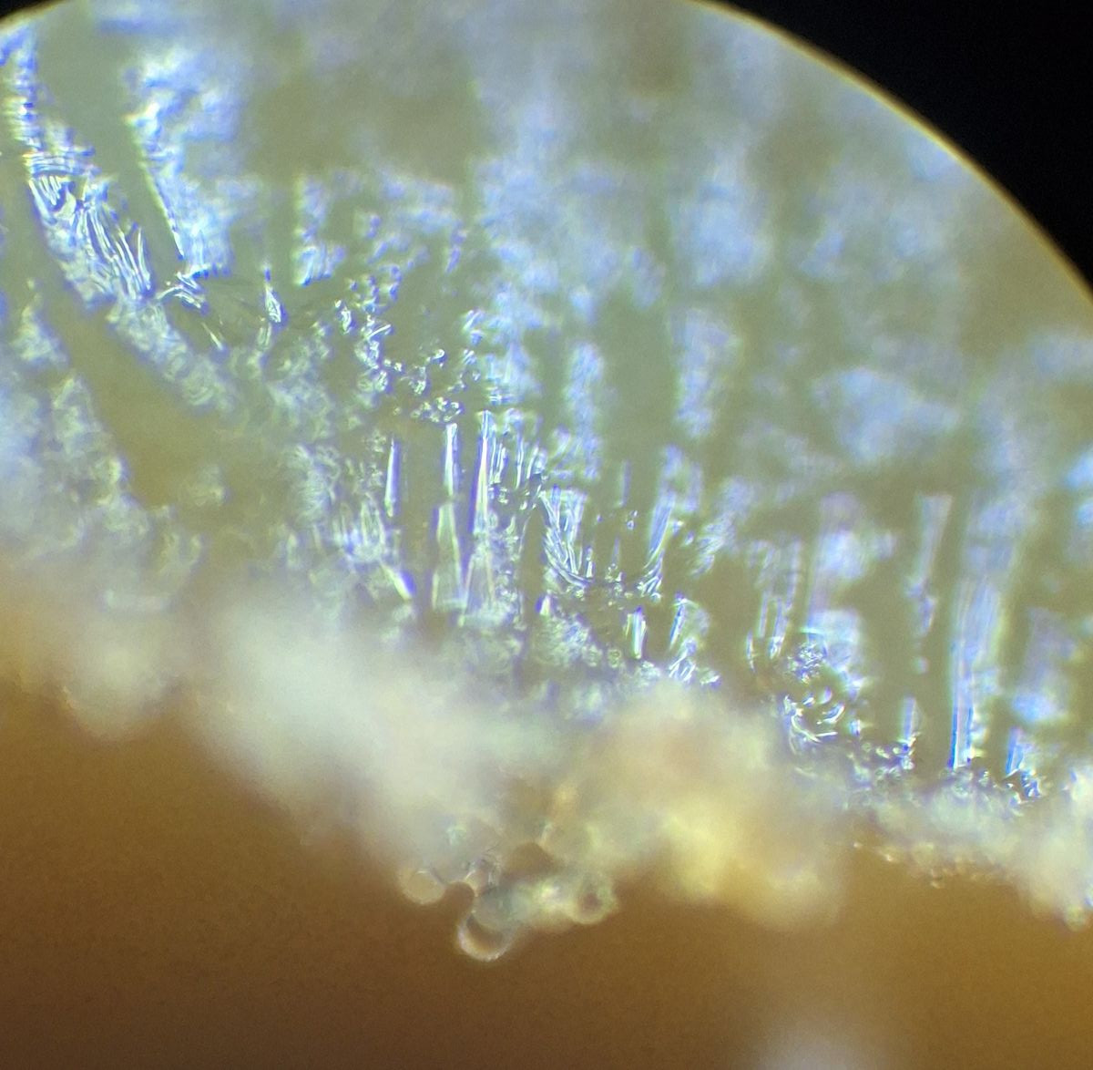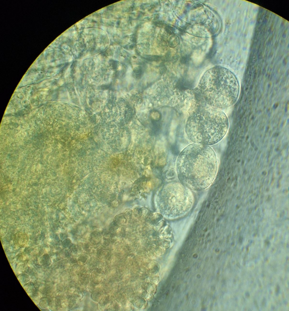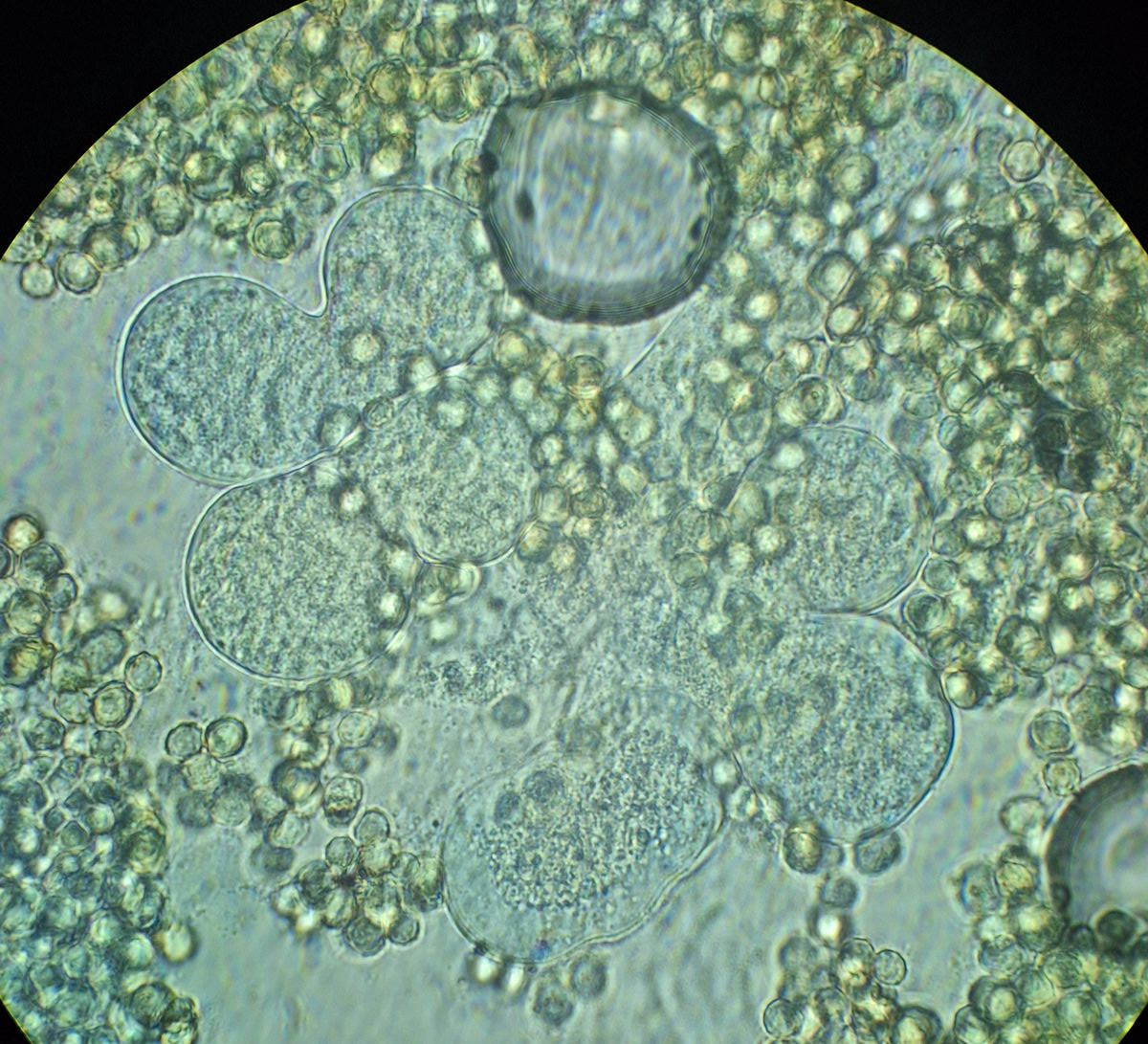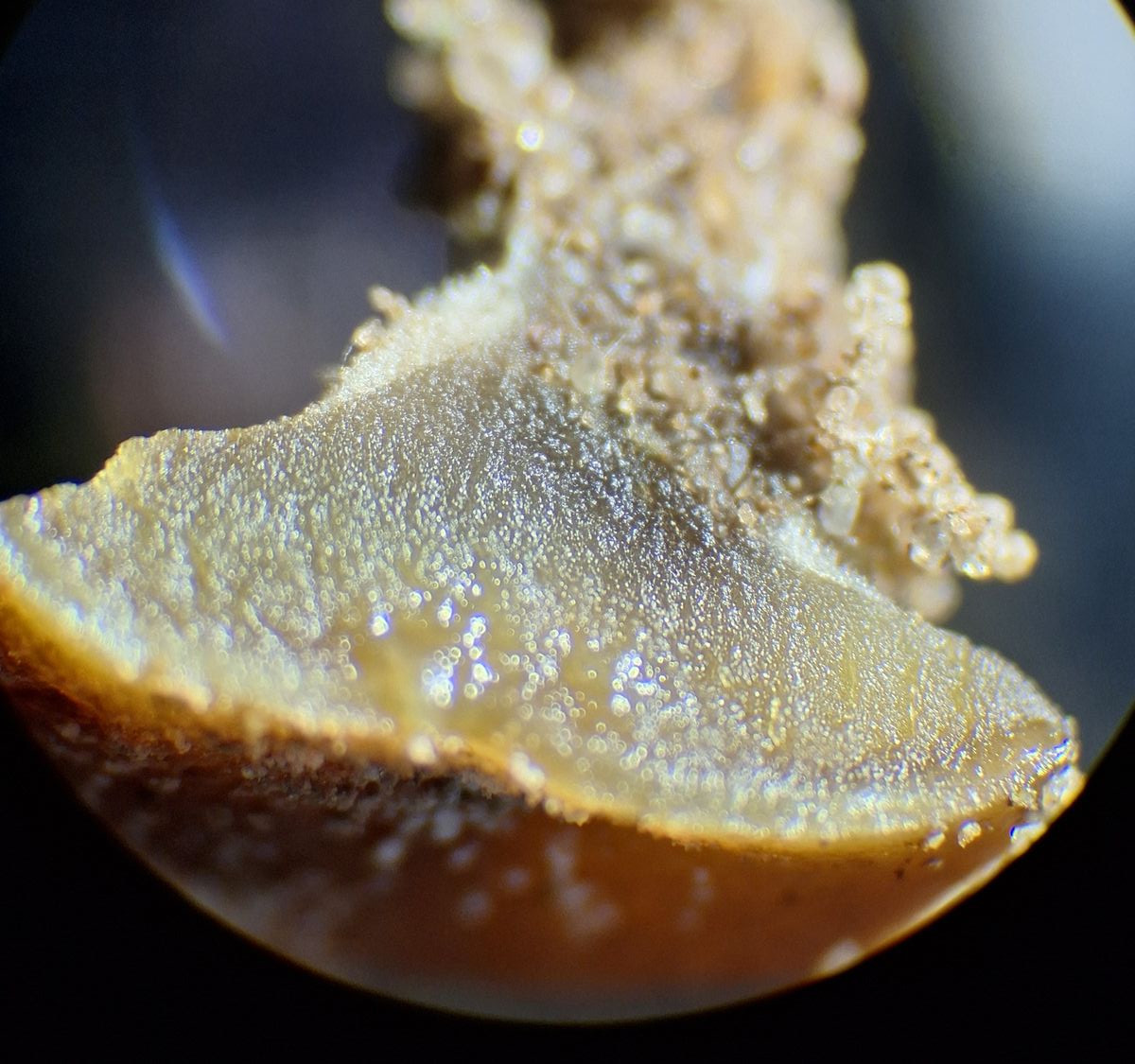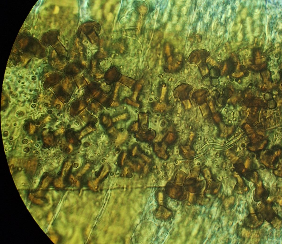 hier sind über dem Hymenium Kullern verschiedener Größe zu sehen