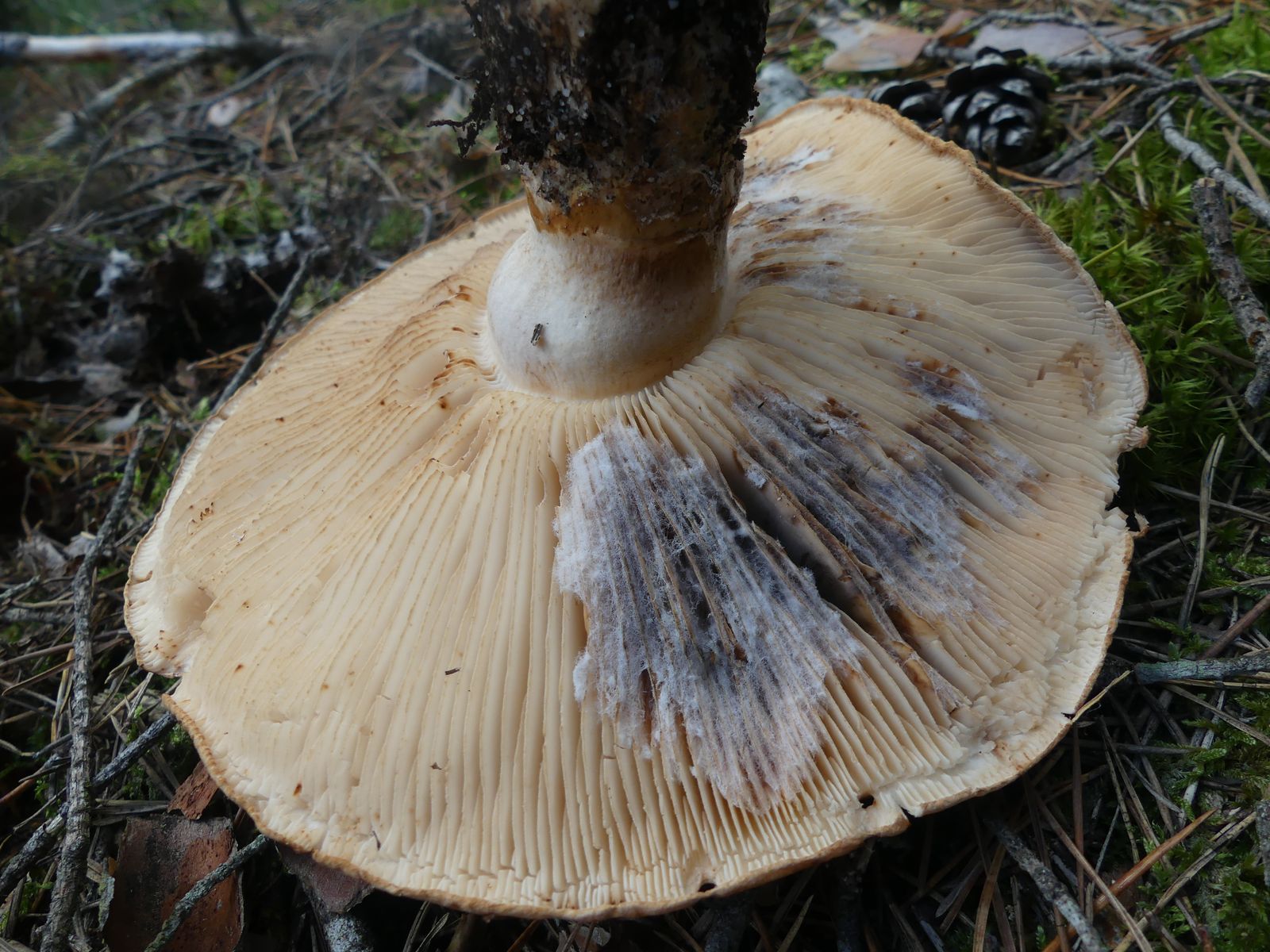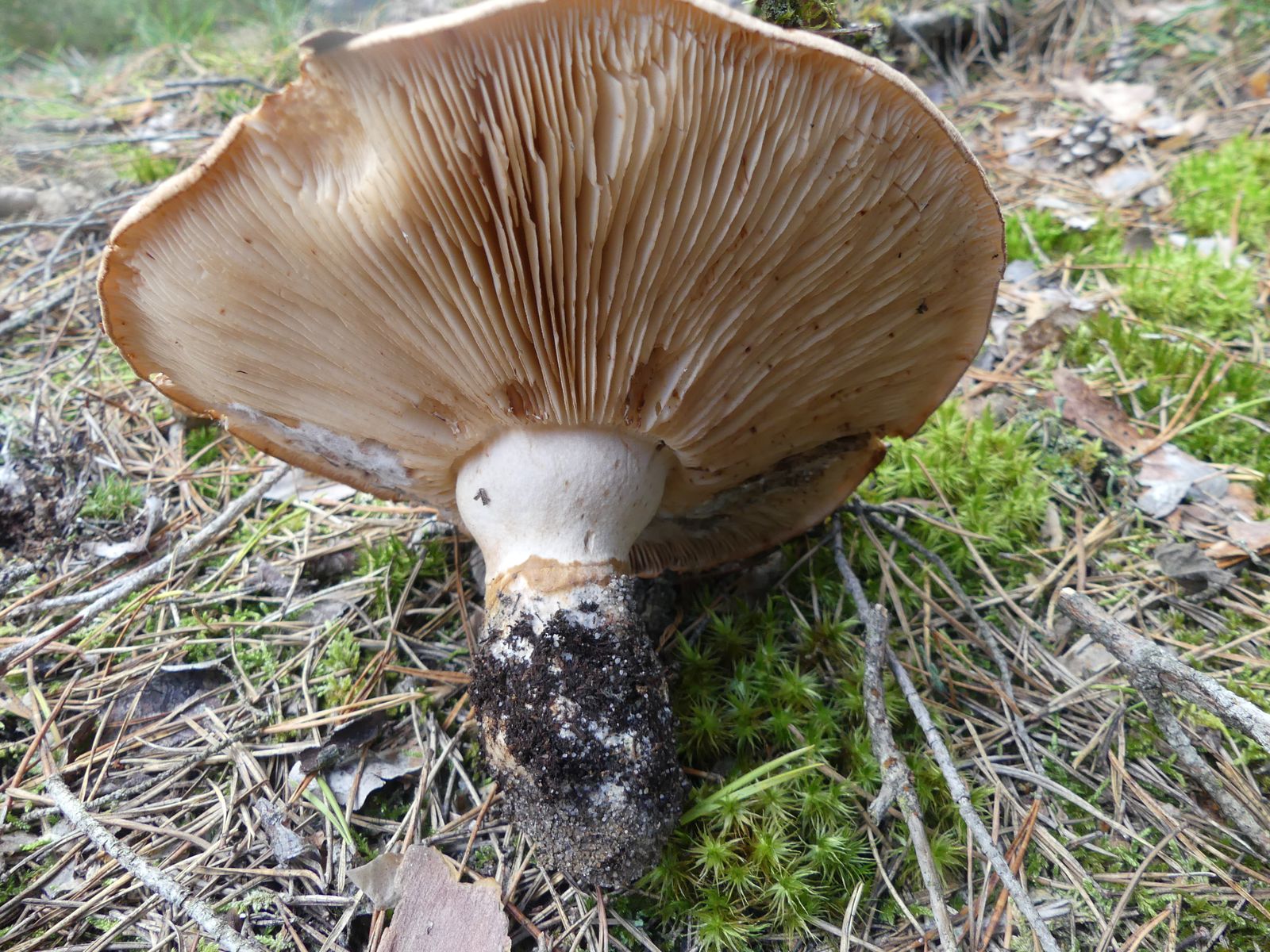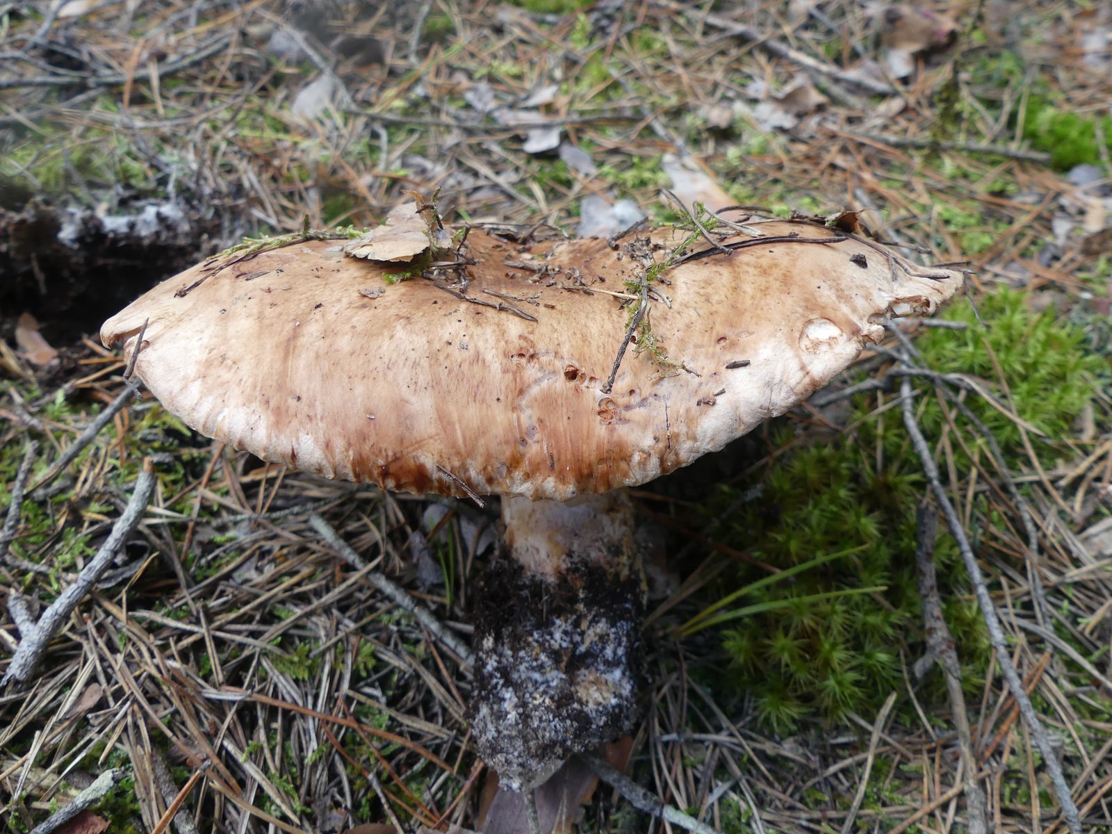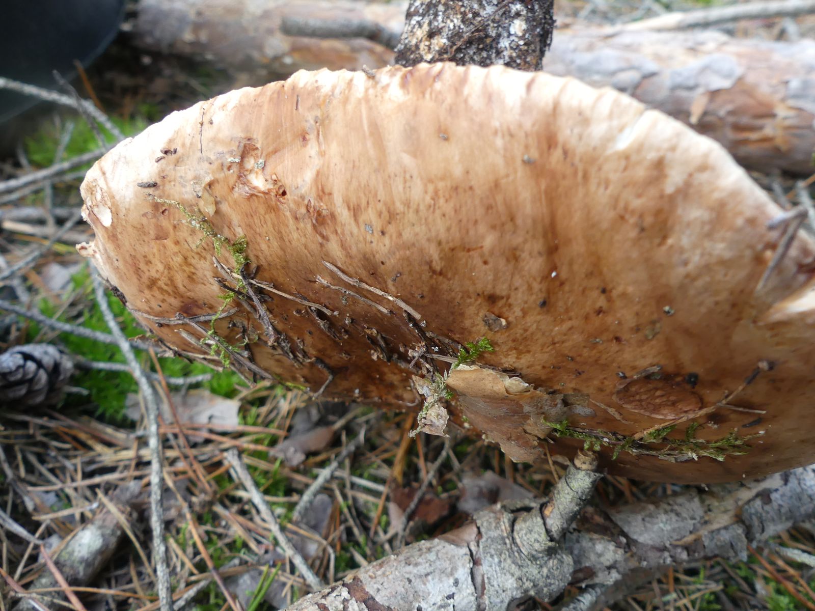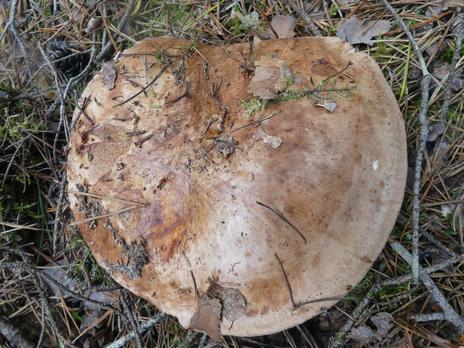 ... habe ich da wohl im reinen Kiefernwald auf Sandboden gemacht. Glaube/hoffe ich zumindest, denn die Stielstruktur und das Gesamterscheinungsbild sprechen meiner Meinung nach dafür. Hutdurchmesser ca. 17 cm, kein Geruch wahrnehmbar.