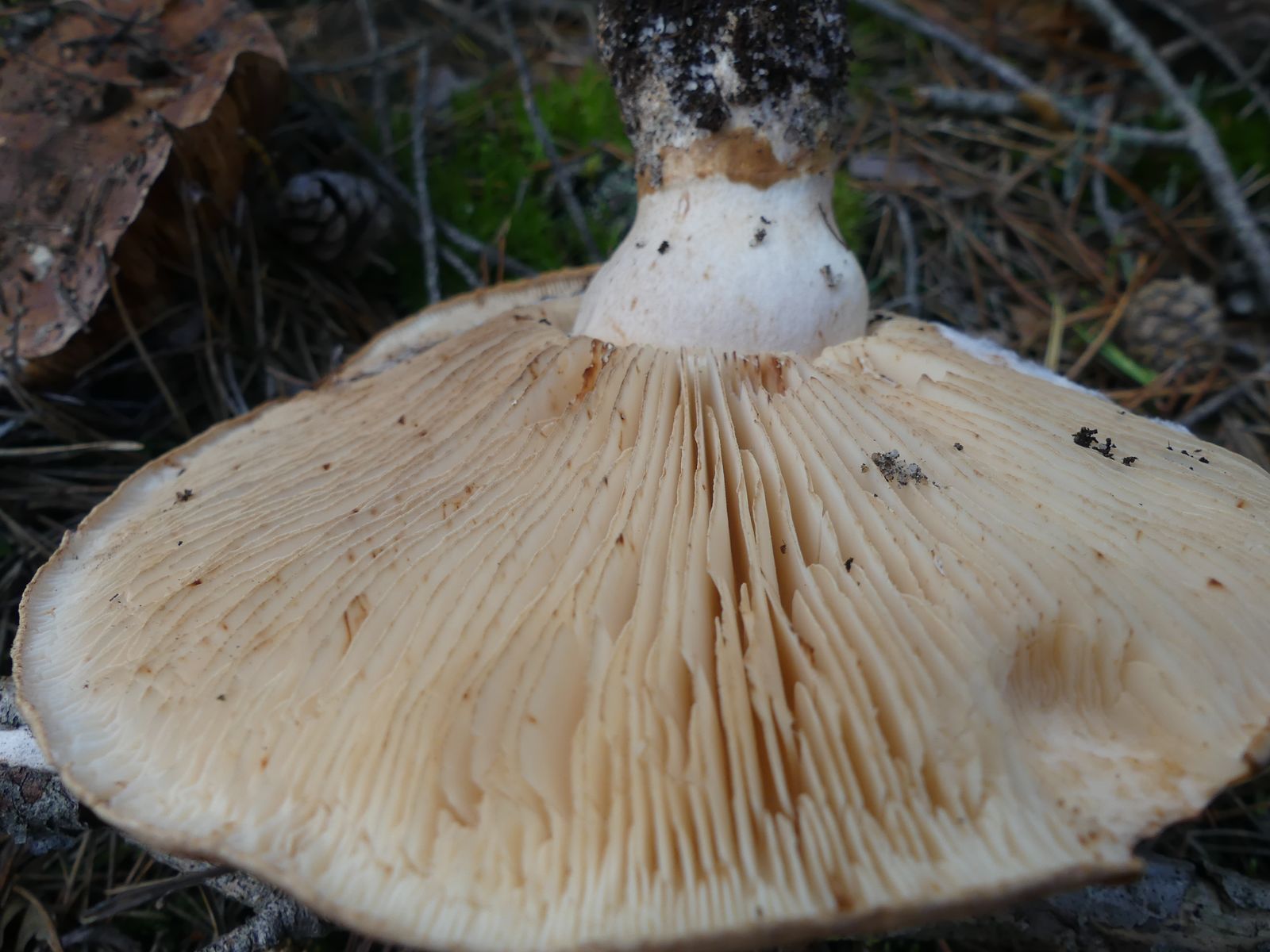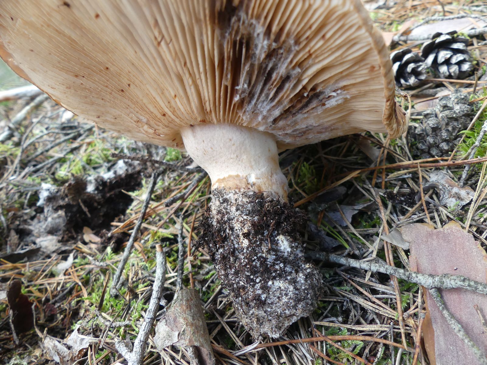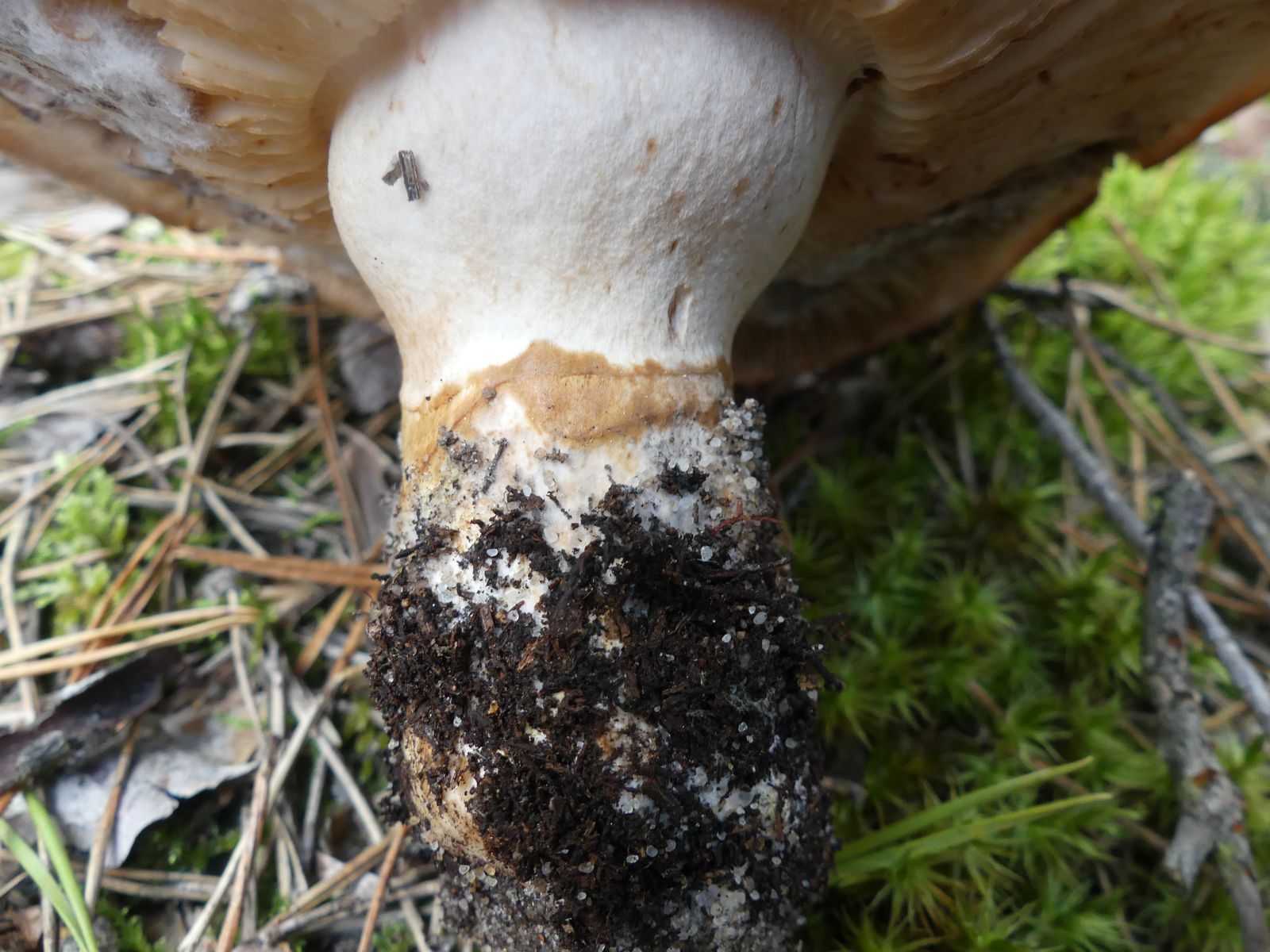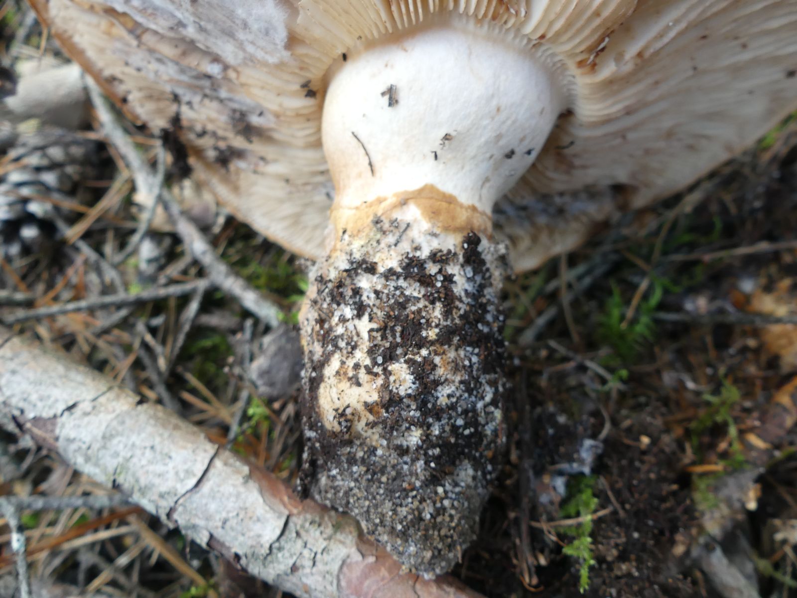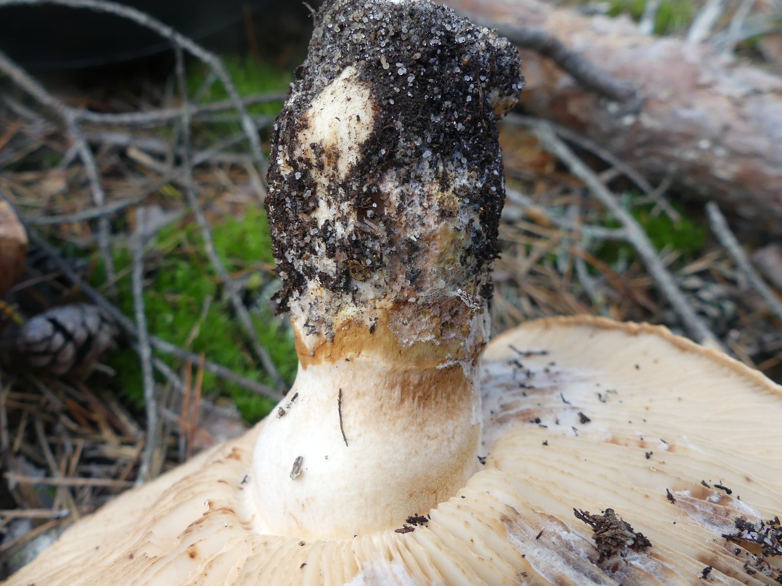 ... habe ich da wohl im reinen Kiefernwald auf Sandboden gemacht. Glaube/hoffe ich zumindest, denn die Stielstruktur und das Gesamterscheinungsbild sprechen meiner Meinung nach dafür. Hutdurchmesser ca. 17 cm, kein Geruch wahrnehmbar.