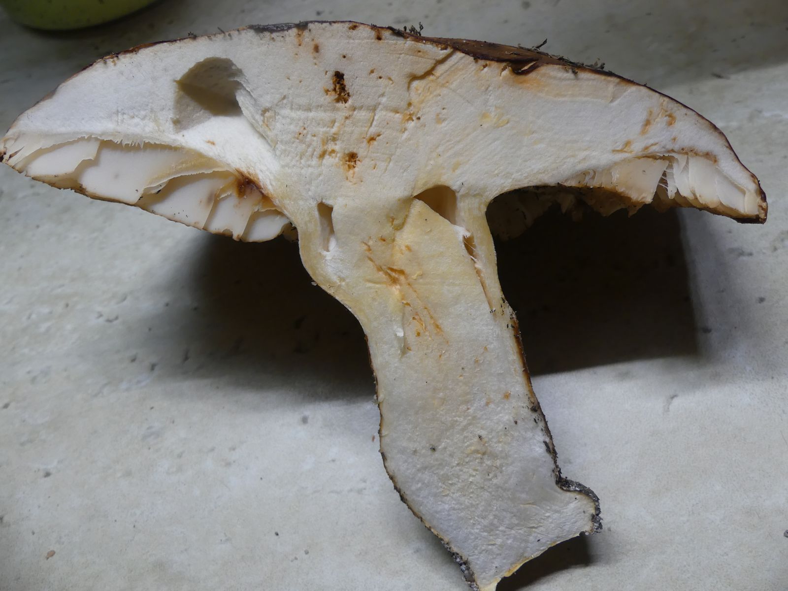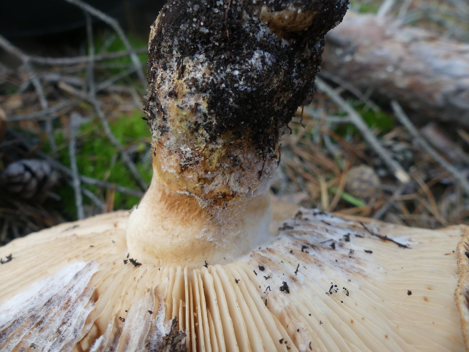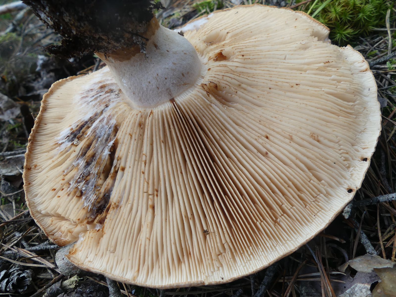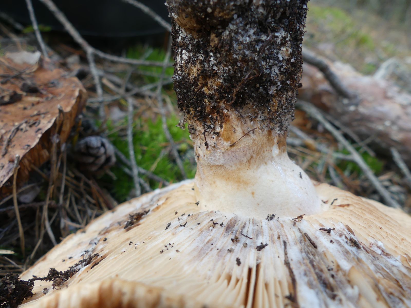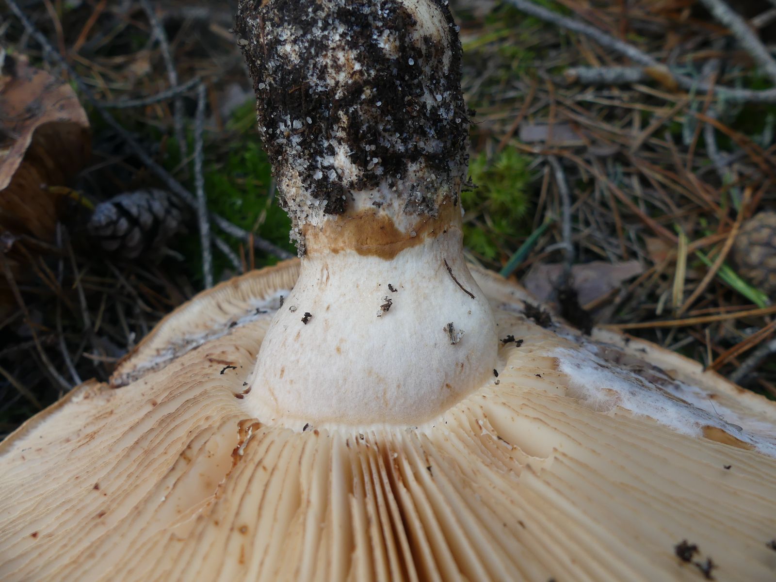 ... habe ich da wohl im reinen Kiefernwald auf Sandboden gemacht. Glaube/hoffe ich zumindest, denn die Stielstruktur und das Gesamterscheinungsbild sprechen meiner Meinung nach dafür. Hutdurchmesser ca. 17 cm, kein Geruch wahrnehmbar.