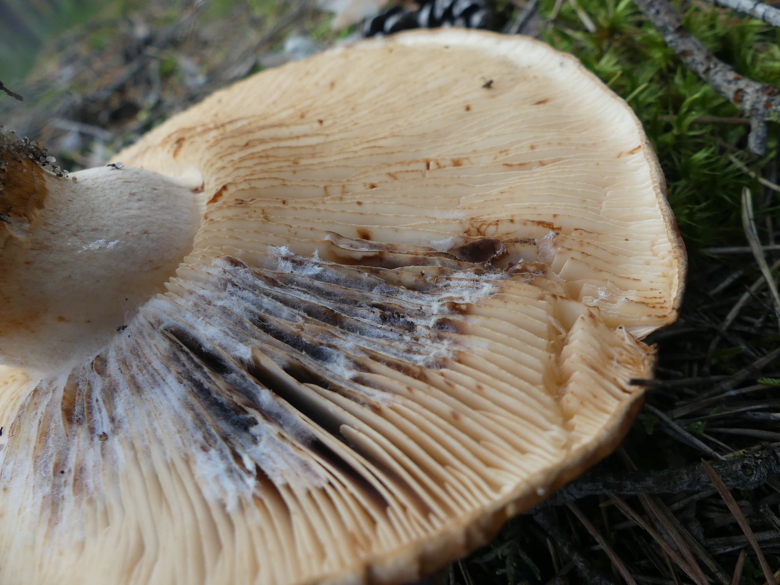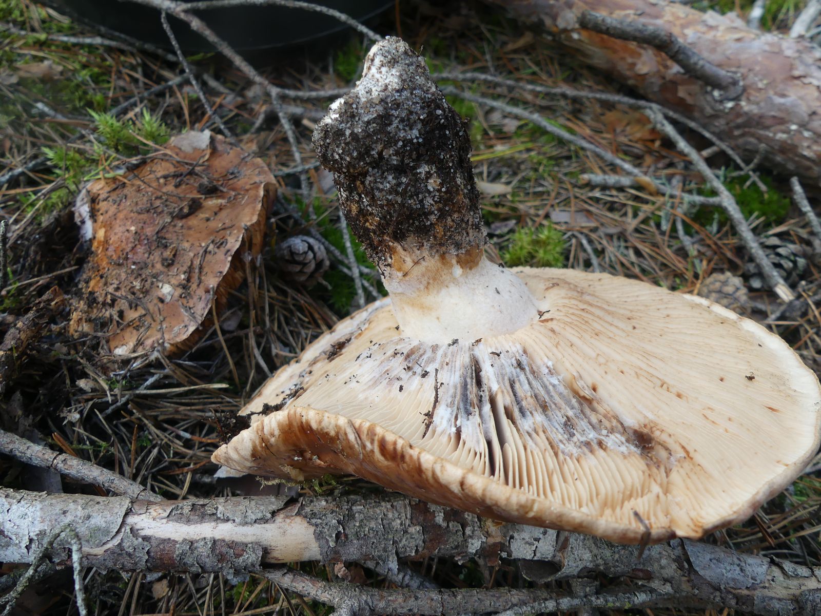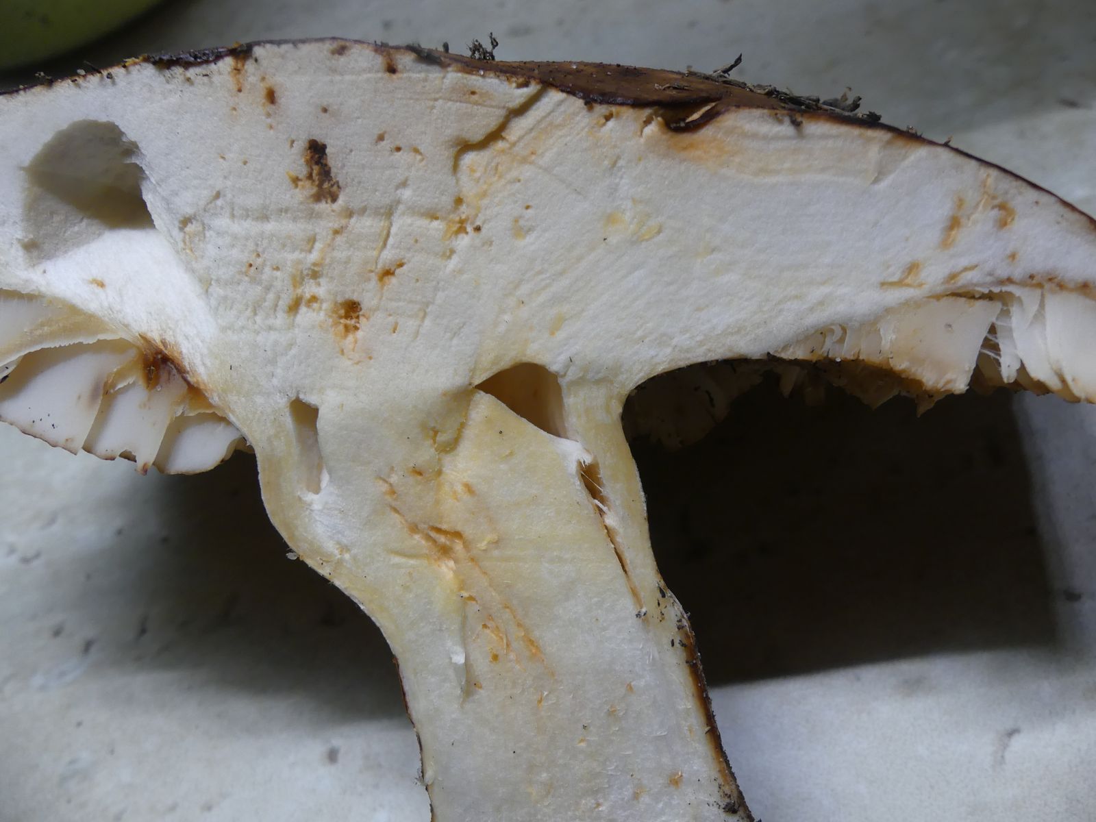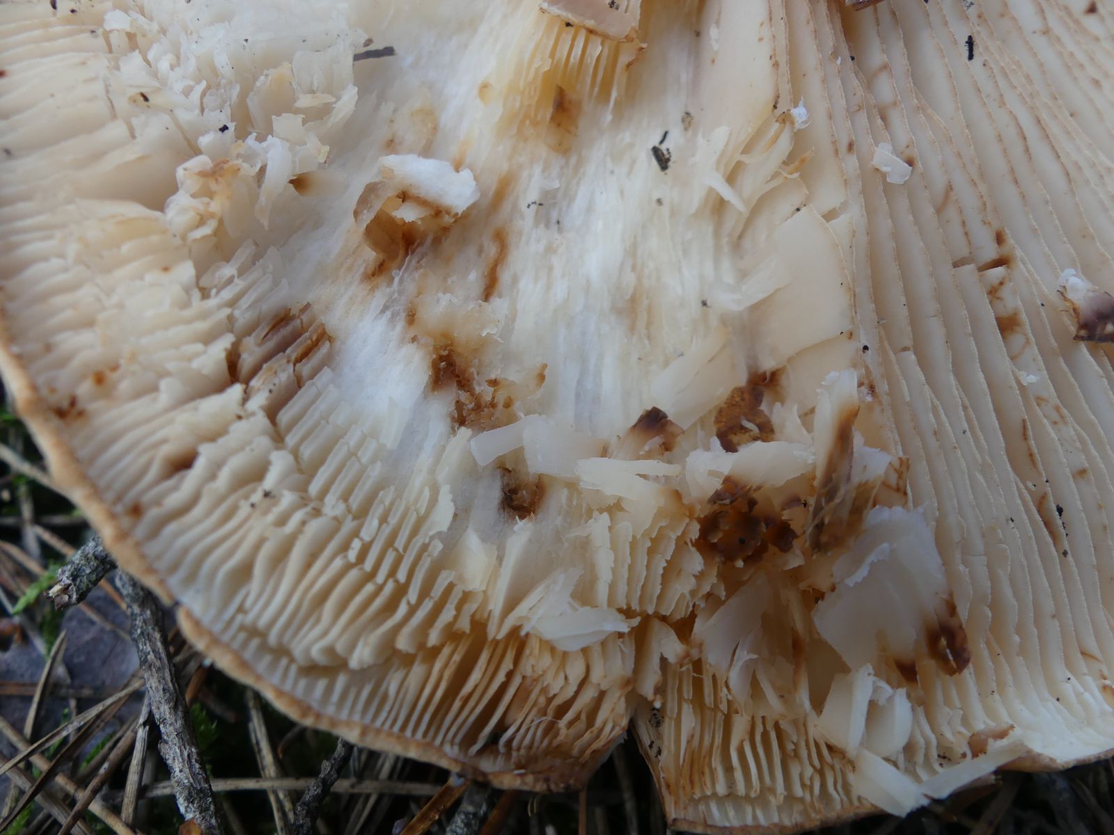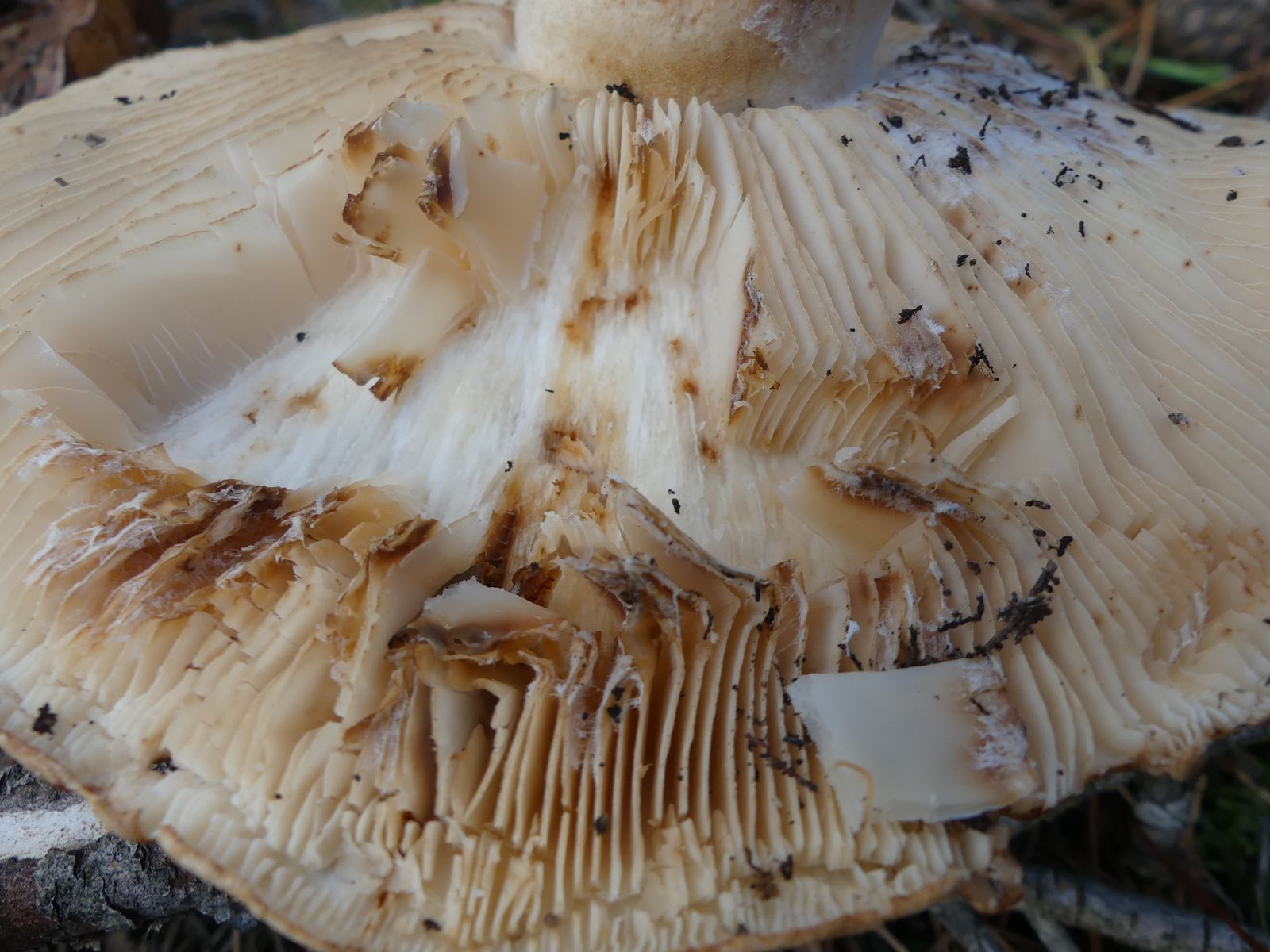 ... habe ich da wohl im reinen Kiefernwald auf Sandboden gemacht. Glaube/hoffe ich zumindest, denn die Stielstruktur und das Gesamterscheinungsbild sprechen meiner Meinung nach dafür. Hutdurchmesser ca. 17 cm, kein Geruch wahrnehmbar.