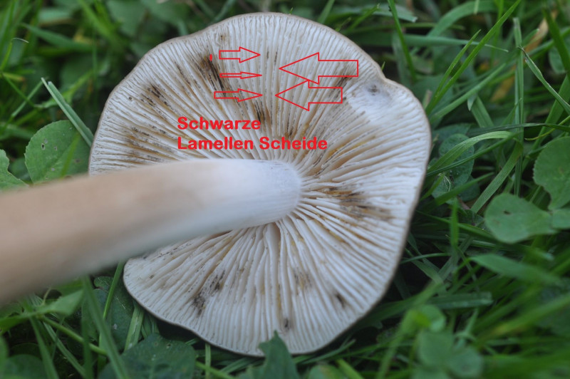 Wer kann mir auf die Sprünge helfen? Kein besonderer Geruch feststellbar, auch nicht heute, nachdem ich nun leichte Rötungen feststellen kann. Deshalb glaube ich mit diesem Gesamthabitus, der sehr zugespitzten Stielbasis und dem sparrig-grobschuppigen Stiel auch nicht an einen schnöden Seifenritterling. Auch die Lamellenstruktur spricht dagegen, das ist was besseres - hoffe ich zumindest.