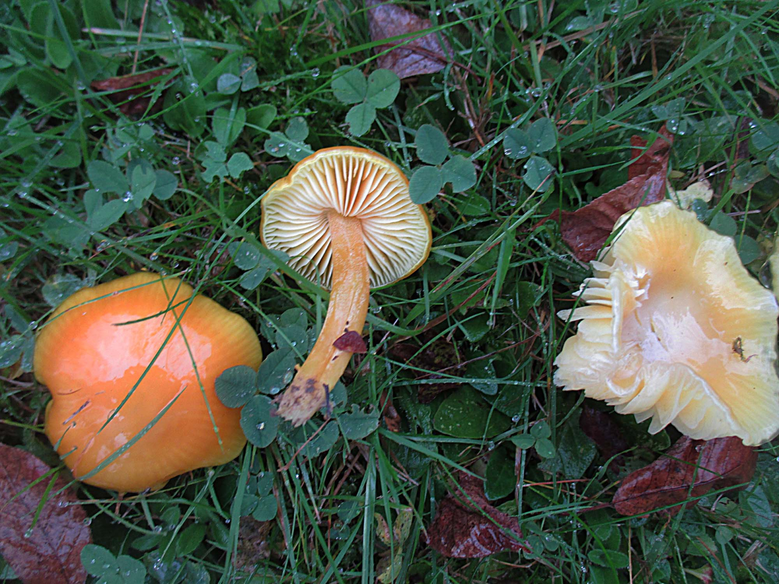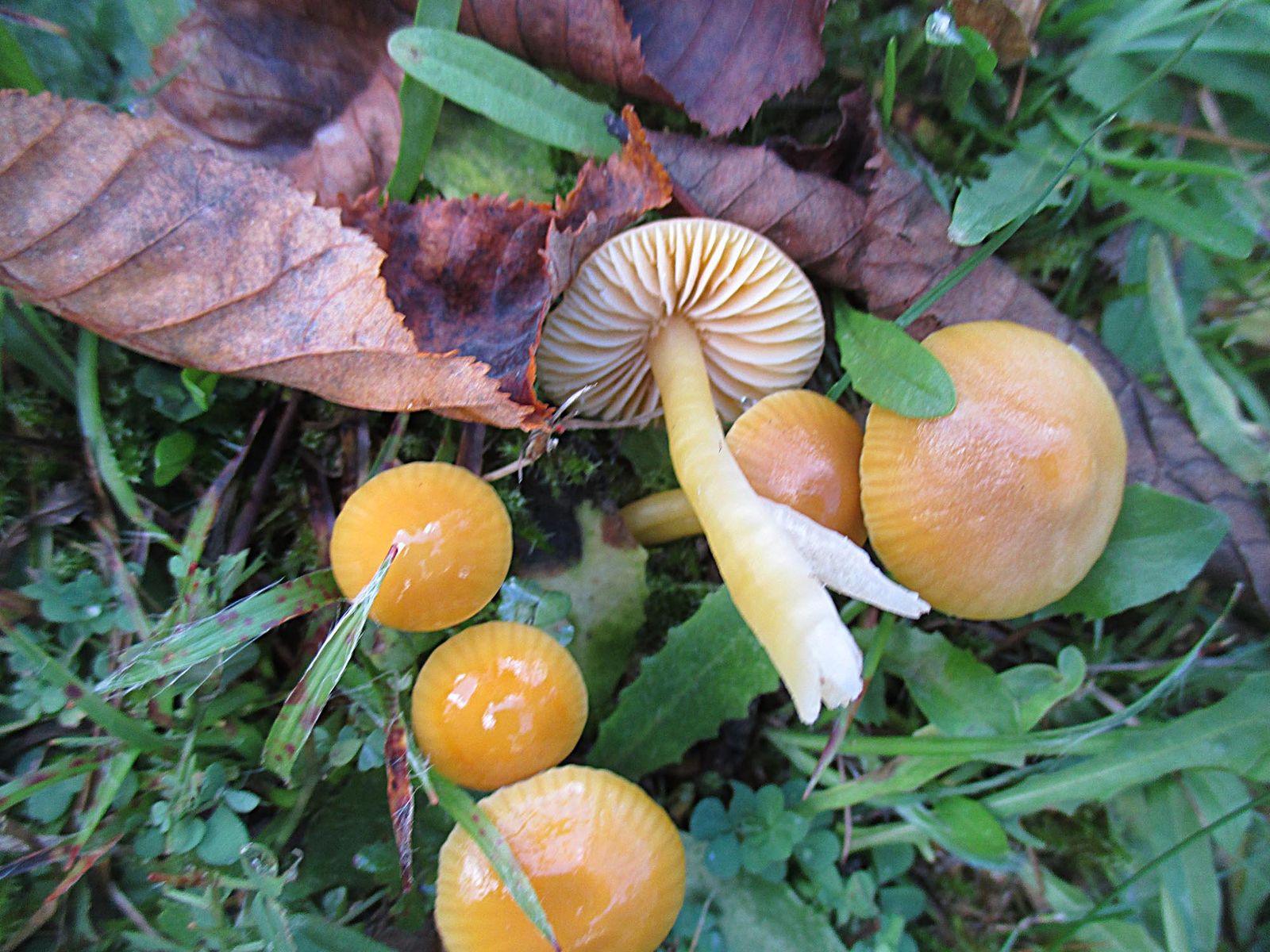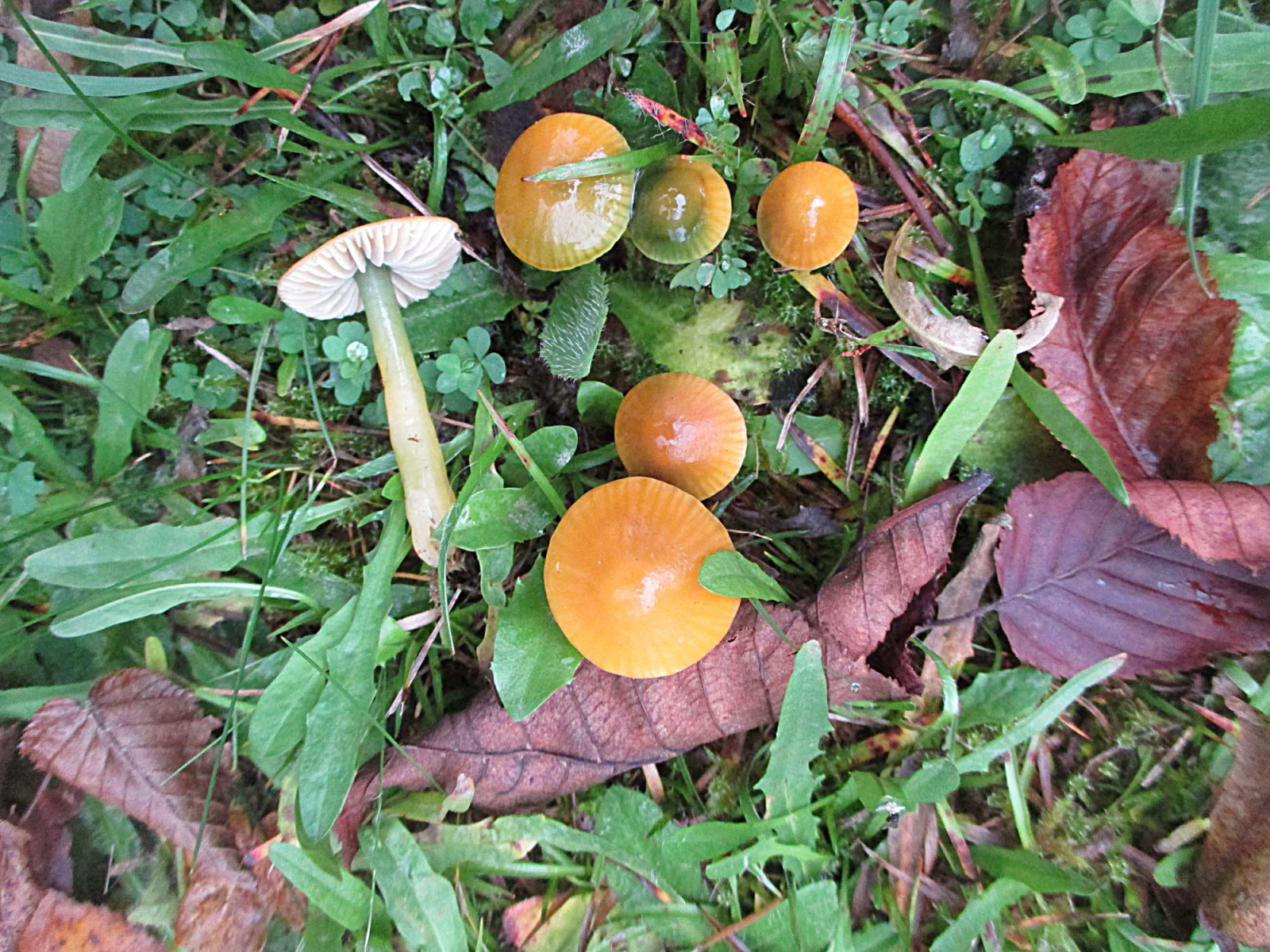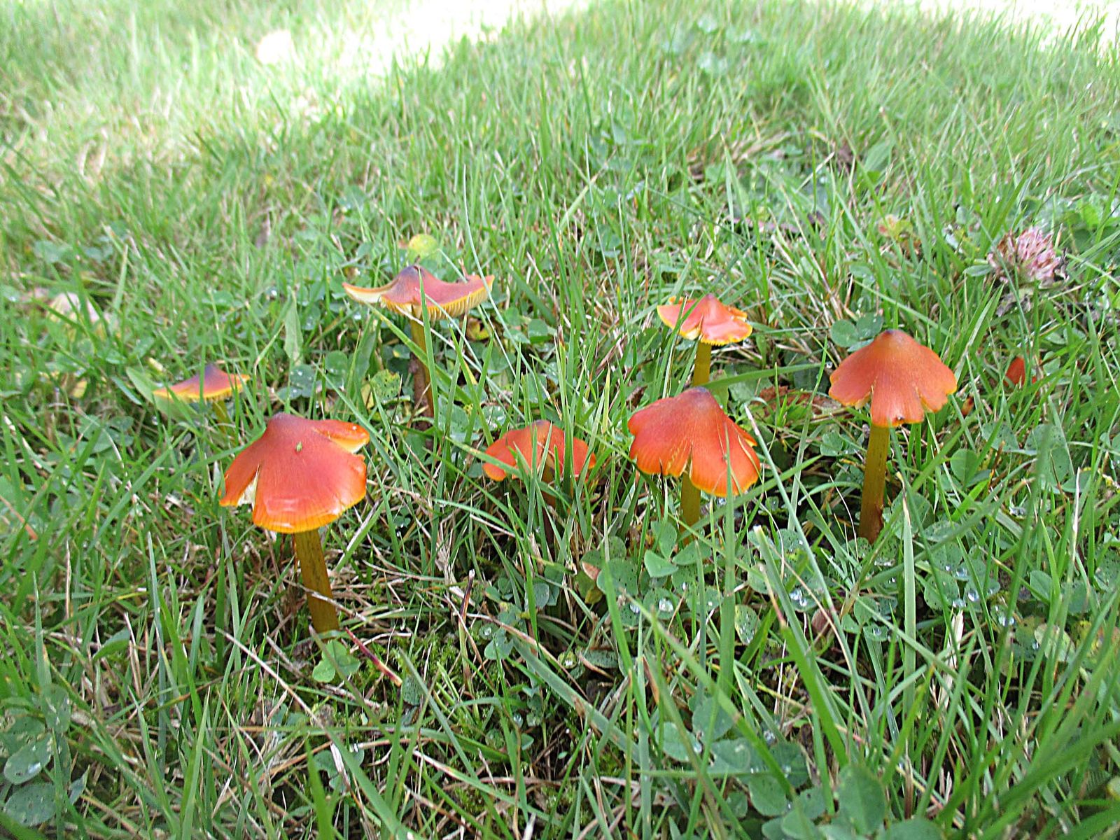 Auf den Wiesen waren schöne Saftlinge wie der Zerbrechliche Saftling,