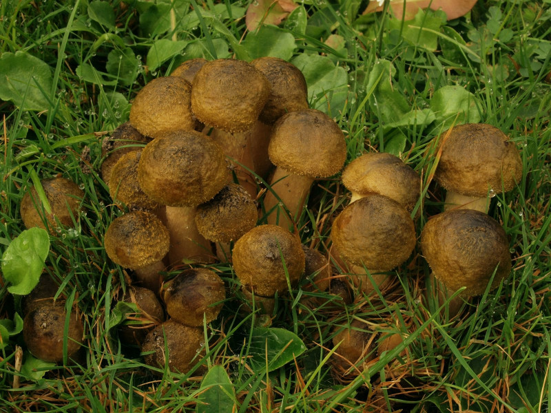 Leicht zu erkennen und gewöhnlich in Wiesen anzutreffen Gummi-Schüppling (Pholiota gummosa)