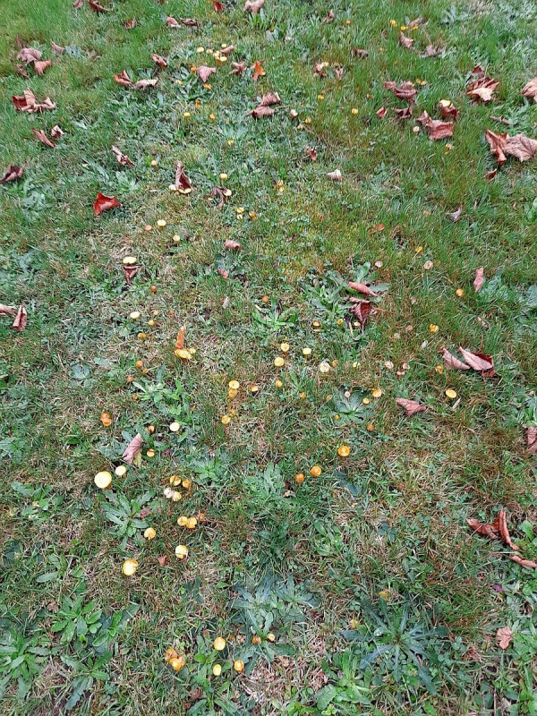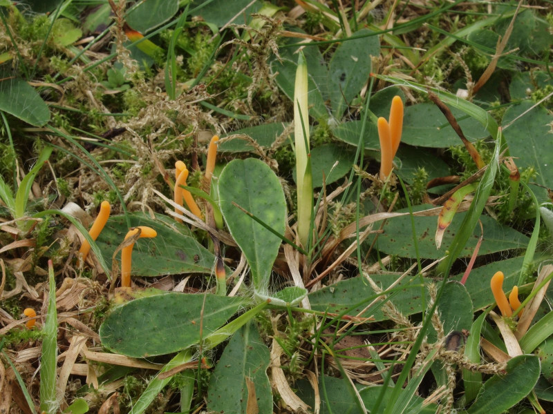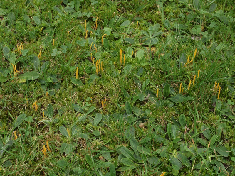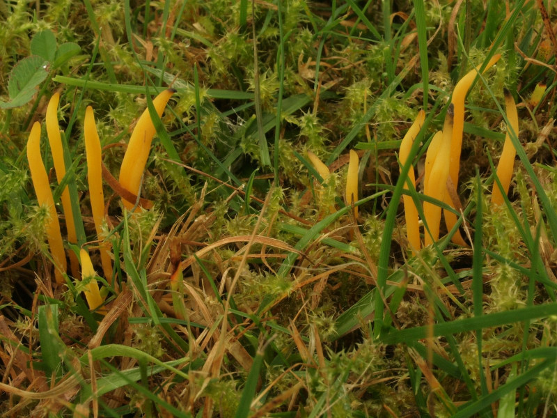 Dominierend war die Goldgelbe Wiesenkeule (Clavulinopsis helvola) mit grobwarzigen Sporen
