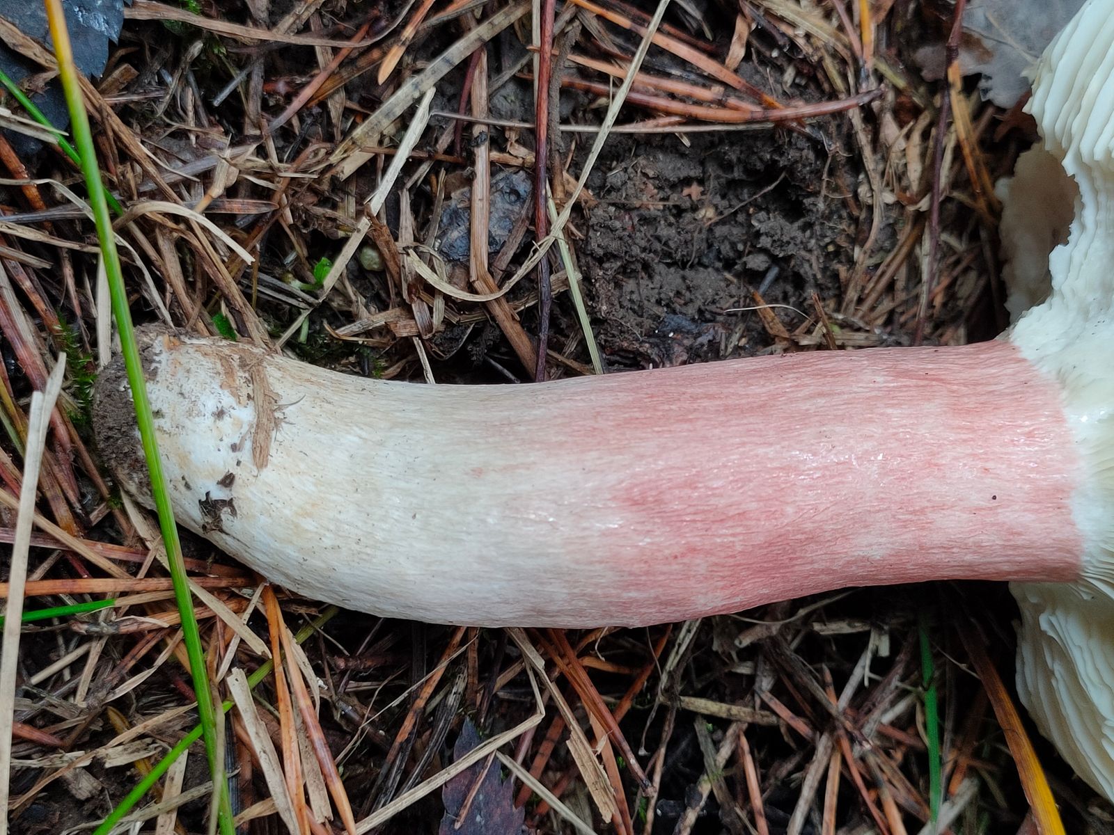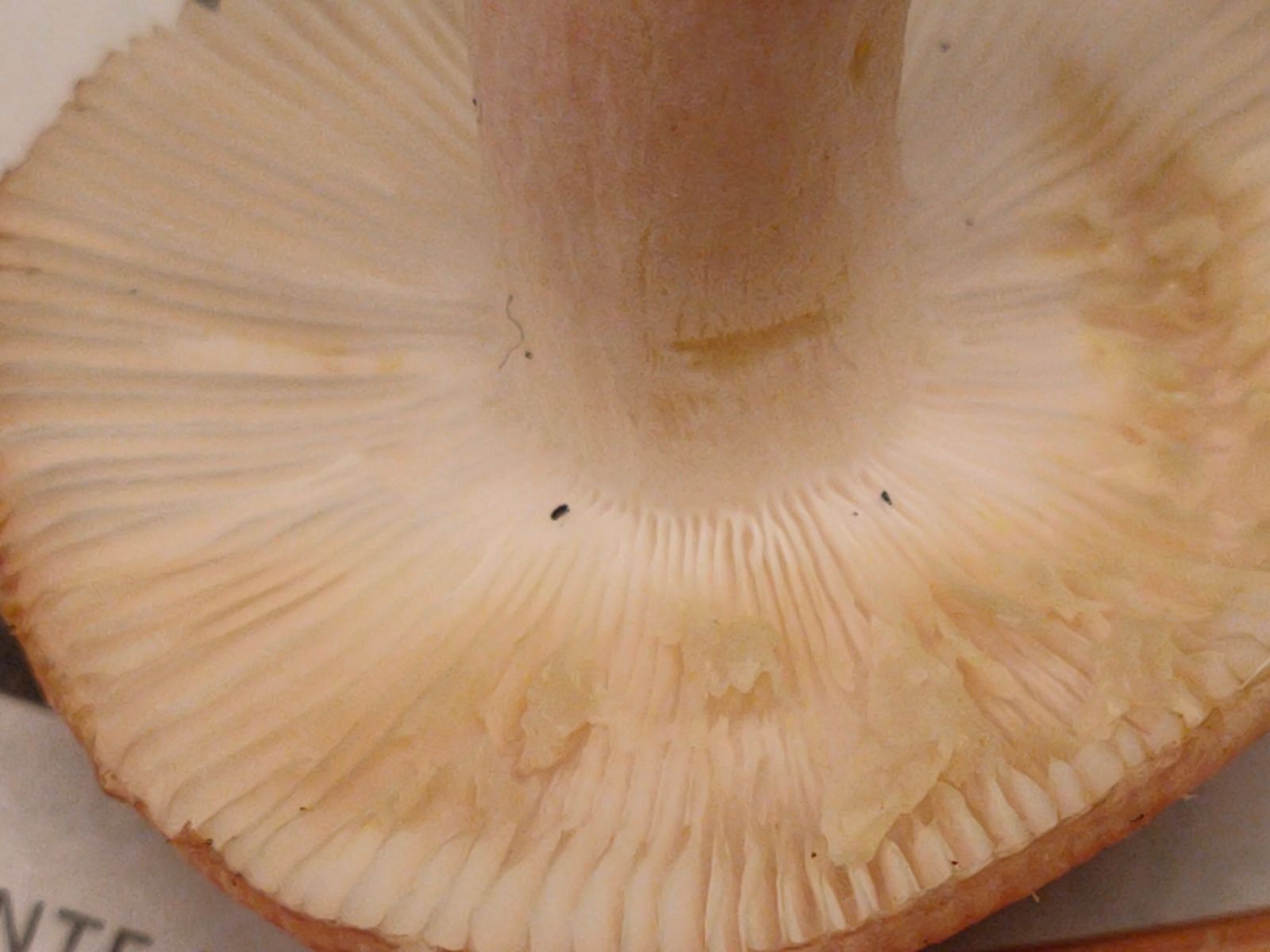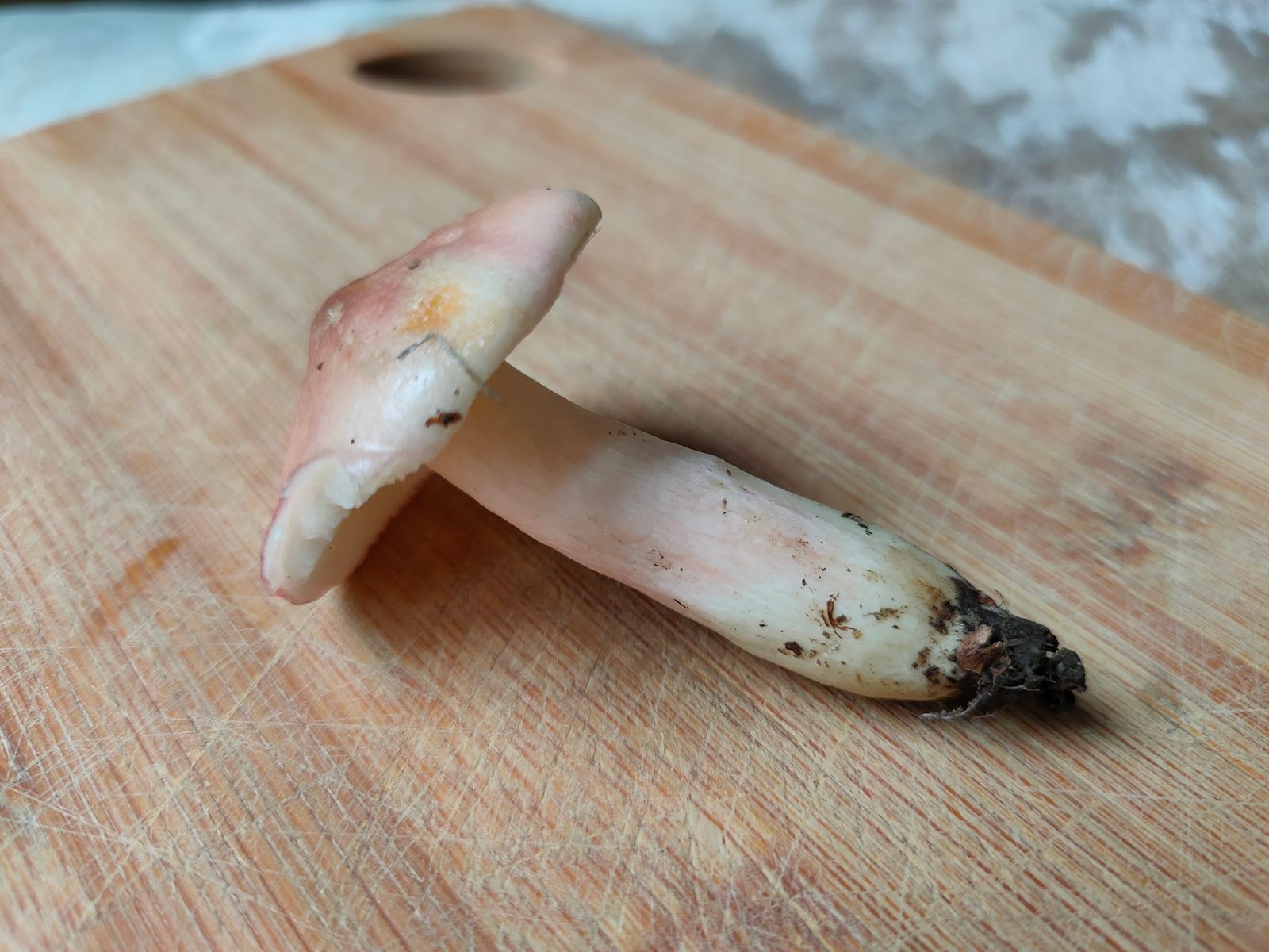 Sehr brüchig und ordentlich niedergedrückt. Der rote Reflex am Stiel reicht apikal bis zum Hut. Die Lamellen bräunen nicht mehr. Die Guajak-Reaktion ist nun zu erkennen dauert aber extrem lange.
