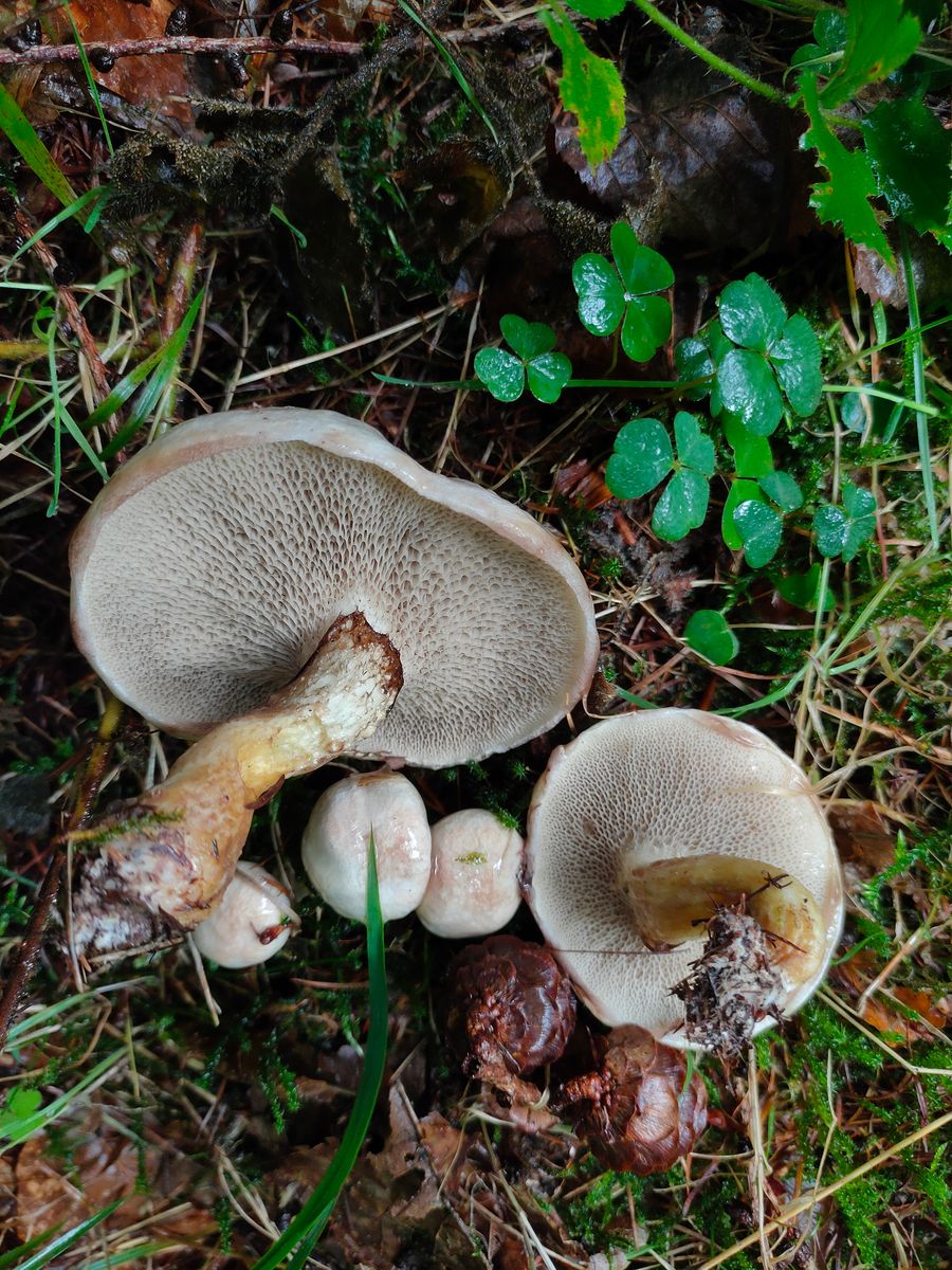 2. Entoloma mougeotii: Ich halte diese Gruppe für Schiefergrauer Zährtling. Die Hutfarbe und die konkav blasscreamfarbenen Lamellen finde ich sehr markant.