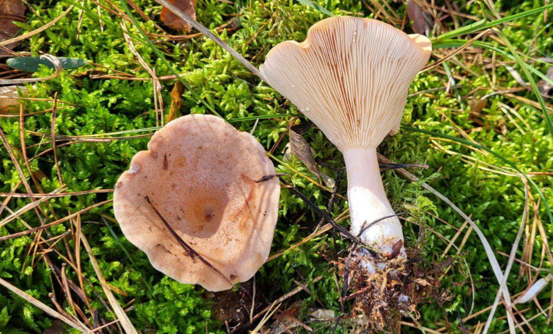 Die Optik hatte mich zuerst an Edelreizker erinnert. Doch die unbekannten Milchlinge haben keine orangefarbene Milch und auch keinerlei Grübchen am Stiel.