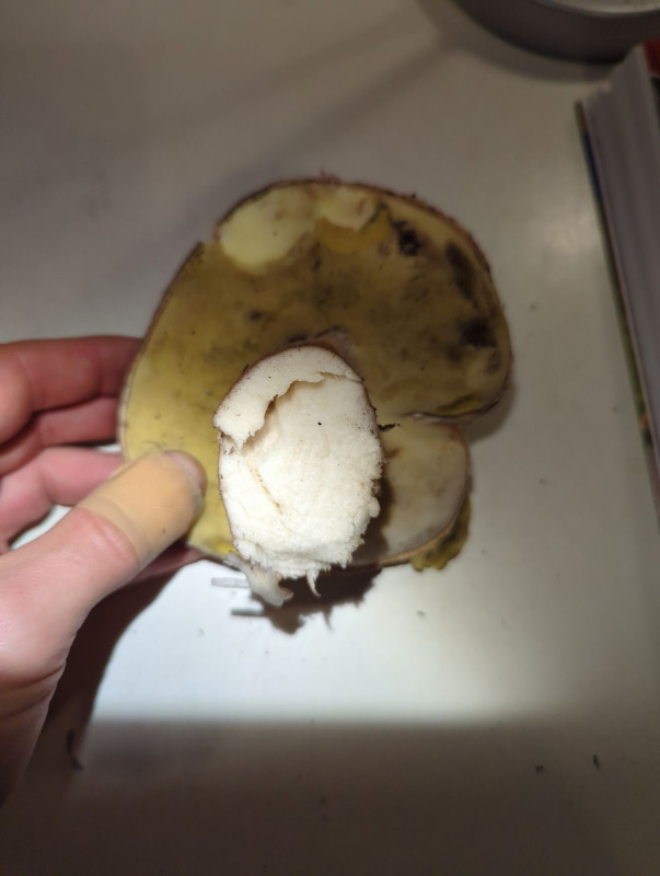 1. Ein Schnittbild fehlt. Einfach den Steinpilzkandidaten (oder andere Röhrlinge) von oben bis unten halbieren, und ein Foto von der Innenseiten davon auch hochladen.