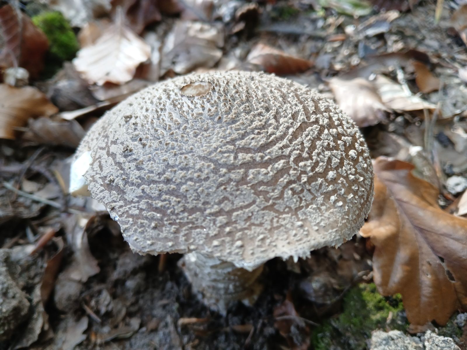 Diese Amanita hat meine Neugier geweckt, weil ich mir von oben betrachtet nicht sicher war, ob es der Perlpilz oder grauer Wulstling ist.