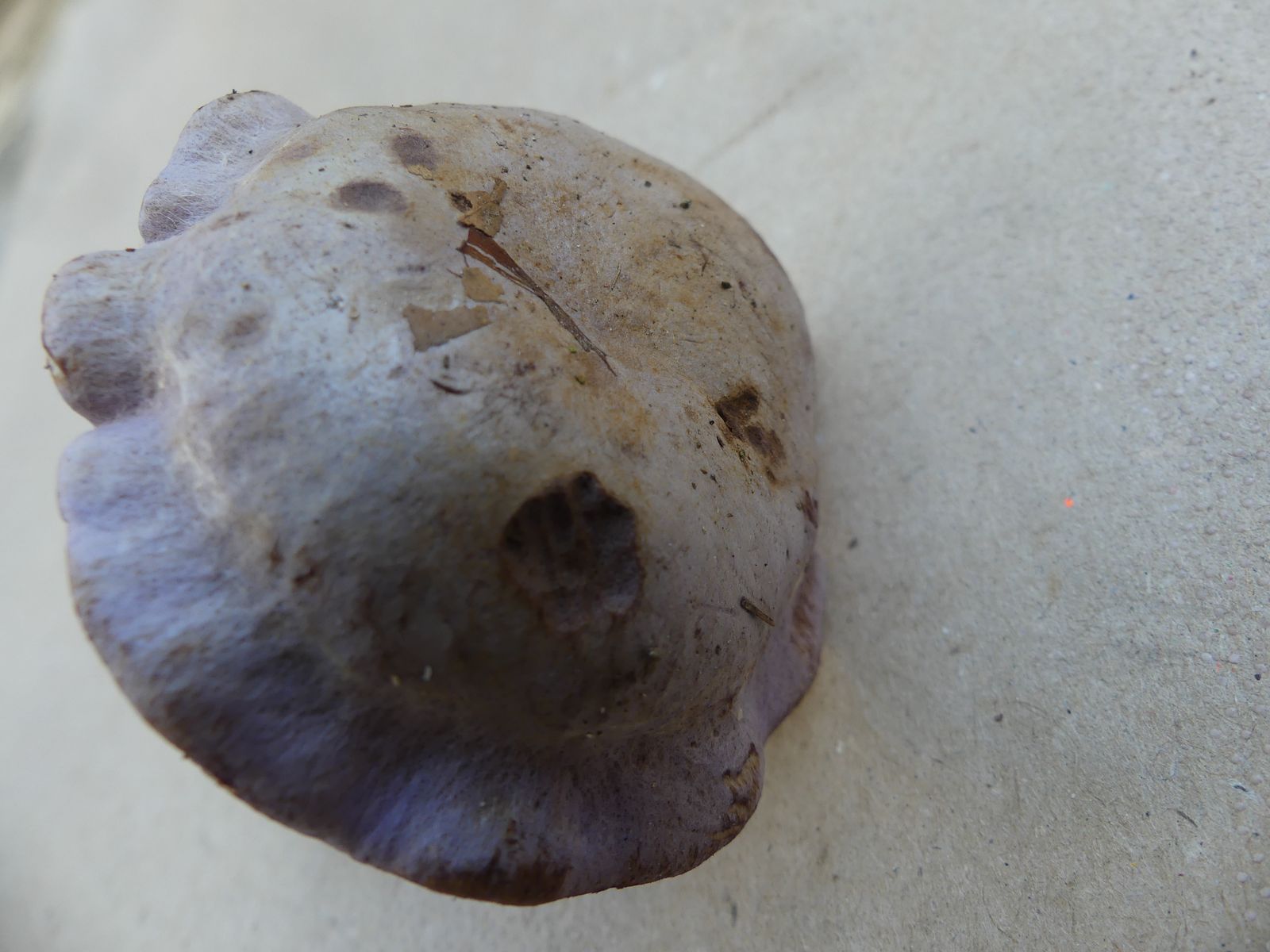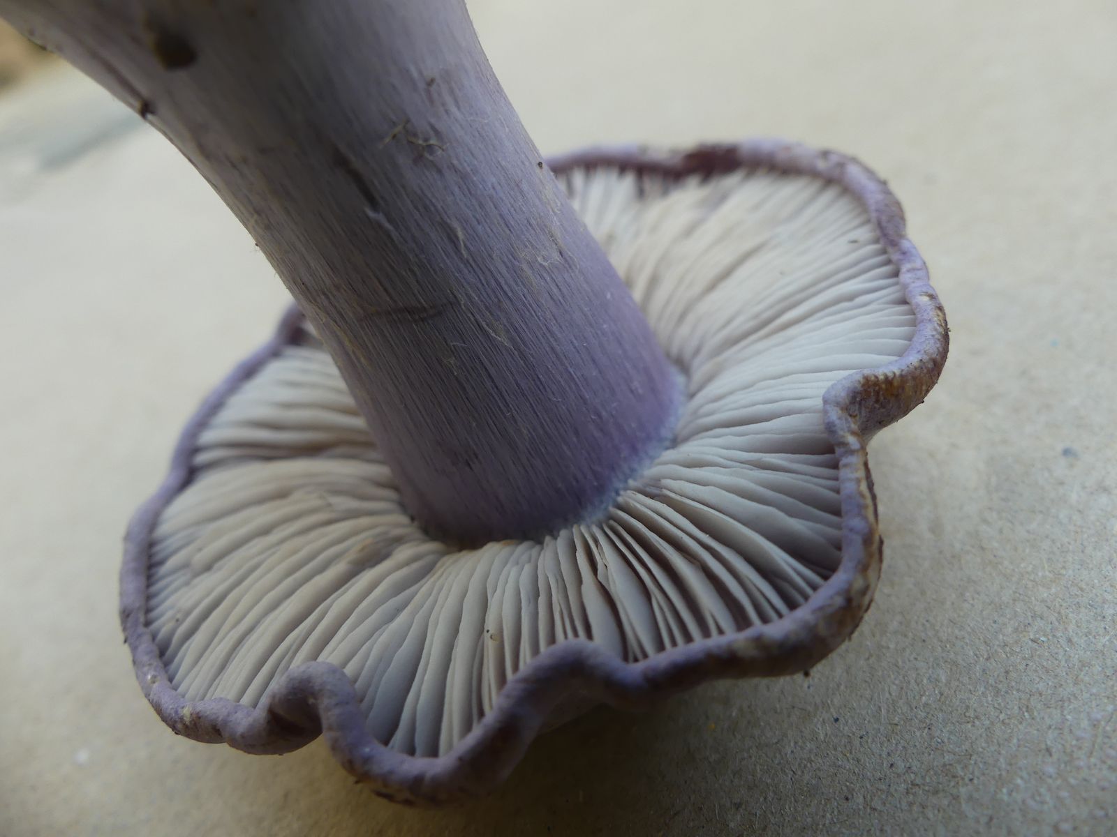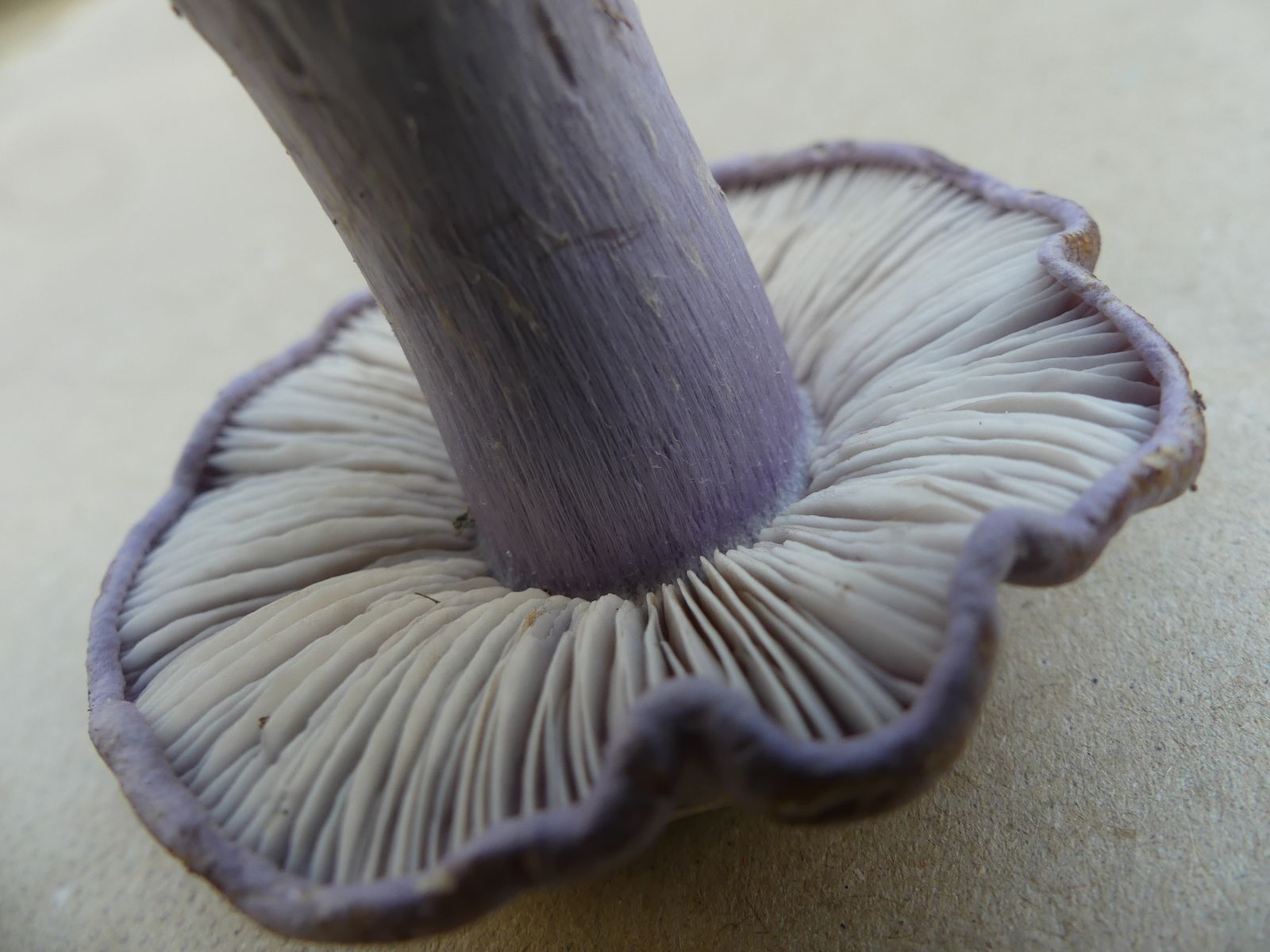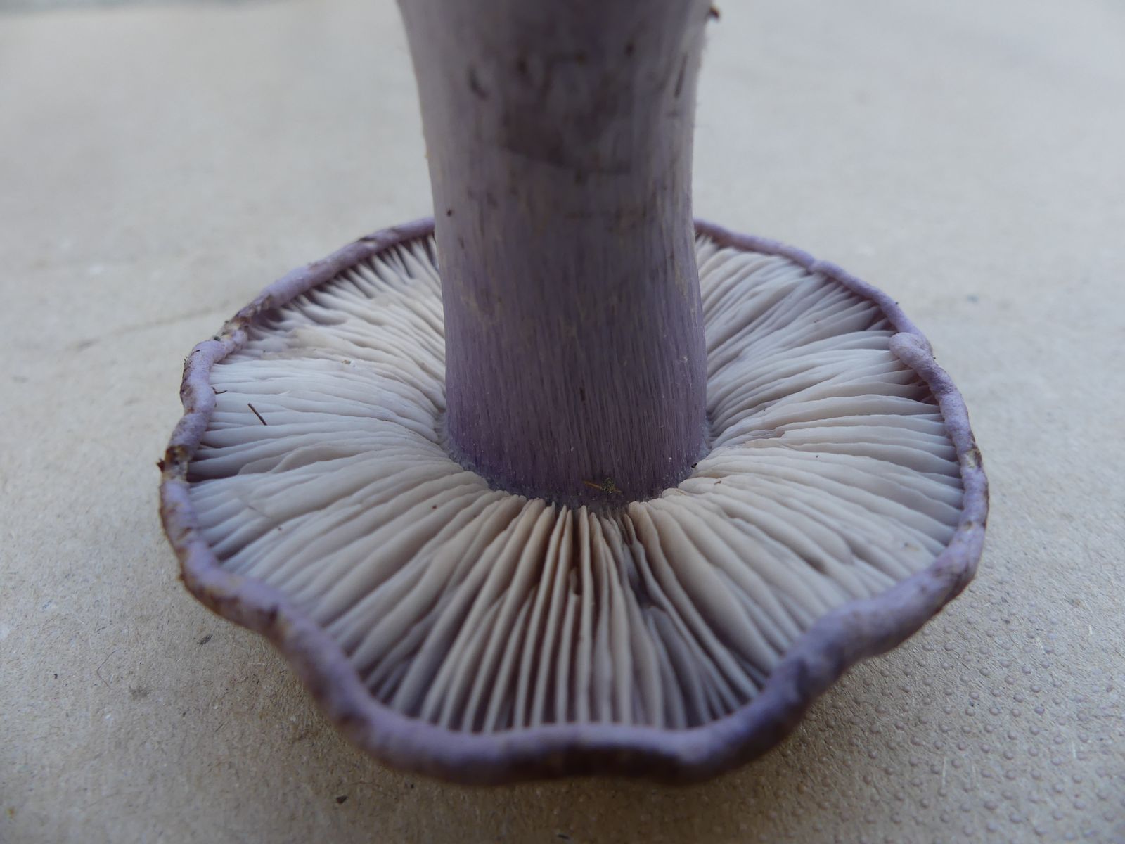 So heute, als ich diesen violettblauen Hut entdeckte. Ich dachte zunächst an einen violetten Rötelritterling oder eine Cortinarie, machte dann aber doch eine Kniebeuge.