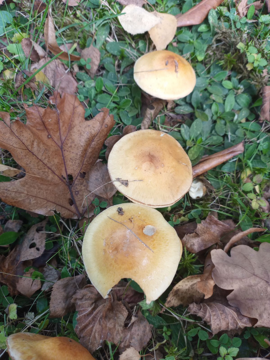 heute fand ich im Park diese Pilze. Von der Bestimmung von Schleierlingen halte ich mich häufig immer noch fern, weil ich da mit meinen Kenntnissen und Möglichkeiten i.d.R. schnell an meine Grenzen gerate. Heute fand ich aber unter einem Rhododendron in Reichweite von Birken diese Fruchtkörper die ich besonders jung markant fand. Bei meinen Bestimmungsversuch bin ich bei Gelbgestiefelter Schleimkopf (C. triumphans) gelandet. Die Hüte waren allerdings nicht schleimig, sondern trocken. Es hat länger nicht geregnet und es war bereits Nachmittag und sonnig. Der Geruch war Agaricus bisporus sehr ähnlich, also dem, was wohl mit "pilzig" gemeint ist. Kann das anhand der Bilder hinkommen? Käme weiteres in Frage. Wenn nötig, kann ich für weitere Infos nochmal hin.