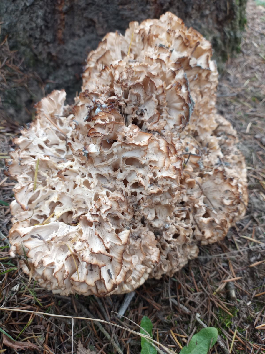 Außerdem fand ich eine Krause Glucke (ziemlich hinüber) überraschend unter einer Douglasie. Gibt's also wirklich.