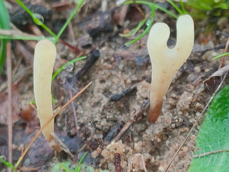 Man könnte auch formulieren, dass dieser Stiel sehr prägnant hornartig ist. Eigentlich haben mich die Hutfarbenkombination angesprochen und das Habitat war sehr ungewöhnlich. Eine immer recht feuchte bewachsene Mulde an/auf Pflanzenresten. Sehr nah am Wasser stehend. Nun gut, in diesem Fall wäre wohl eine mikroskopische Analyse und Sequenzierung ratsam.