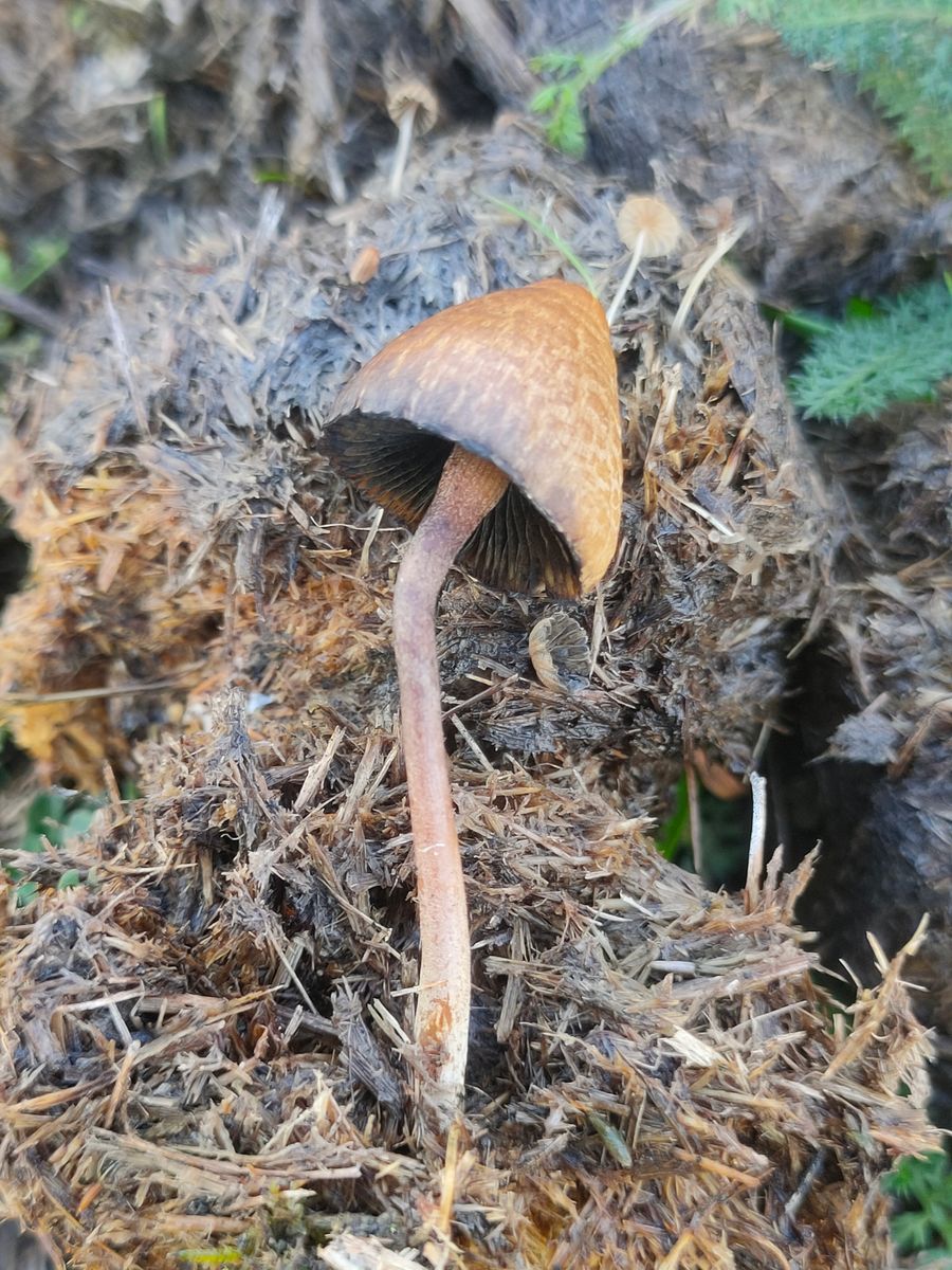 Man könnte auch formulieren, dass dieser Stiel sehr prägnant hornartig ist. Eigentlich haben mich die Hutfarbenkombination angesprochen und das Habitat war sehr ungewöhnlich. Eine immer recht feuchte bewachsene Mulde an/auf Pflanzenresten. Sehr nah am Wasser stehend. Nun gut, in diesem Fall wäre wohl eine mikroskopische Analyse und Sequenzierung ratsam.