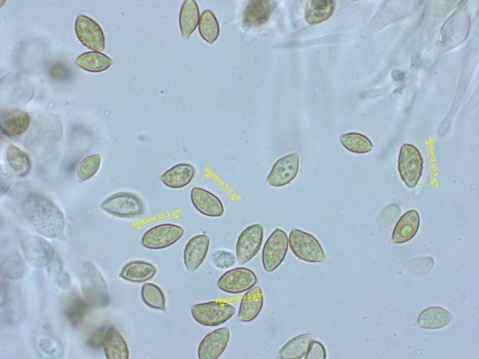 Sporen heterodiametrisch, etwas wellig im Umriss.