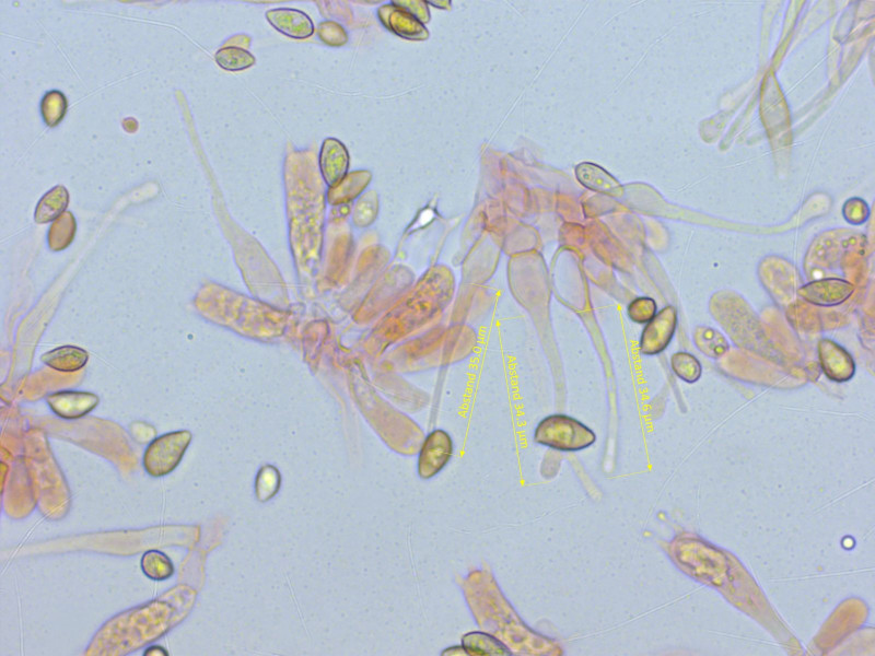 Die Zystiden haben verglichen mit anderen Arten der Gattung einen enorm langen Hals, daher der Name der Art.