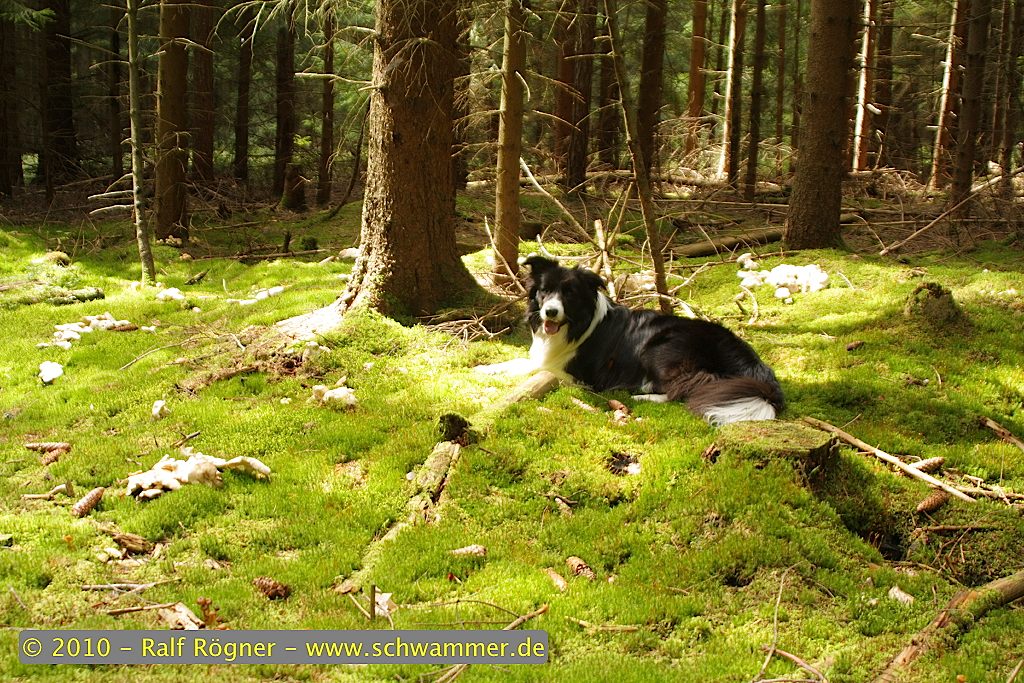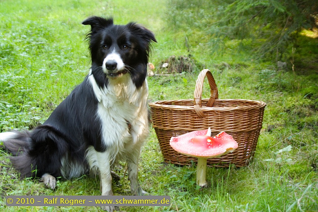 Besonders verwunderlich ist in diesem Jahr die zunehmende Ausbreitung des Schafporlings, den ich zahlreich finde. Meine kleine Hütehündin Molly dachte sie da wohl: naja, wenn ich schon keine Schafe hüten darf, dann hüte ich eben Schafporlinge –“ sind auch weiß und haben zumindest das Wort –œSchaf– im Namen–¦