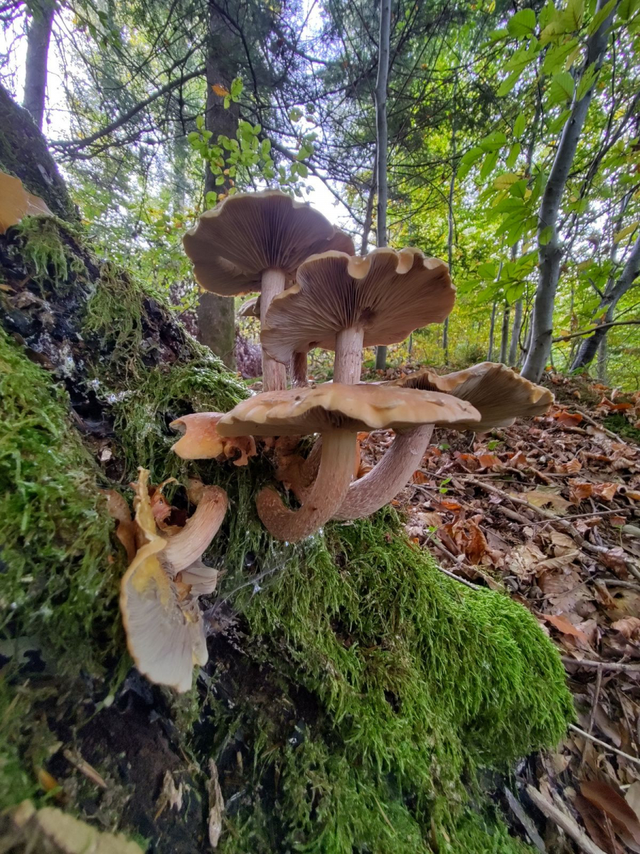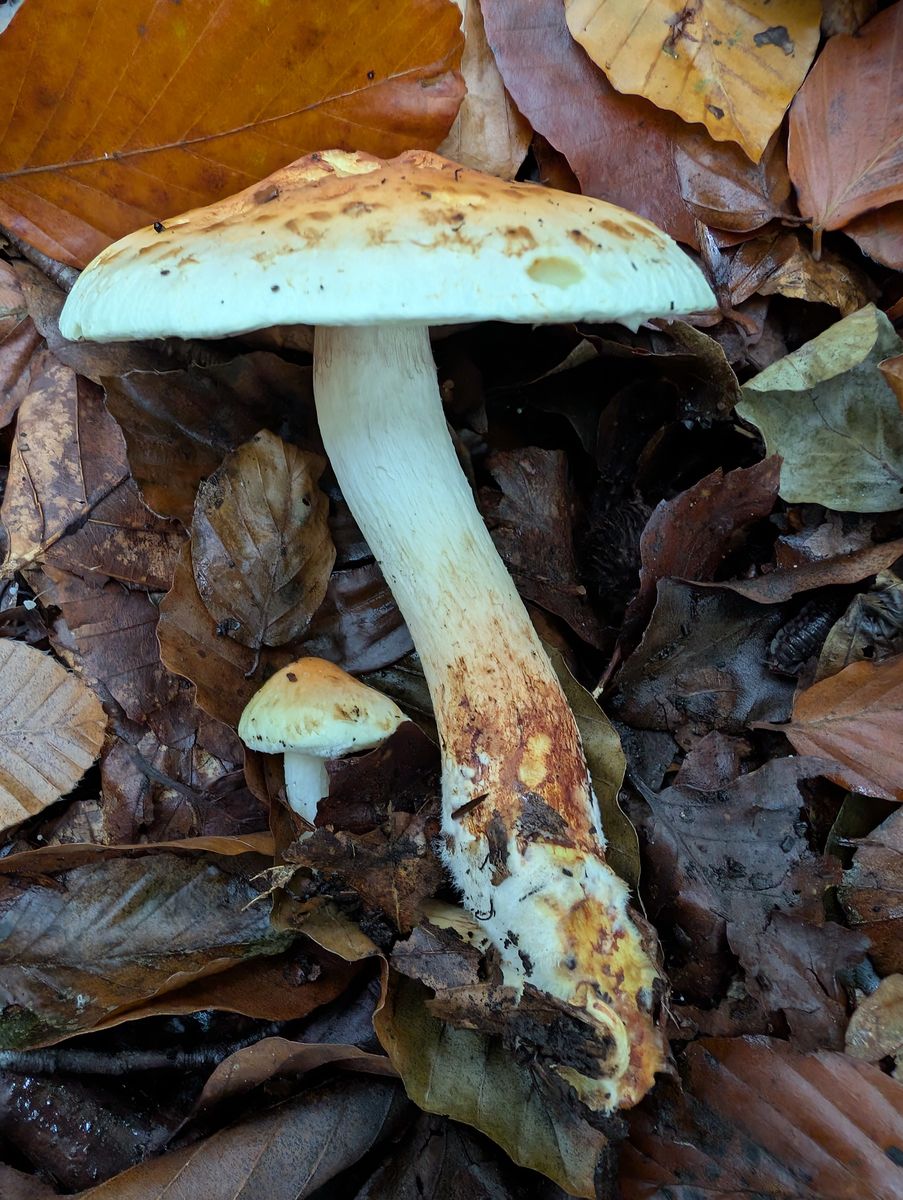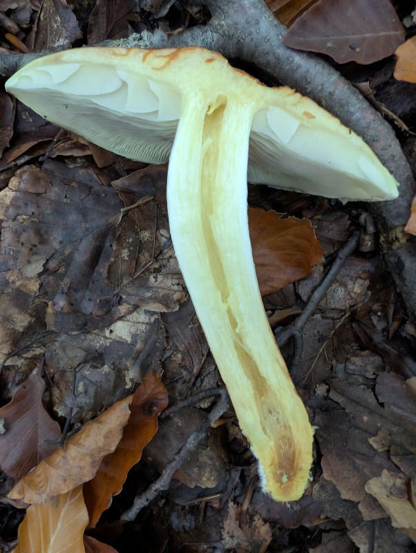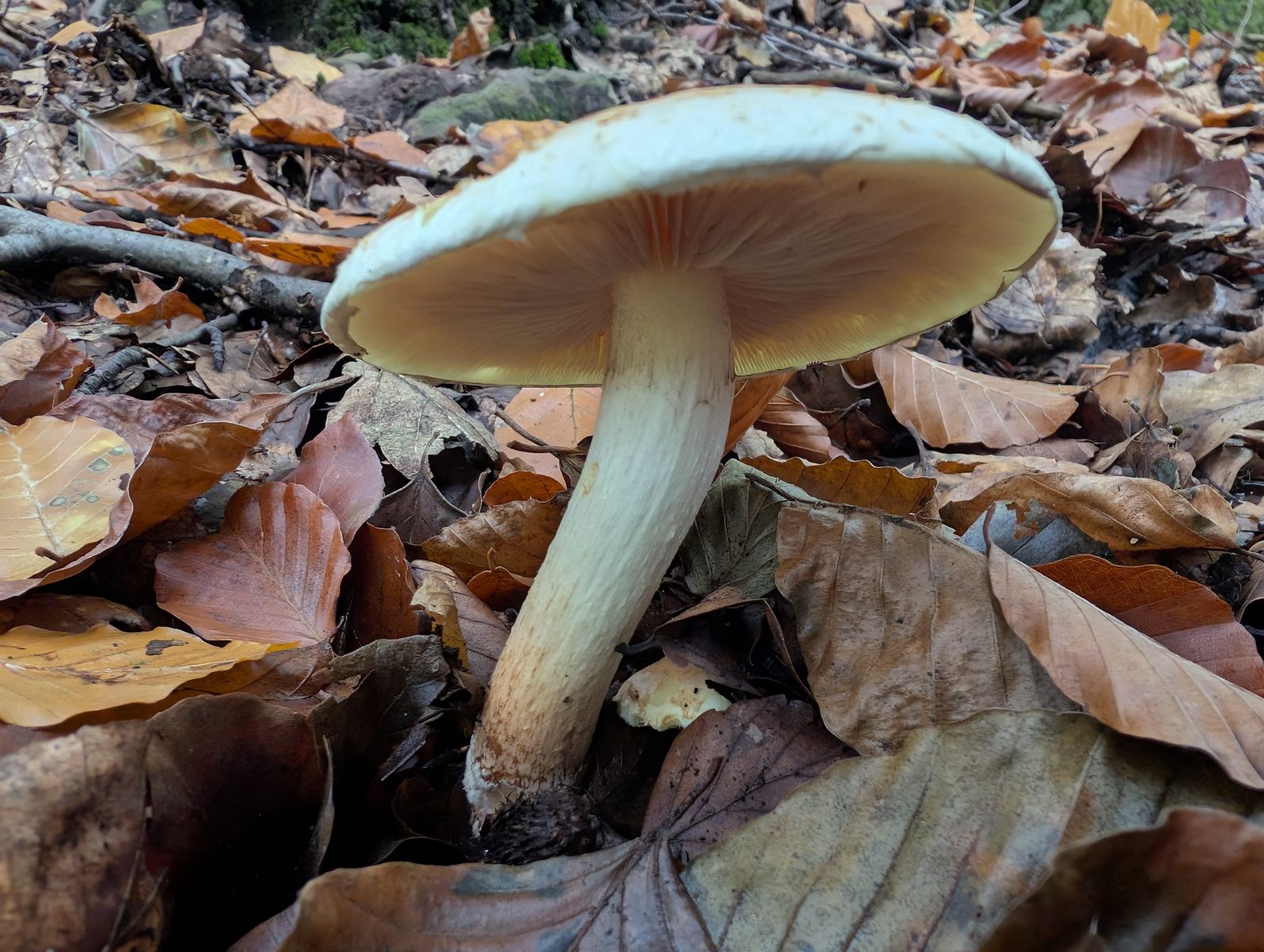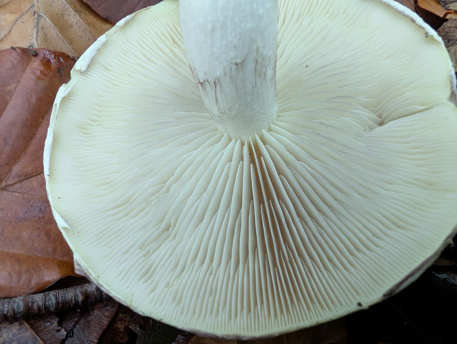 diesen Pilz habe ich neulich gefunden und fotografiert, aber nicht mitgenommen und daher auch keinen Sporenabdruck. Die Bilder sind etwas zu bläulich, der automatische Weißabgleich war wohl nicht so exakt.