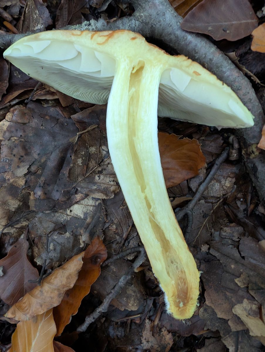Da rächt es sich, dass ich den Pilz nicht mitnahm, um ihn aussporen zu lassen, mit Reagenzien zu behandeln oder mit dem Mikroskop zu schauen. ;) In Zukunft muss ich das anders handhaben.